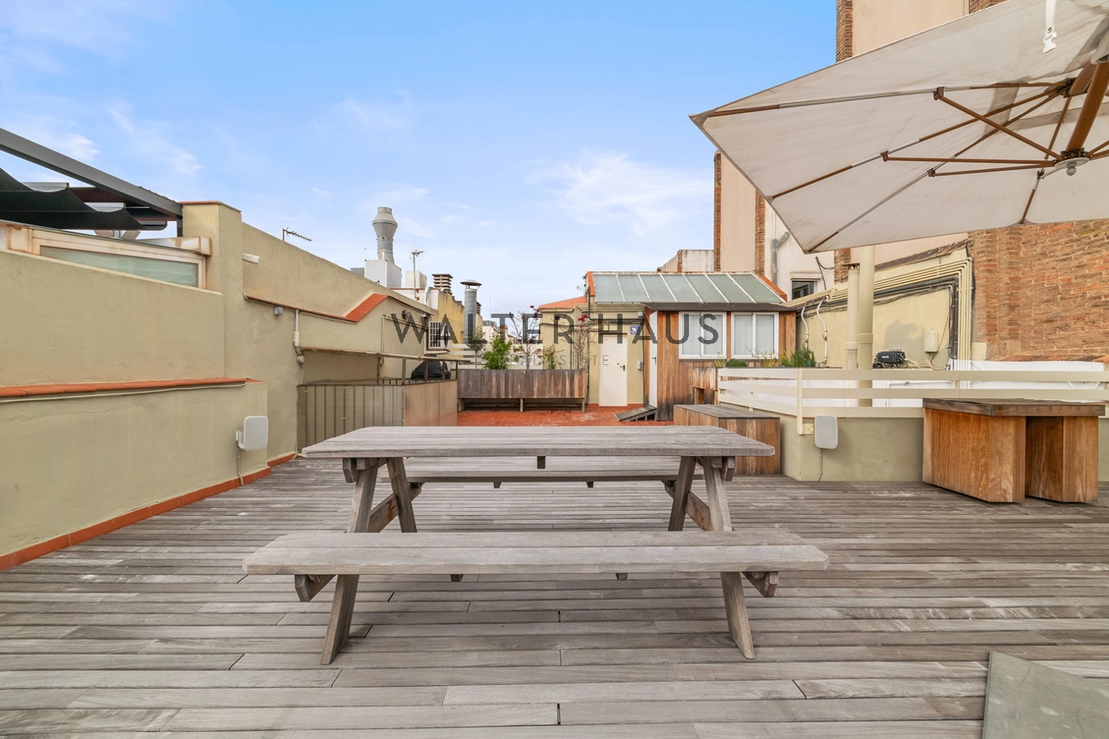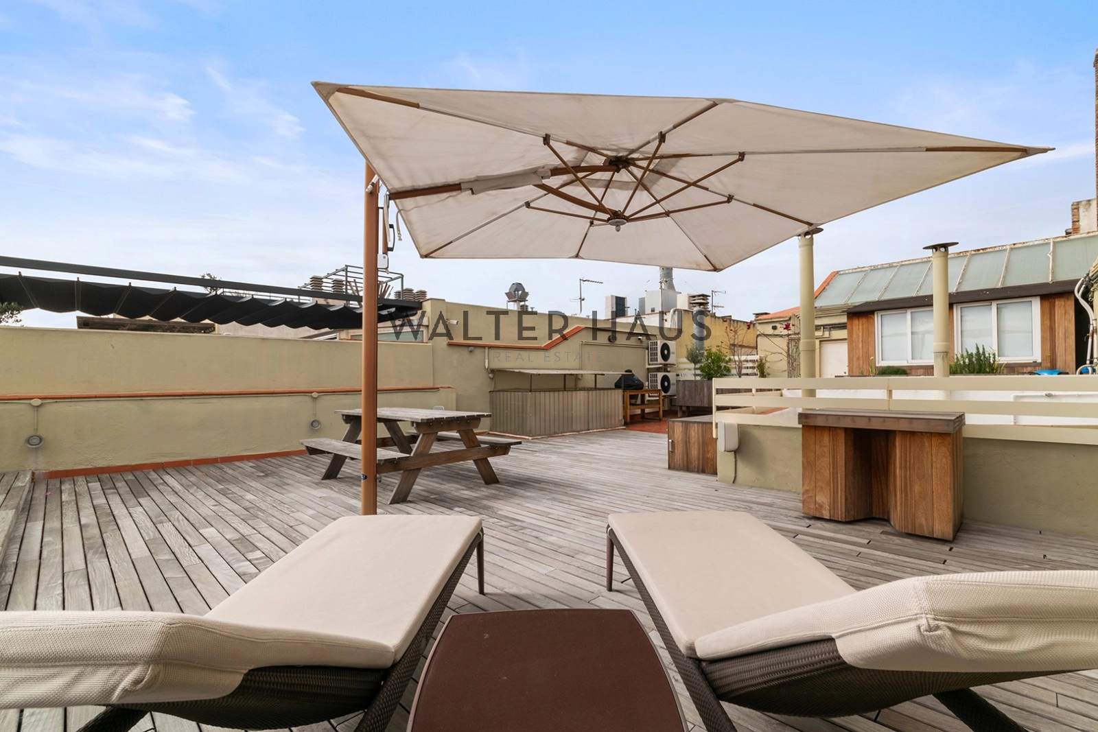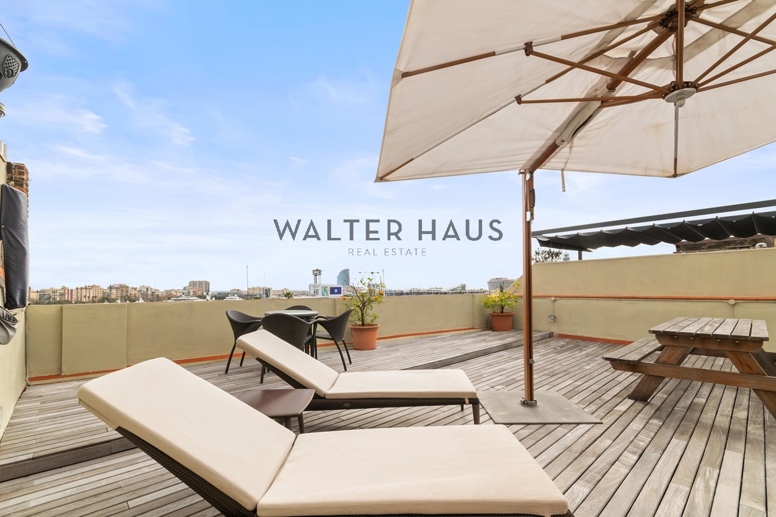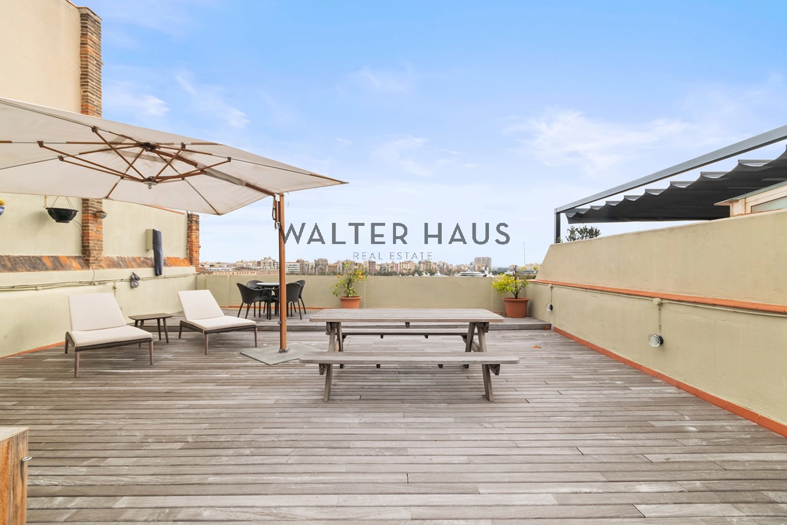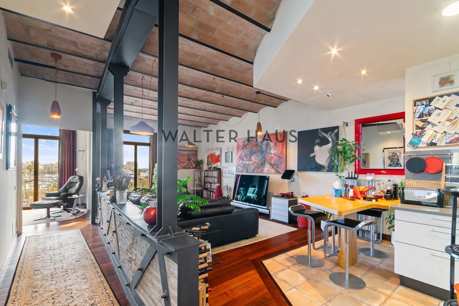 Àtic en venda de 170 m² construïts amb una terrassa privada espectacular de 170 m², accessible des de l’escala comunitària. Aquest ampli espai exterior es converteix en un veritable oasi urbà, ideal per relaxar-se o gaudir de moments inoblidables amb vistes panoràmiques al Port de Barcelona. L’habitatge, recentment renovat, ha estat dissenyat per potenciar la lluminositat, eliminant barreres innecessàries i aprofitant al màxim la seva orientació sud, que garanteix una entrada constant de llum natural.