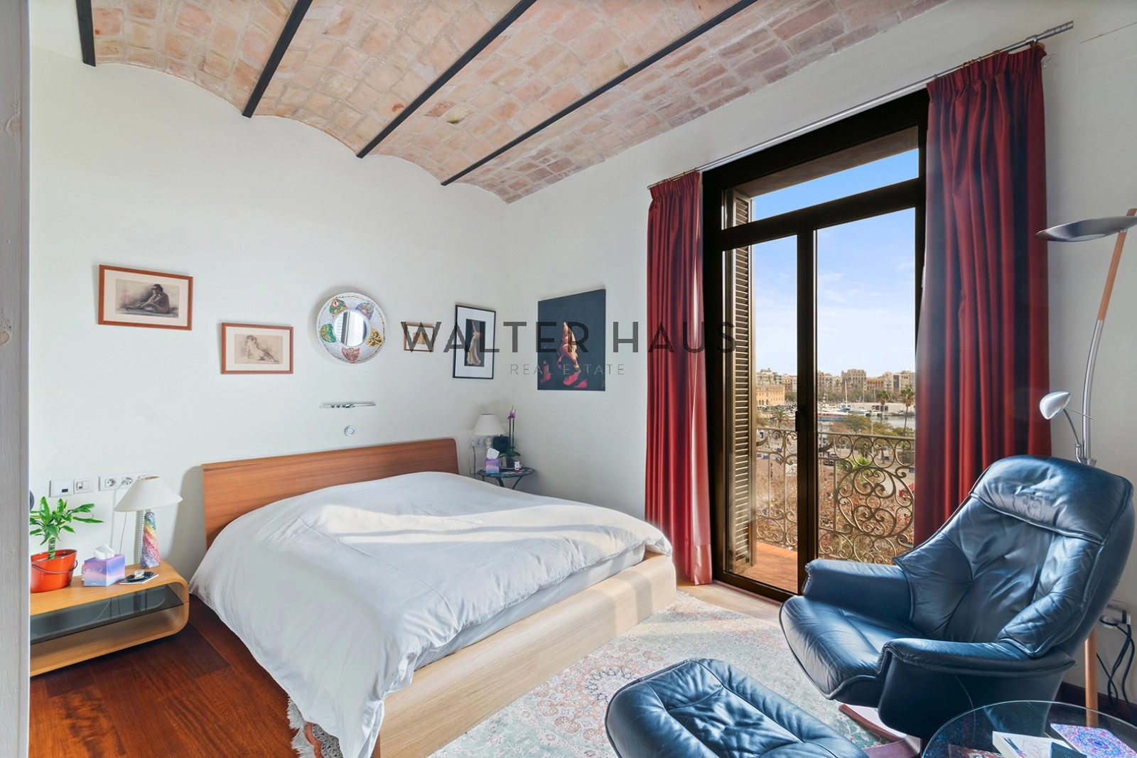 L´interior combina elegància i confort amb materials de primera qualitat i acabats impecables. Disposa de dos dormitoris dobles amplis, destacant la suite principal amb vestidor, bany privat i vistes directes al port. Aquesta estada es pot independitzar gràcies a portes corredisses integrades, oferint un extra de privadesa. El segon dormitori se situa estratègicament al costat del bany principal. La cuina està completament moblada i equipada amb electrodomèstics de darrera gamma, a més trobem un safareig molt ampli i funcional. A més, l´àtic està equipat amb finestres Climalit d´última generació, aire condicionat centralitzat i un avançat sistema de seguretat domotitzat amb càmeres. Tot això, a la cinquena planta real d’un edifici en excel·lents condicions amb ascensor.