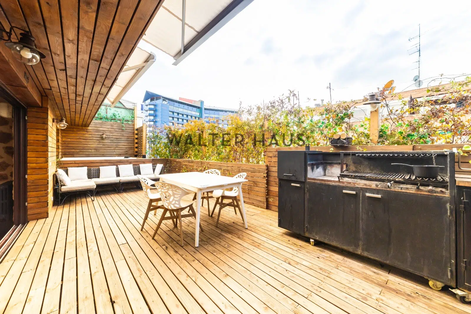 Walter Haus presenta aquest exclusiu àtic reformat amb terrassa i piscina, una propietat que destaca pel disseny contemporani i detalls d’alta qualitat. Amb una superfície de 161 m², aquest habitatge ofereix espais amplis i funcionals que conviden al confort i al gaudi. La seva distribució, acuradament dissenyada, combina estètica i practicitat a cada racó.
