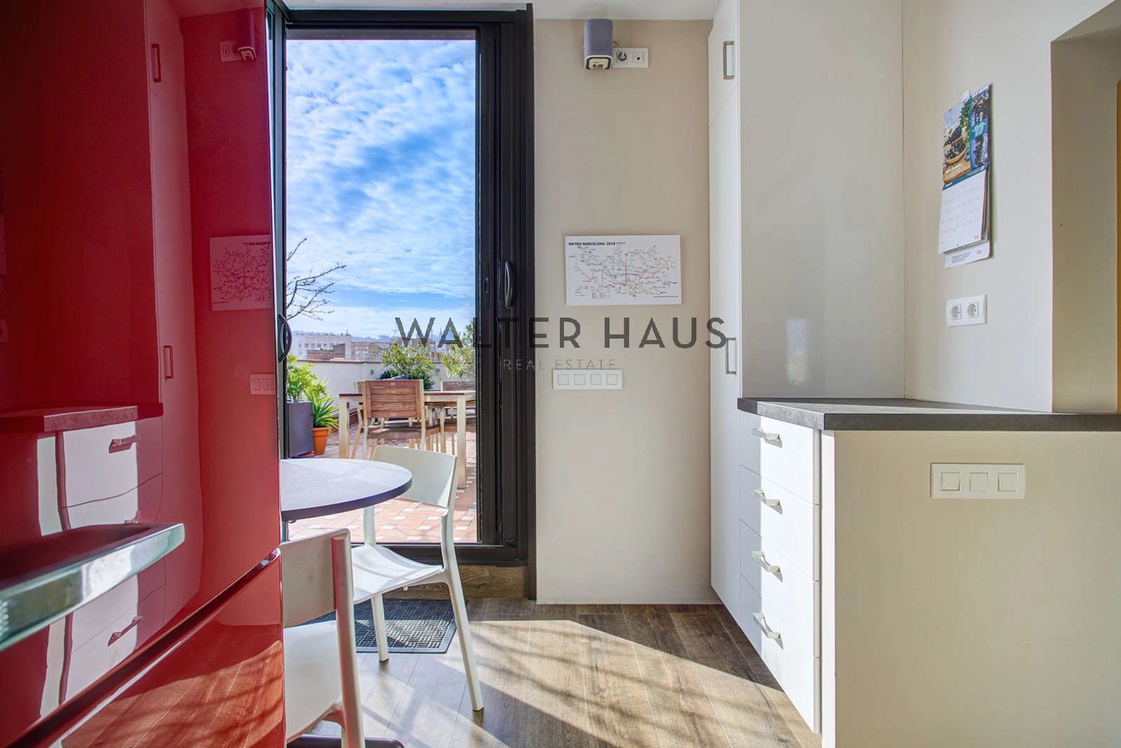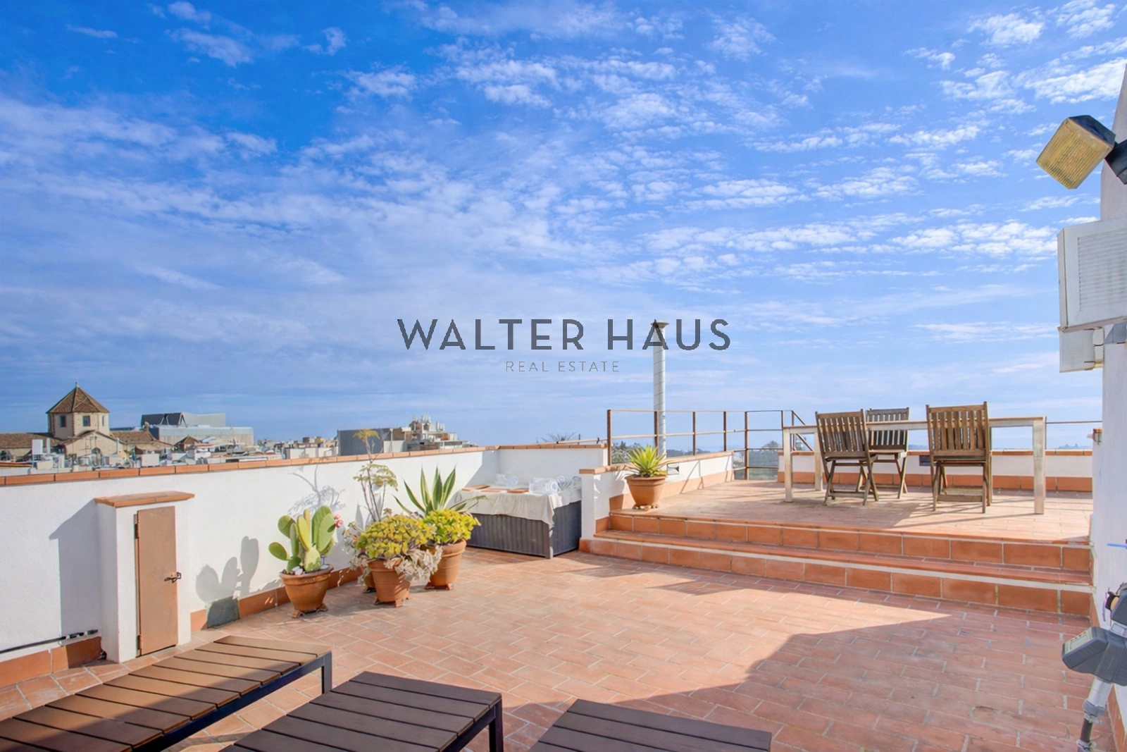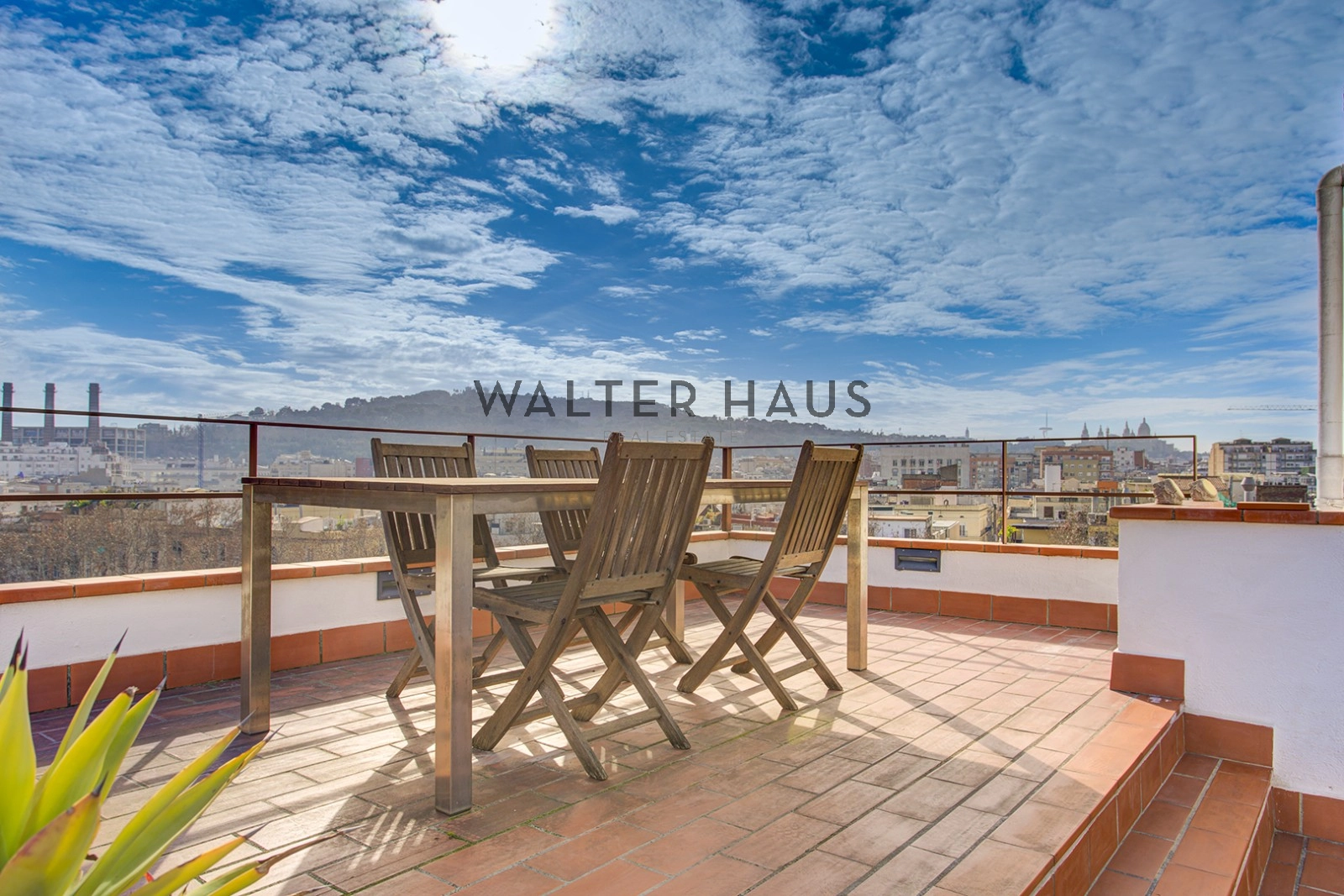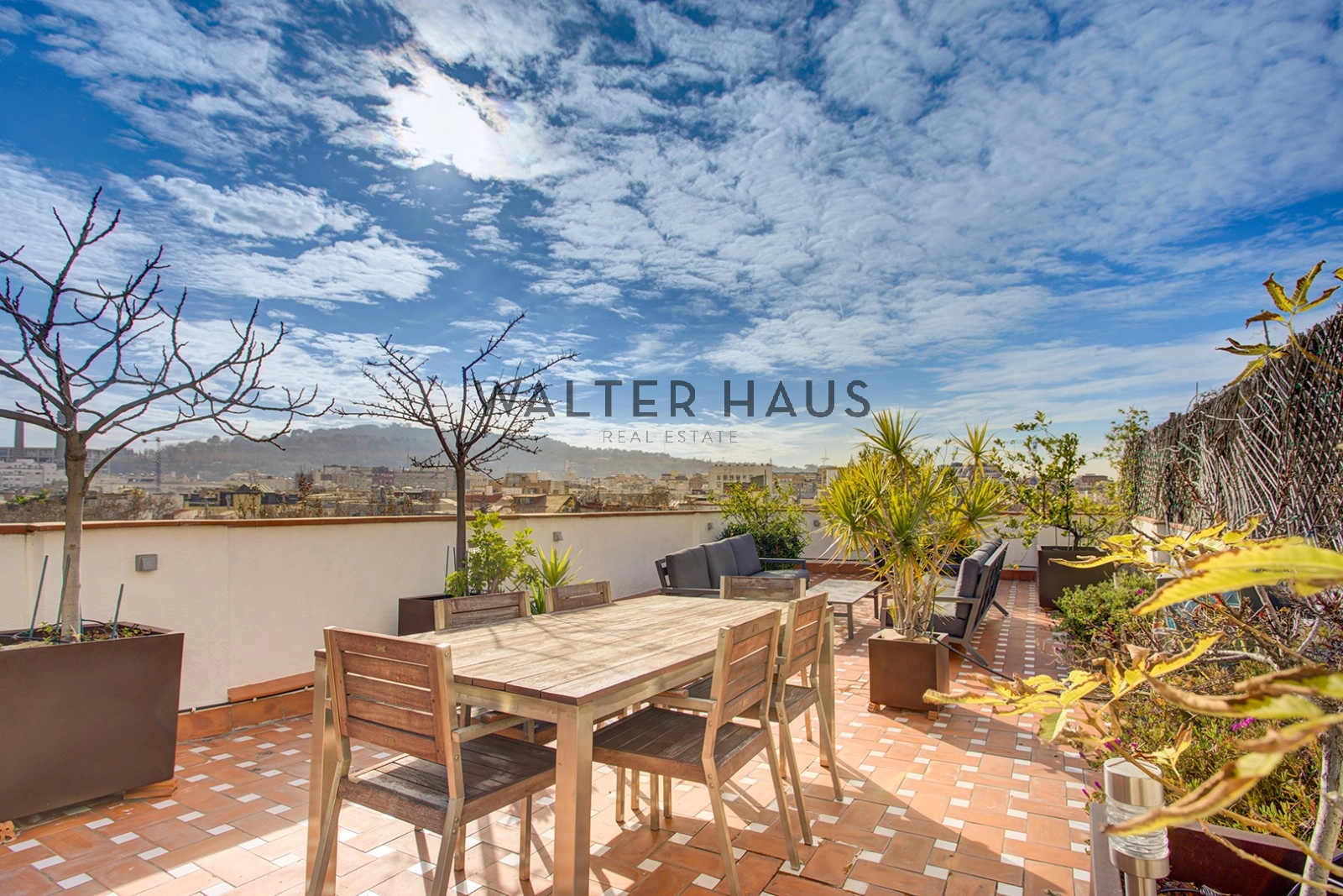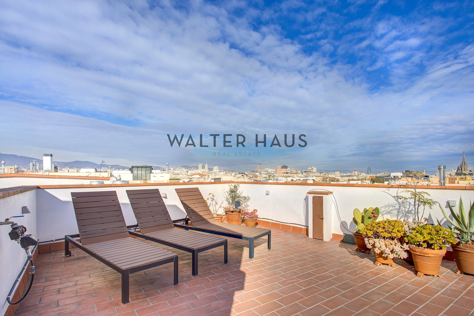 Amb 156 m² de terrassa i 56 m² construïts d´habitatge, aquesta propietat destaca per oferir un estil de vida en gaudir del sol tot l´any. Ofereix dues terrasses d´ús exclusiu amb una a peu de saló de 100 m² i un solàrium a la coberta de 56 m² creant un conjunt únic al centre de Barcelona. Situat a la darrera planta d´una finca històrica ben conservada amb ascensor, aquest àtic ha estat completament reformat i combina vida interior i exterior de forma equilibrada, amb amplis espais oberts i vistes clares que aporten lluminositat durant tot el dia.