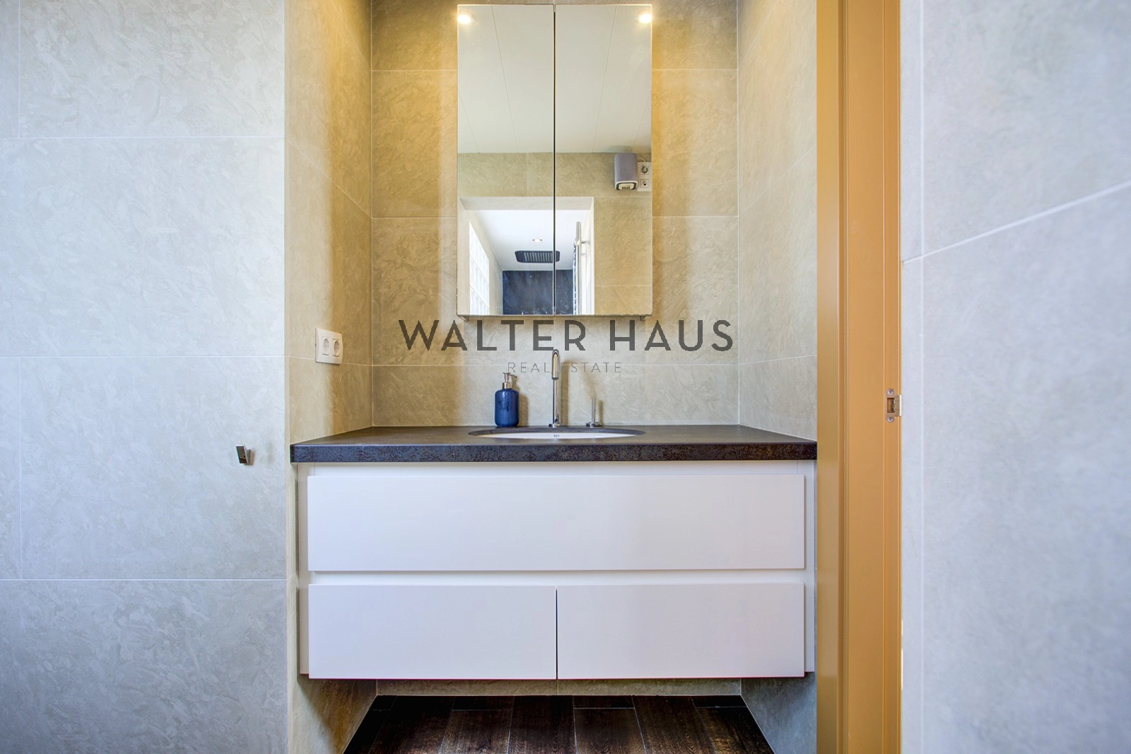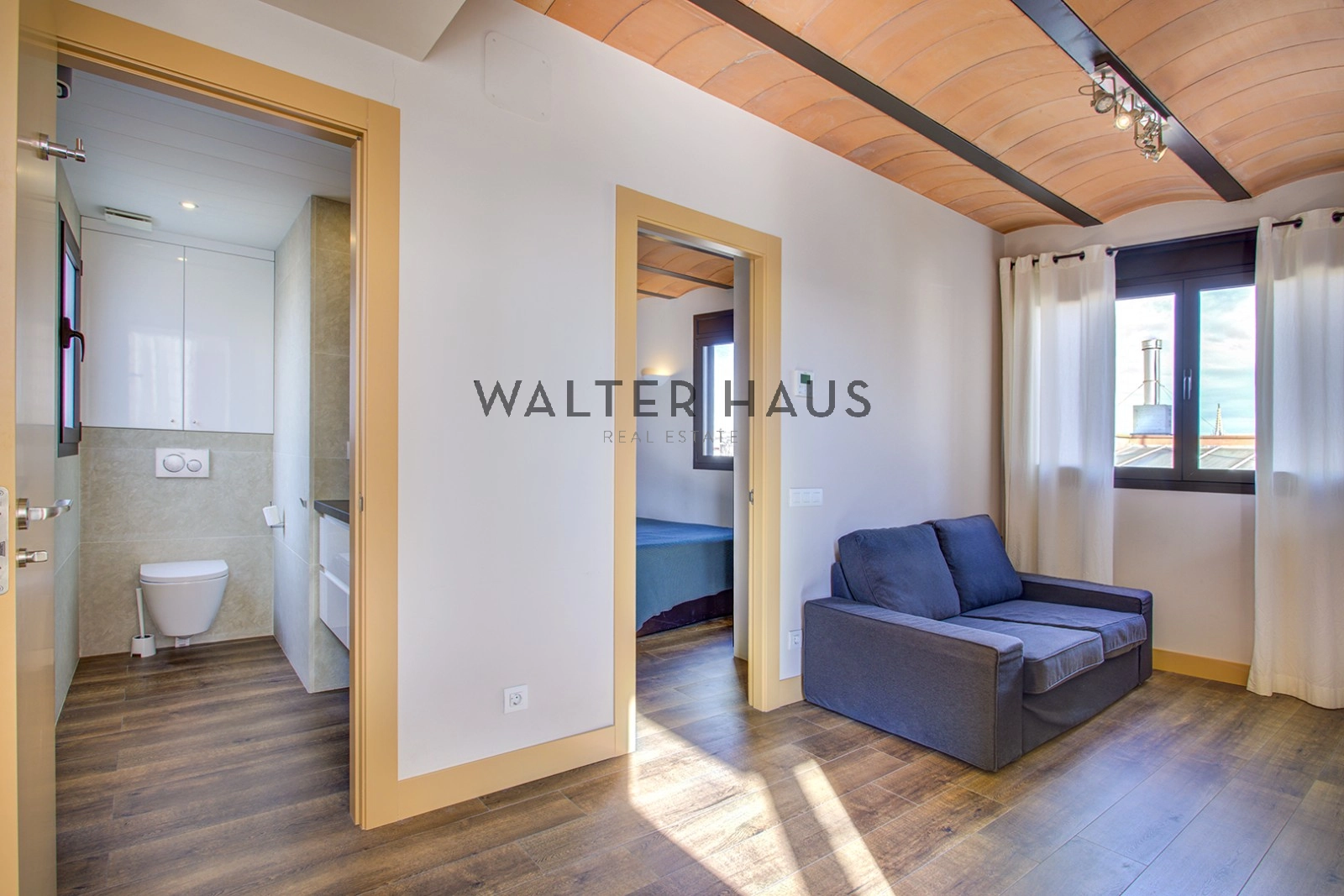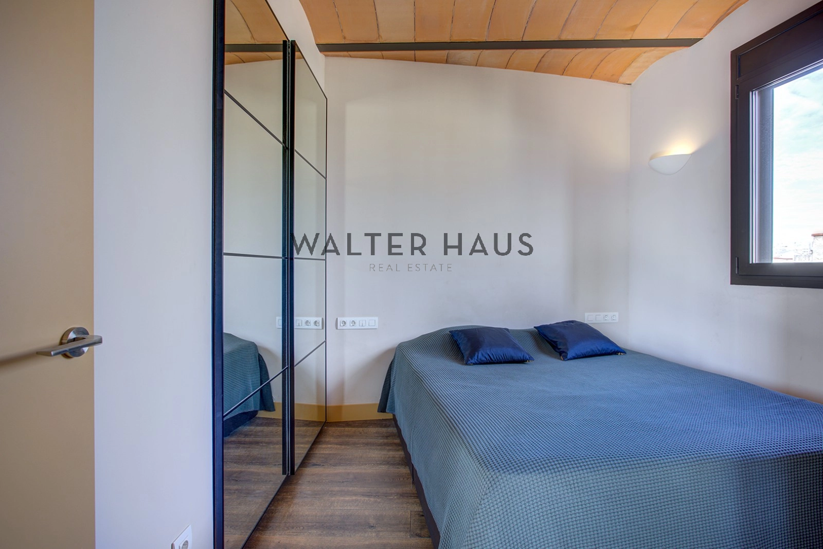 A l’interior, l’habitatge presenta una distribució funcional i ben aprofitada. Disposa d´una habitació doble exterior amb armari encastat, un bany complet de generoses dimensions i un saló amb cuina integrada, dissenyat per maximitzar l´entrada de llum natural i la connexió visual amb la terrassa principal. La cuina s´entrega totalment equipada i oberta al´espai d´estar, amb accés directe al´exterior, la qual cosa amplia notablement la sensació d´amplitud. La terrassa principal compta a més amb un safareig independent d’aproximadament 6 m², ideal com a zona d’emmagatzematge. La reforma s’ha realitzat amb materials d’alta qualitat i incorpora sistema de so interior i exterior, així com millores a l’aïllament tèrmic de la coberta de l’edifici.