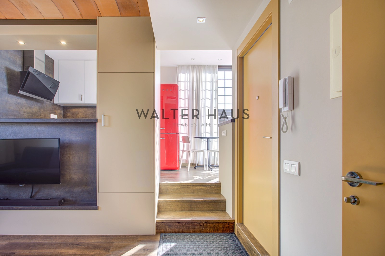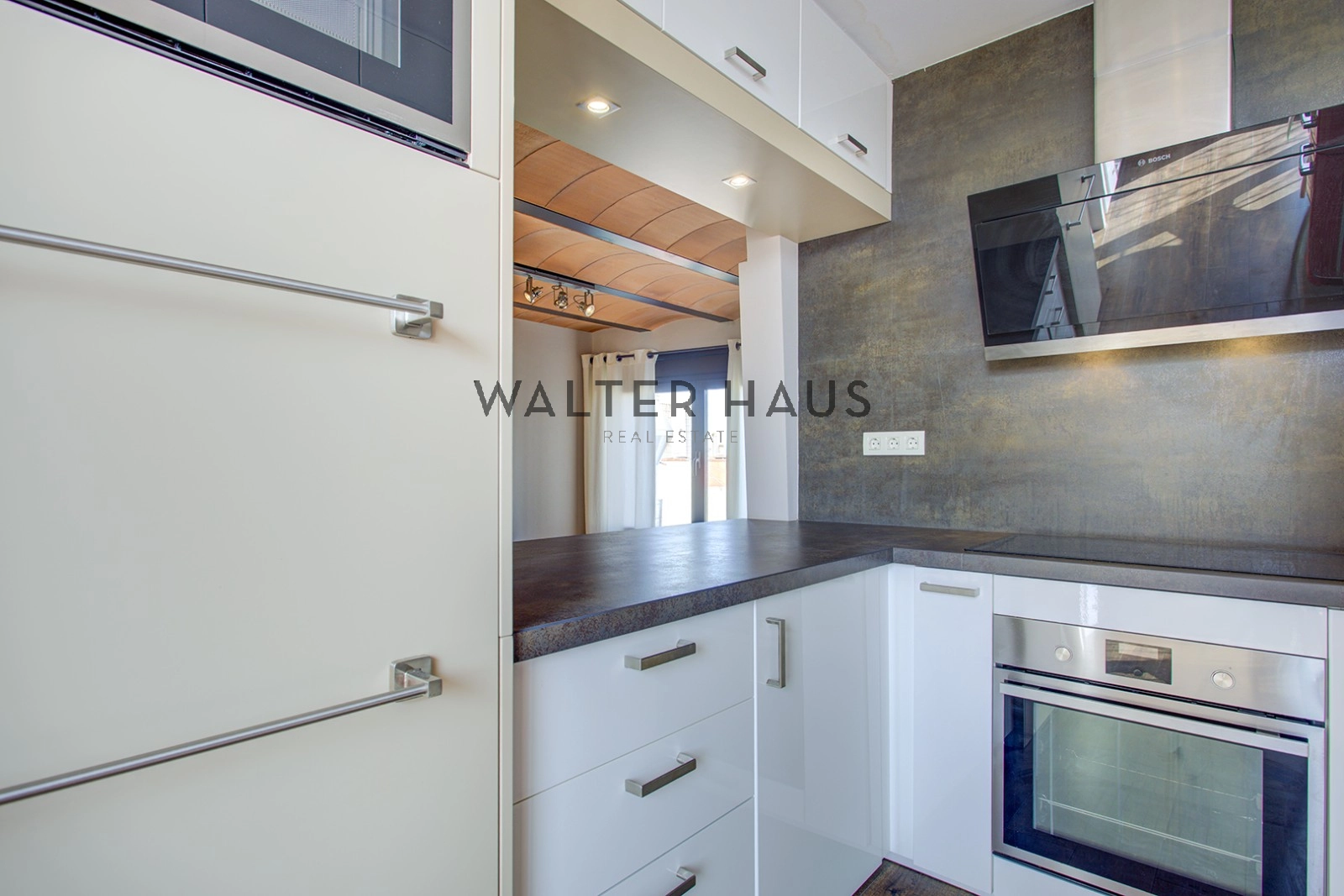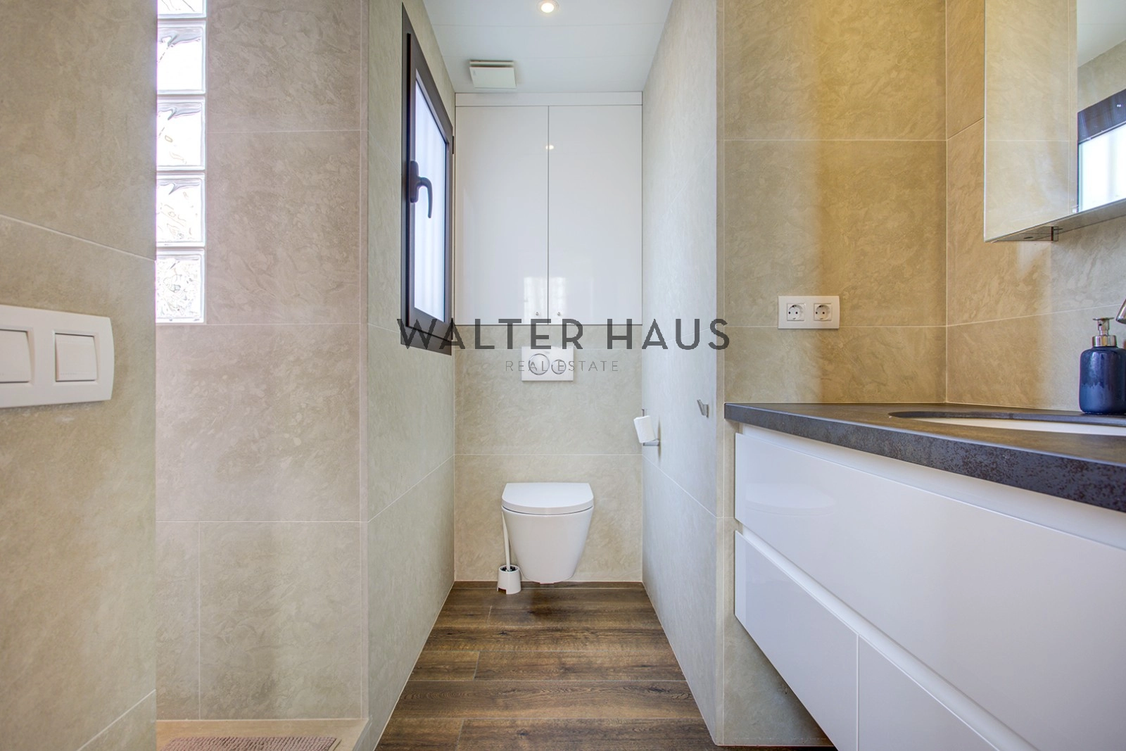 A l’interior, l’habitatge presenta una distribució funcional i ben aprofitada. Disposa d´una habitació doble exterior amb armari encastat, un bany complet de generoses dimensions i un saló amb cuina integrada, dissenyat per maximitzar l´entrada de llum natural i la connexió visual amb la terrassa principal. La cuina s´entrega totalment equipada i oberta al´espai d´estar, amb accés directe al´exterior, la qual cosa amplia notablement la sensació d´amplitud. La terrassa principal compta a més amb un safareig independent d’aproximadament 6 m², ideal com a zona d’emmagatzematge. La reforma s’ha realitzat amb materials d’alta qualitat i incorpora sistema de so interior i exterior, així com millores a l’aïllament tèrmic de la coberta de l’edifici.