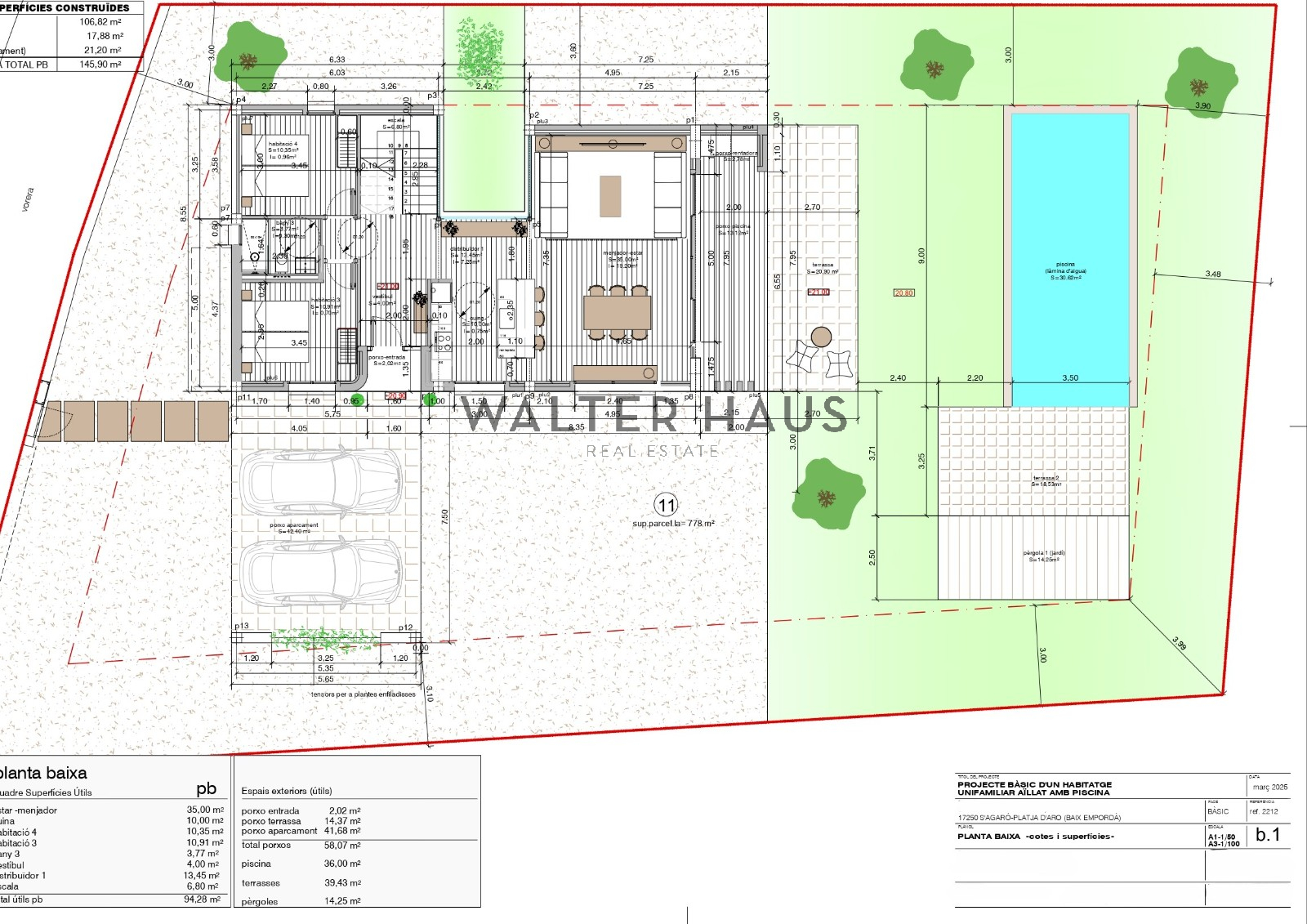 Aquest habitatge contempla un disseny funcional amb 4 àmplies habitacions i 2 banys complets, pensada per brindar comoditat i benestar. El projecte inclou piscina privada i estacionament amb capacitat per a dos vehicles. Es lliura clau en mà, i inclou la parcel·la, el desenvolupament del projecte arquitectònic i l’execució completa de la construcció.