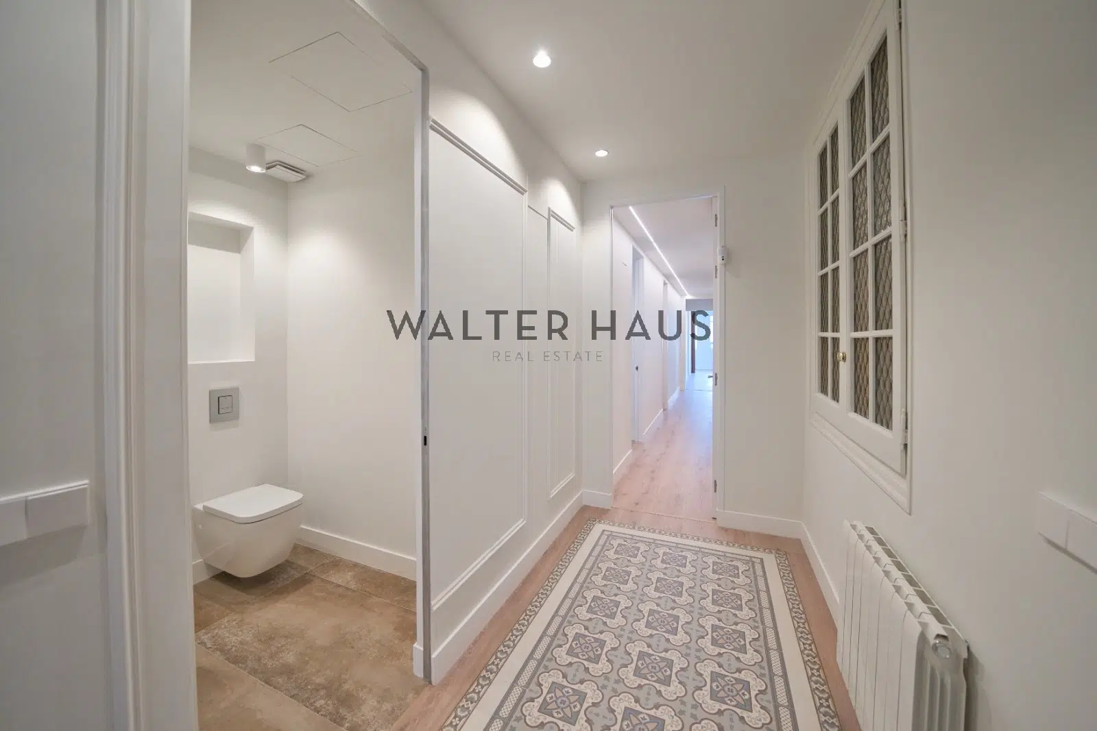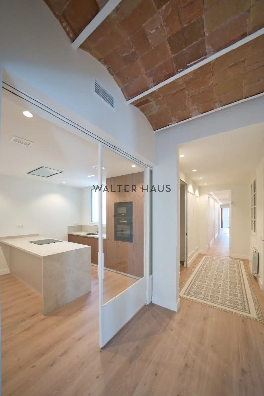 Exclusiu pis de 207 m² construïts, completament reformat situat en una finca règia del 1900 al cor del Quadrat d’Or de Barcelona. L’habitatge ha estat reinterpretat amb sensibilitat, respectant l’essència modernista i adaptant-lo a les necessitats actuals. Conserva sostres de volta catalana i vitralls originals, integrant història i disseny contemporani en una proposta equilibrada, lluminosa i funcional. Els terres hidràulics emmarcats i la tarima de fusta natural evoquen la tradició catalana amb una execució actual i cuidada.