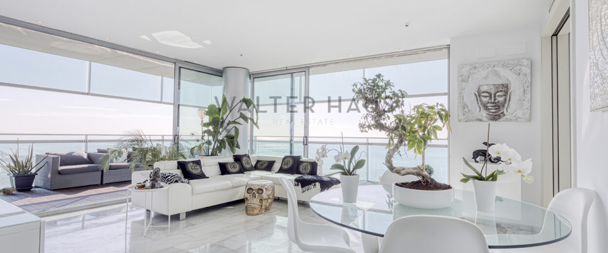 A l’anteúltima planta de l’edifici Illa del Mar trobem aquest magnífic pis cantoner amb unes vistes espectaculars, al mar i al litoral Barcelonès, ubicat a la 24a planta de l’Illa del mar, l’habitatge consta de 140m2 i 99m2 de terrassa, el preu inclou 1 plaça d’aparcament i traster.