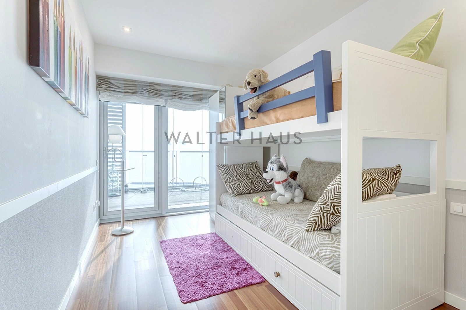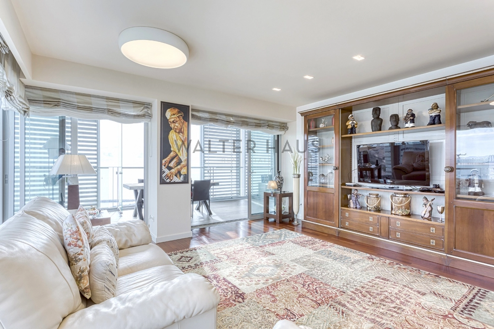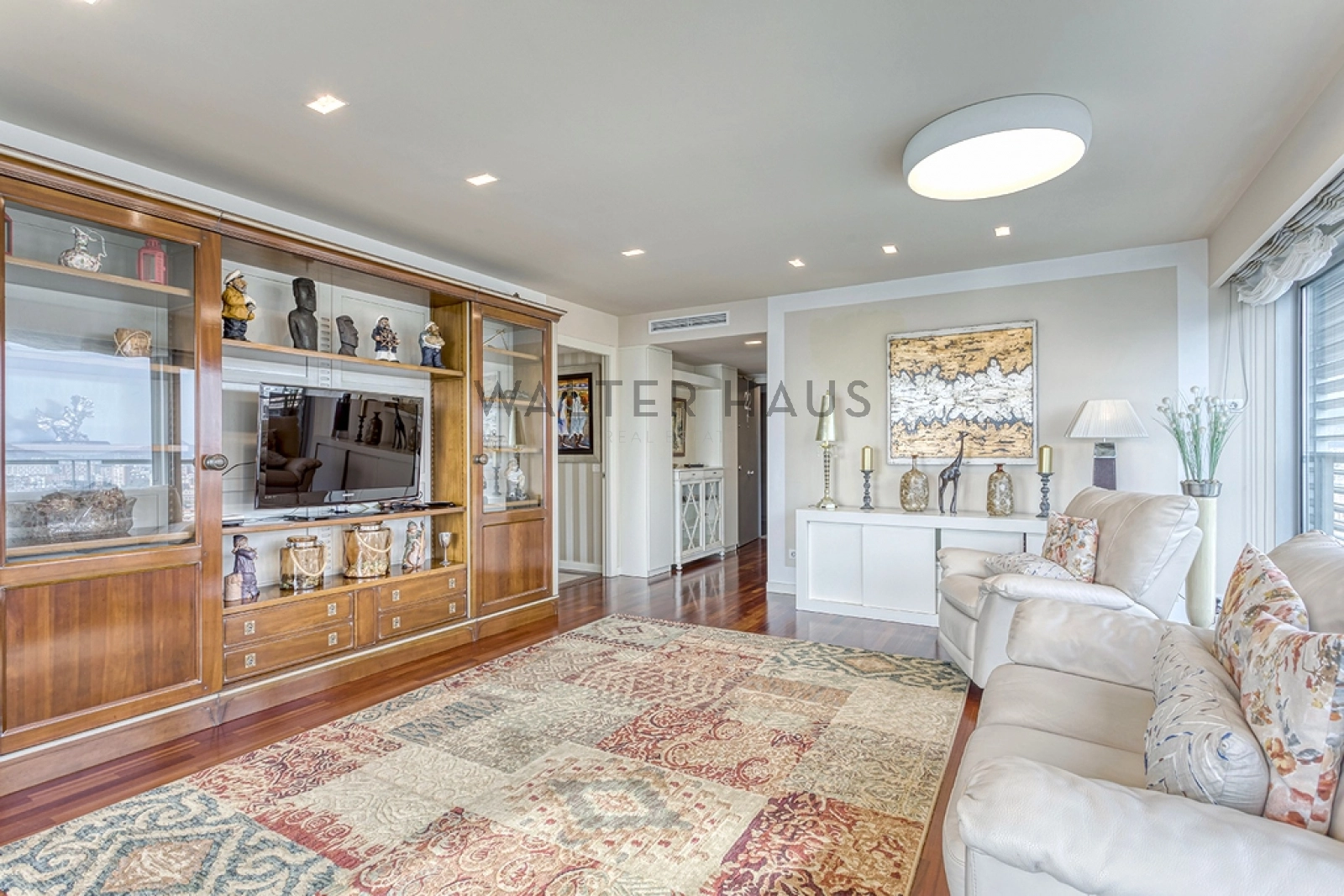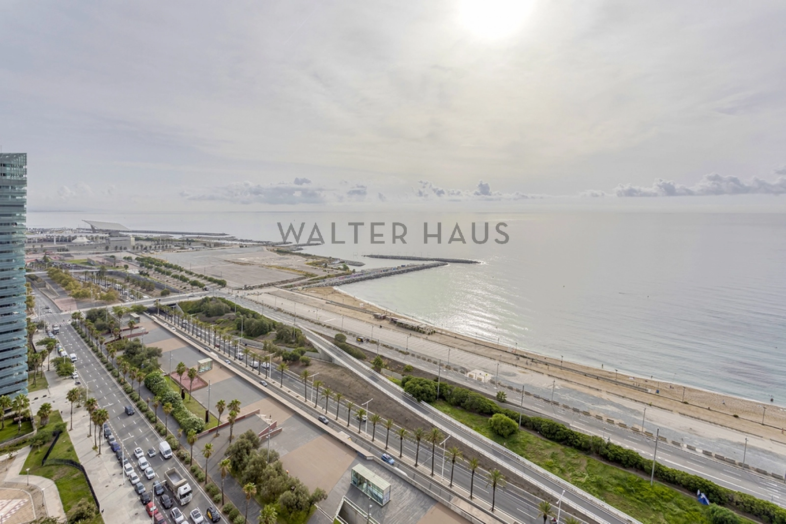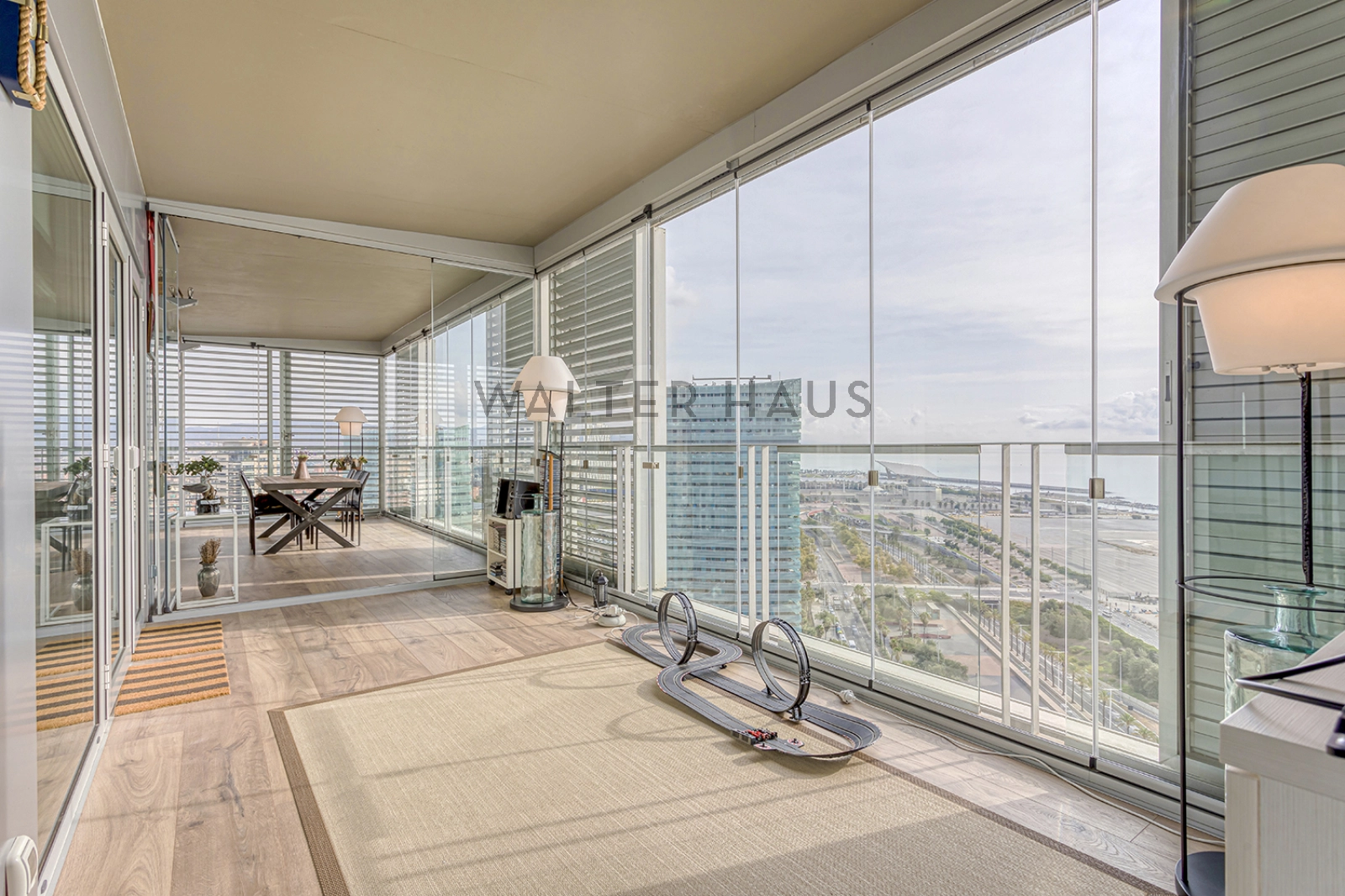 Assolellat pis de 140 m2 envoltat d´una gran terrassa amb tancament de vidre amb unes vistes privilegiades al mar ia la ciutat, al´exclusiva urbanització Illa de la Llum a Diagonal Mar.