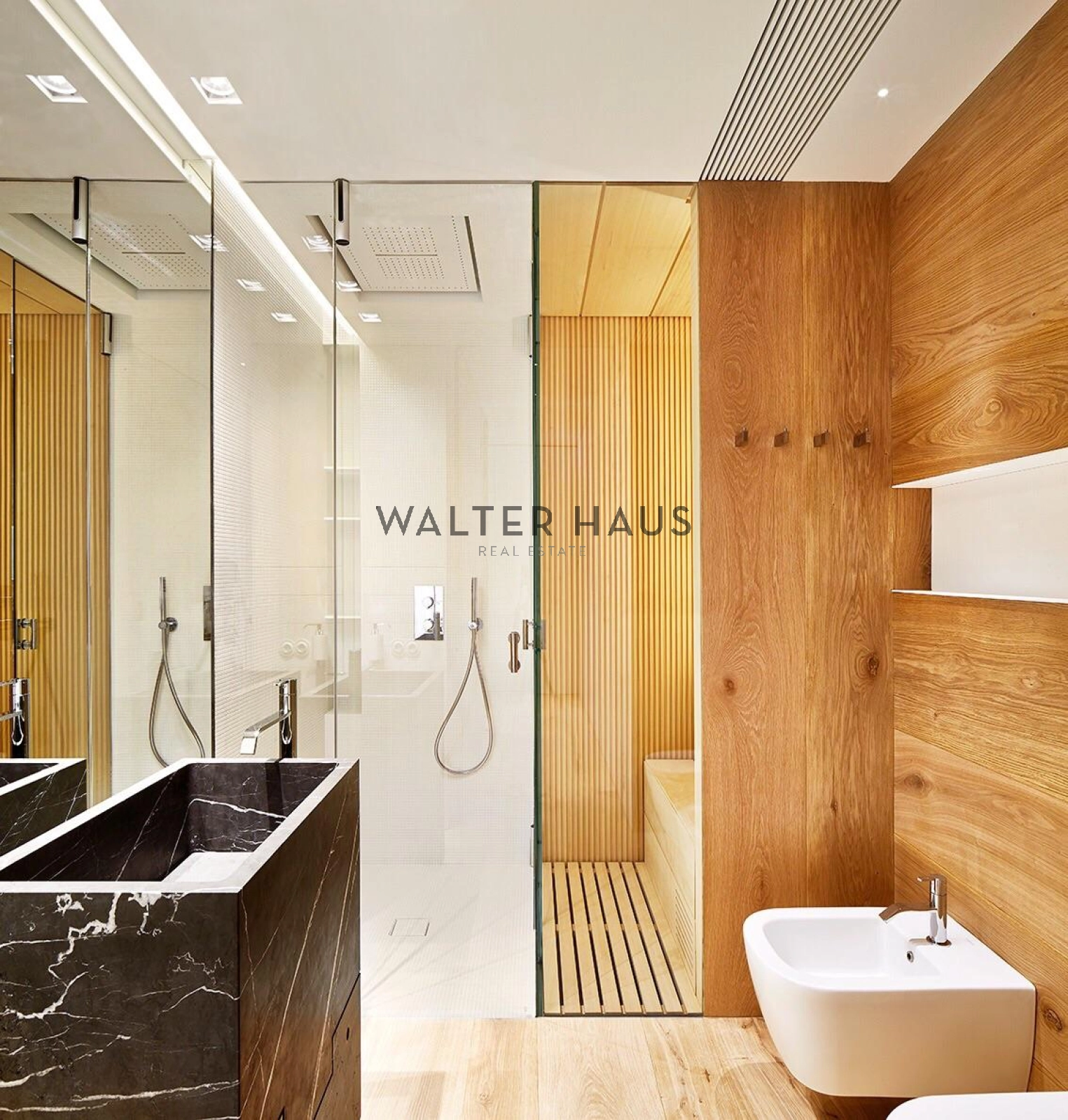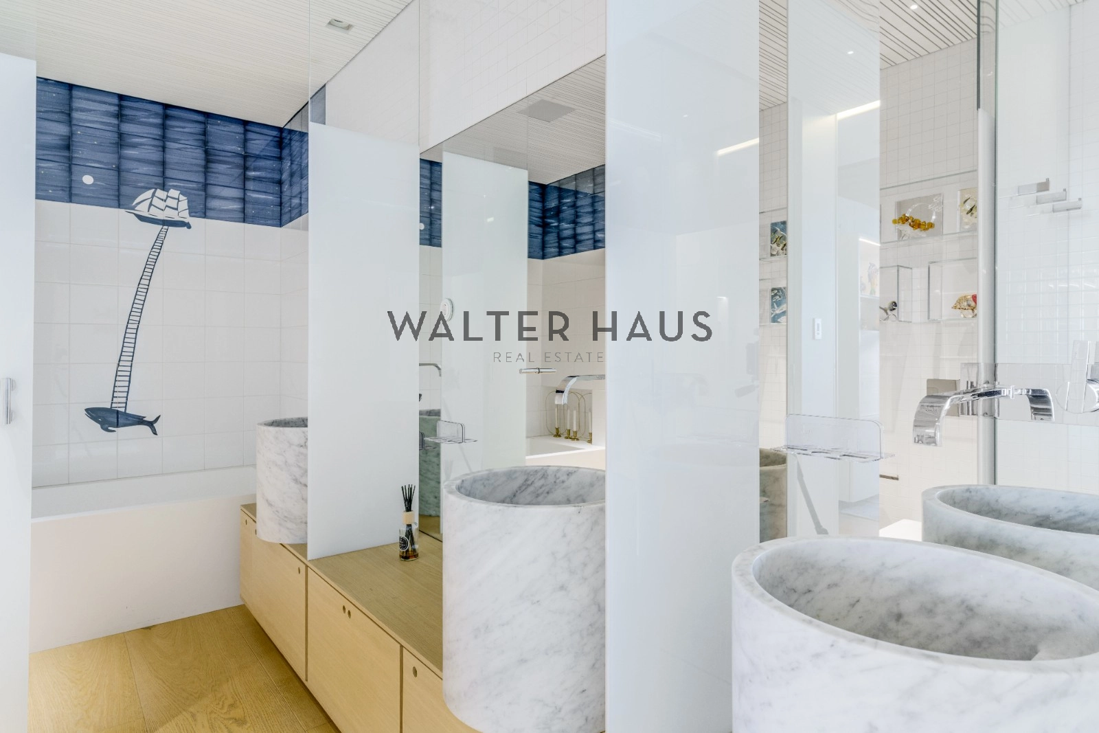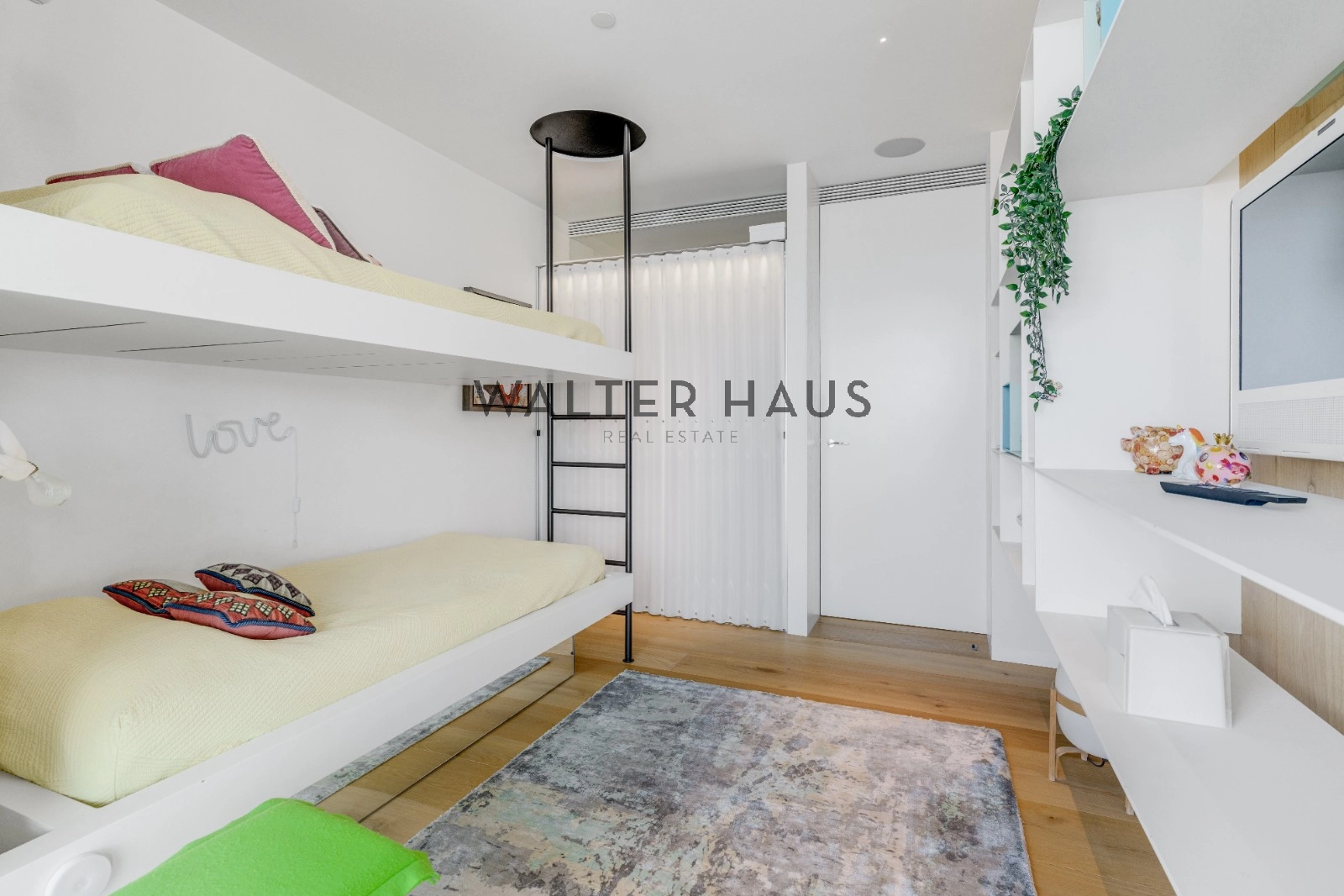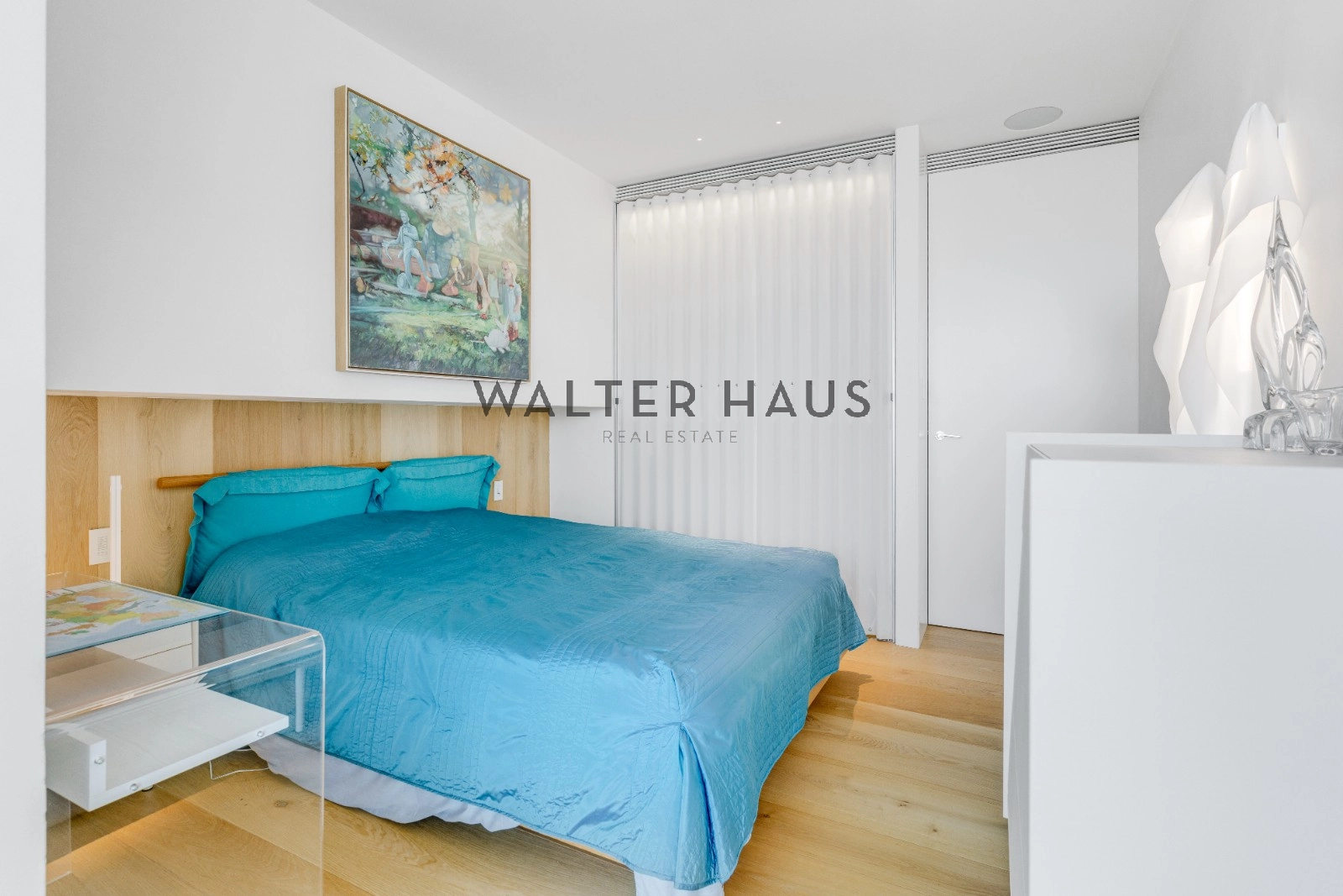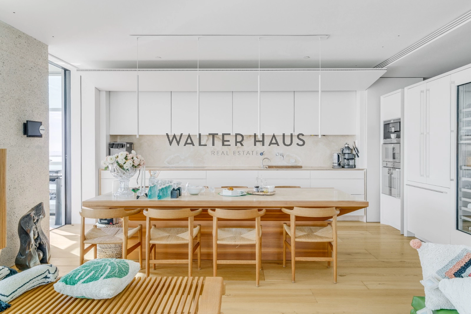 La distribució interior separa de manera clara la zona de dia i la zona de nit. La zona de descans inclou una suite principal amb vestidor i bany privat amb sauna, tres dormitoris dobles, bany complet amb dutxa i banyera, a més d’un lavabo de cortesia. La zona de dia disposa de dos salons espaiosos, tots dos amb sistemes de Home Cinema i so Bang