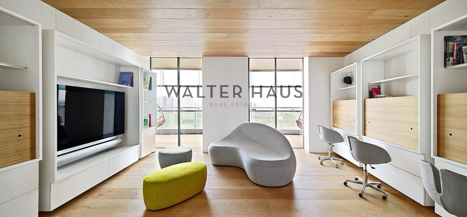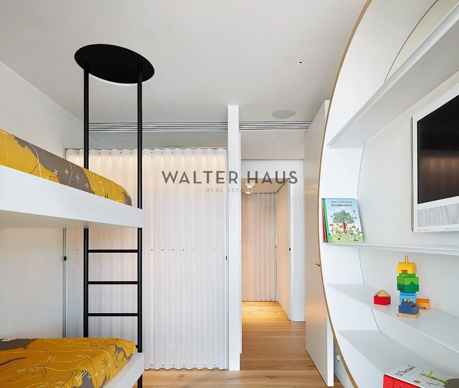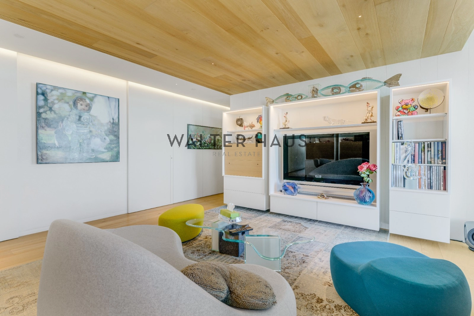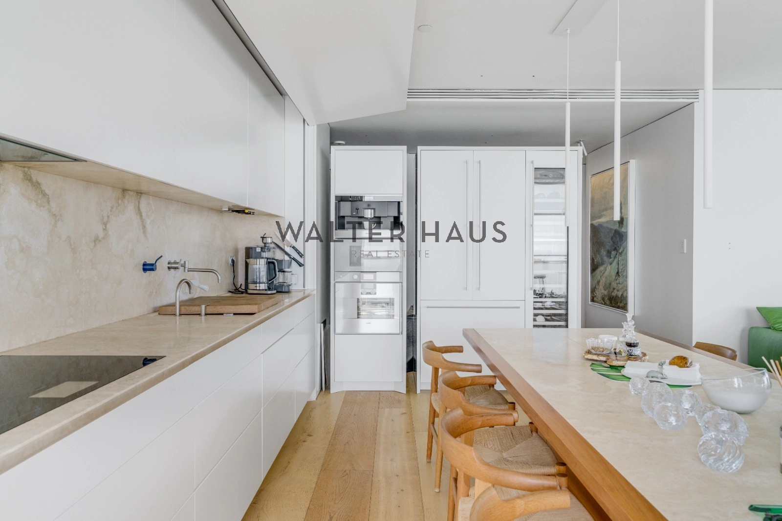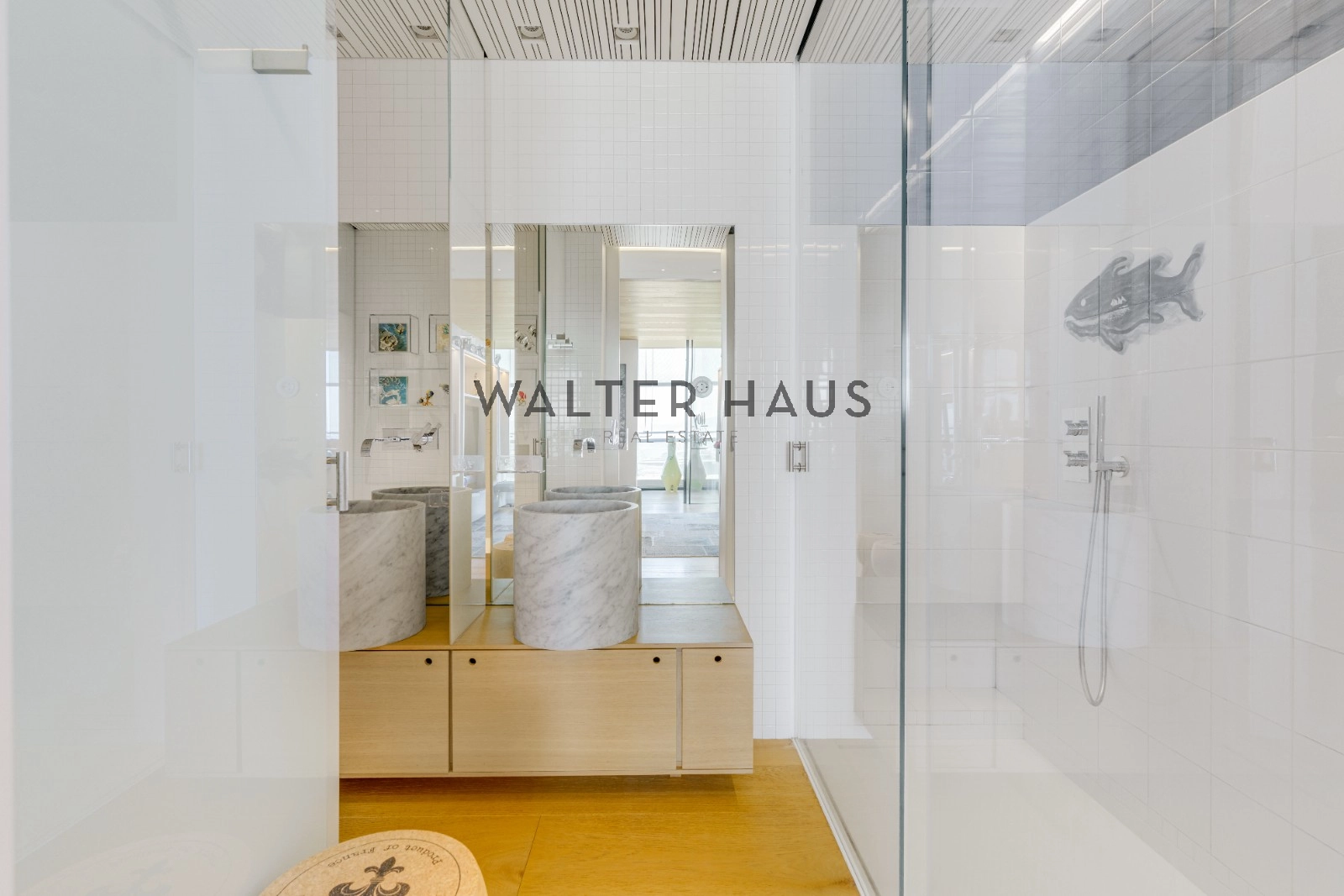 La distribució interior separa de manera clara la zona de dia i la zona de nit. La zona de descans inclou una suite principal amb vestidor i bany privat amb sauna, tres dormitoris dobles, bany complet amb dutxa i banyera, a més d’un lavabo de cortesia. La zona de dia disposa de dos salons espaiosos, tots dos amb sistemes de Home Cinema i so Bang