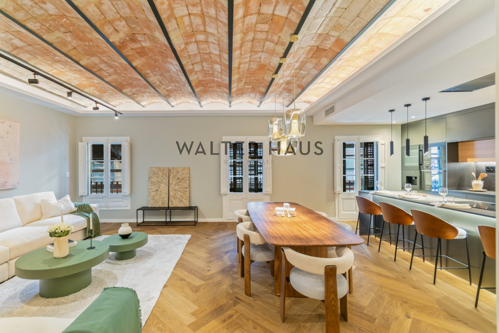 Exclusiu pis de 210 m² construïts recentment reformat a estrenar, situat a la cinquena planta reial d’una finca règia a la prestigiosa Via Laietana. L´habitatge és una perfecta combinació d´elegància clàssica i disseny contemporani, amb amplis espais banyats amb llum natural gràcies als seus balcons que ofereixen vistes clares a la ciutat i la Catedral de Barcelona.