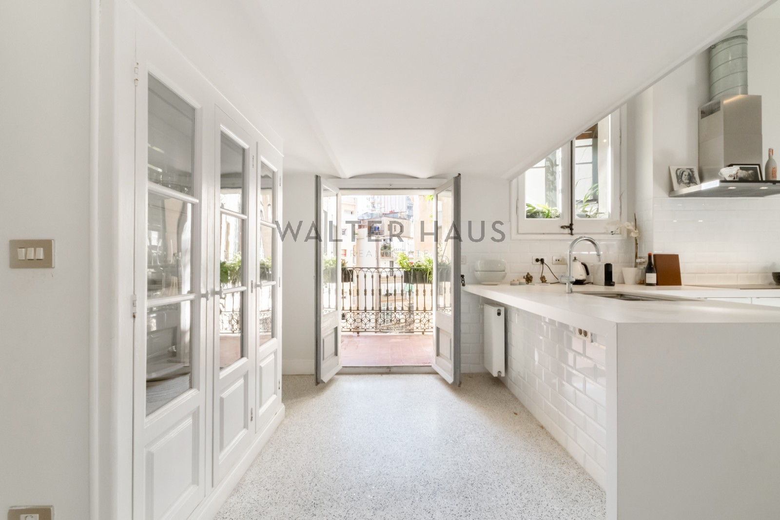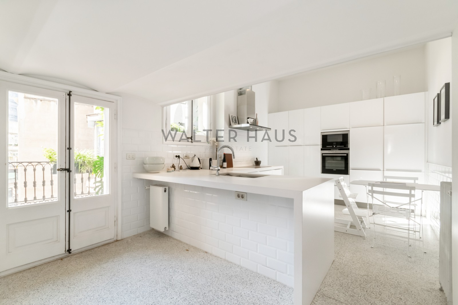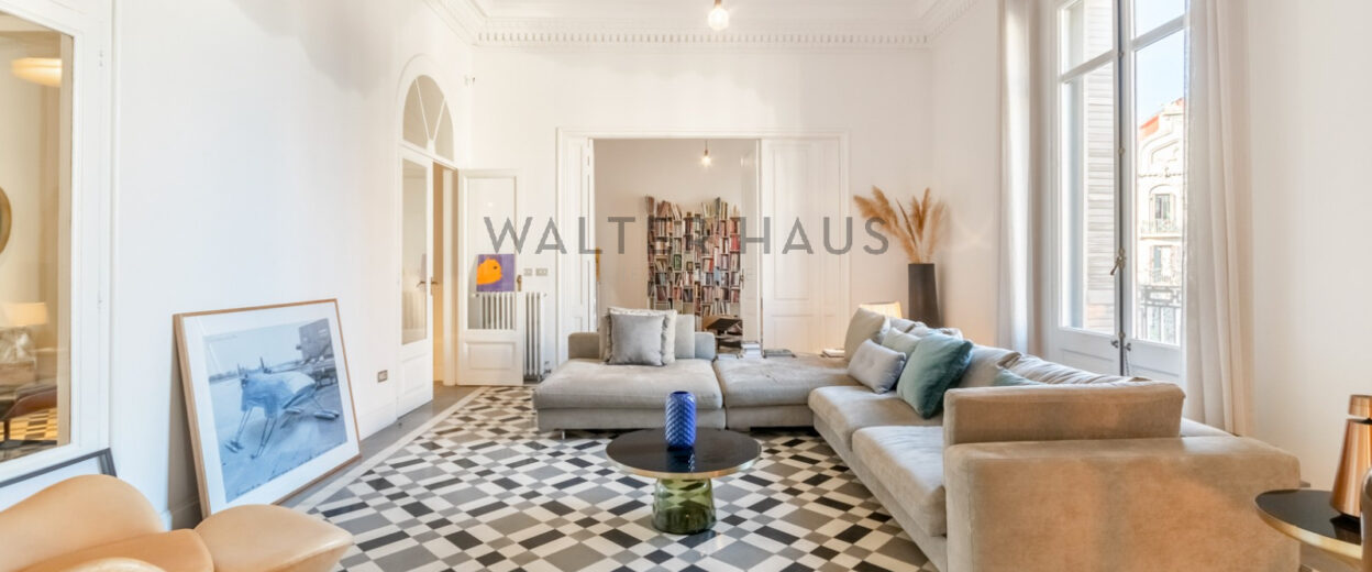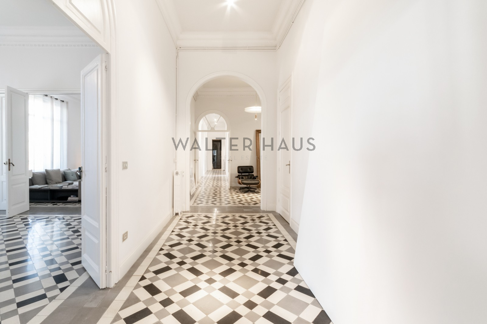 Aquest luxós immoble, renovat el 2017, es distingeix per la seva total exterioritat, els sostres alts i els preciosos sòls hidràulics. En entrar-hi, et rebrà un generós espai distribuïdor i un ampli despatx orientat al sud, amb una encantadora galeria tancada. L´imponent saló menjador de gairebé 70m2, dividit en tres àrees, s´obre a tres balcons a carrer, proporcionant llum i vistes a carrer.