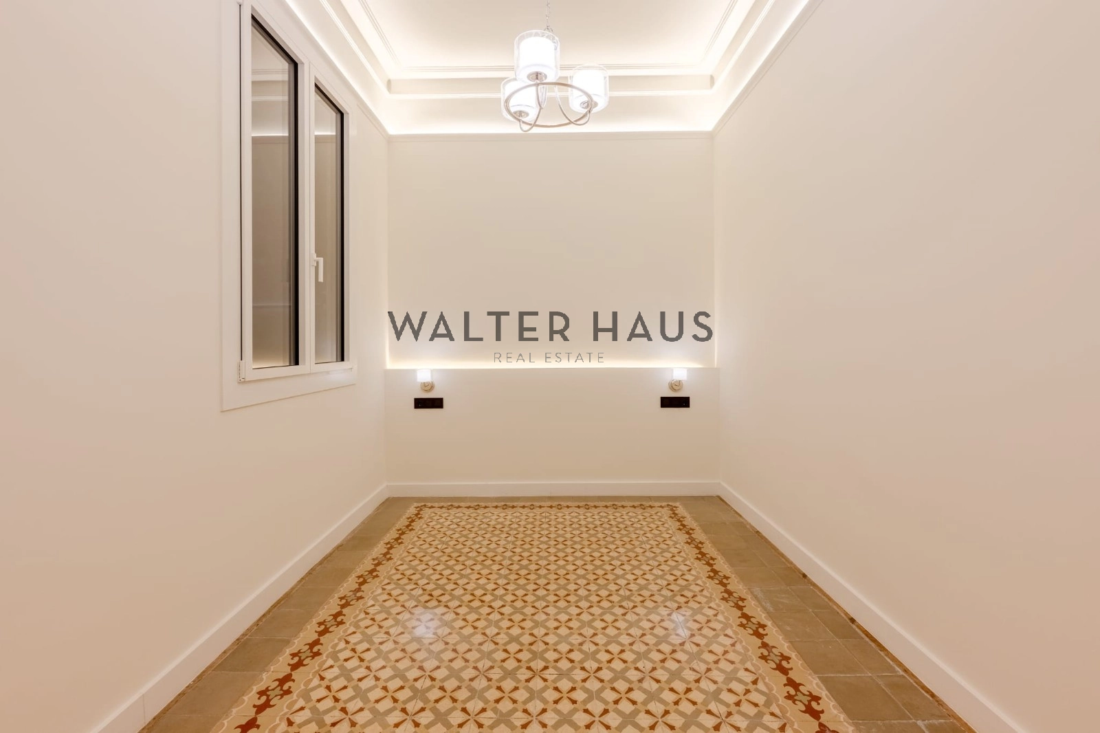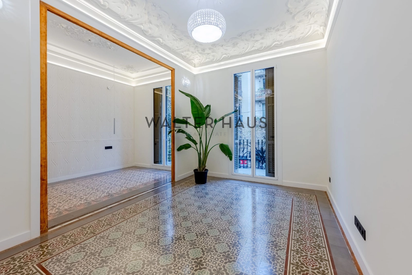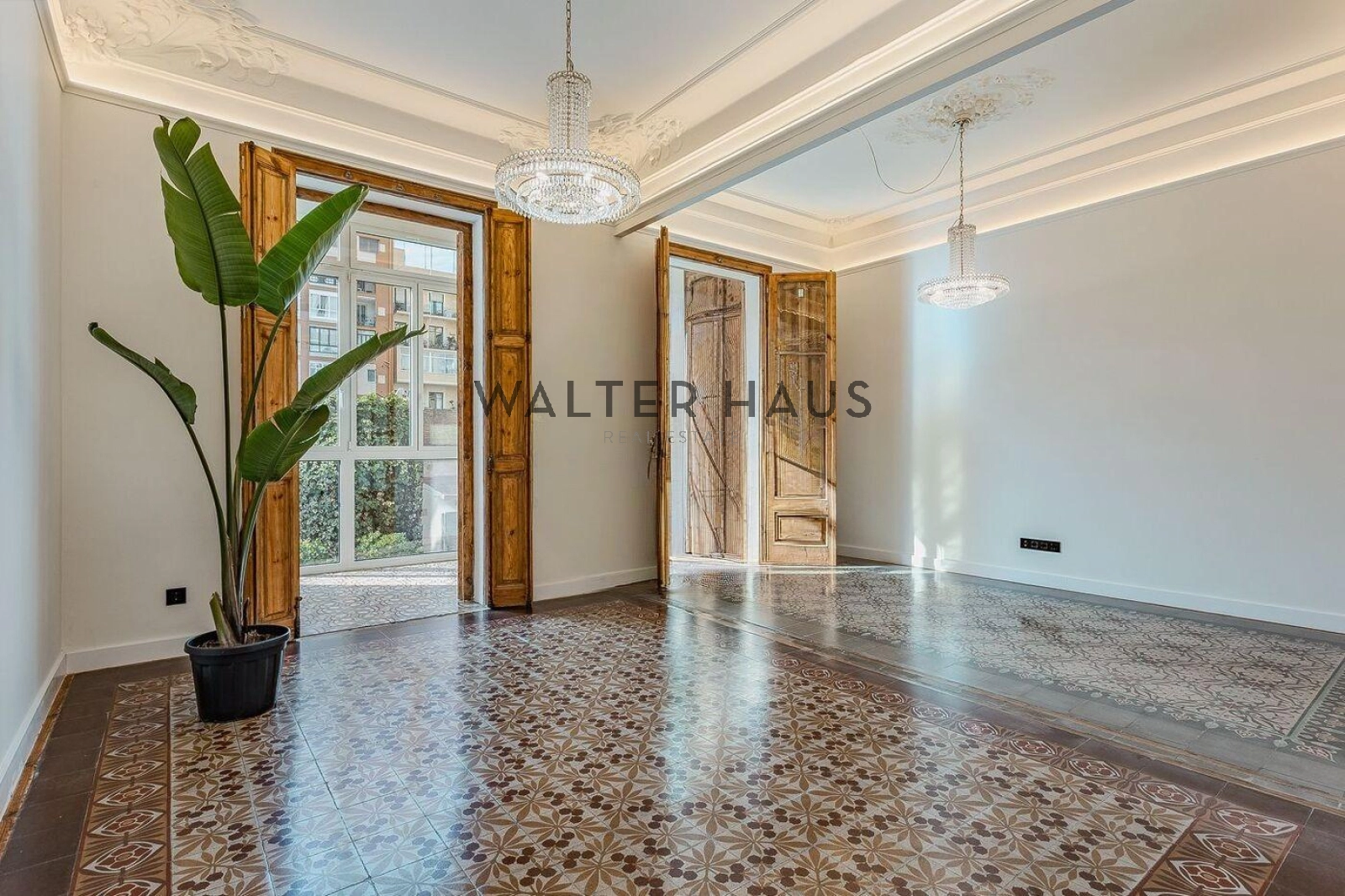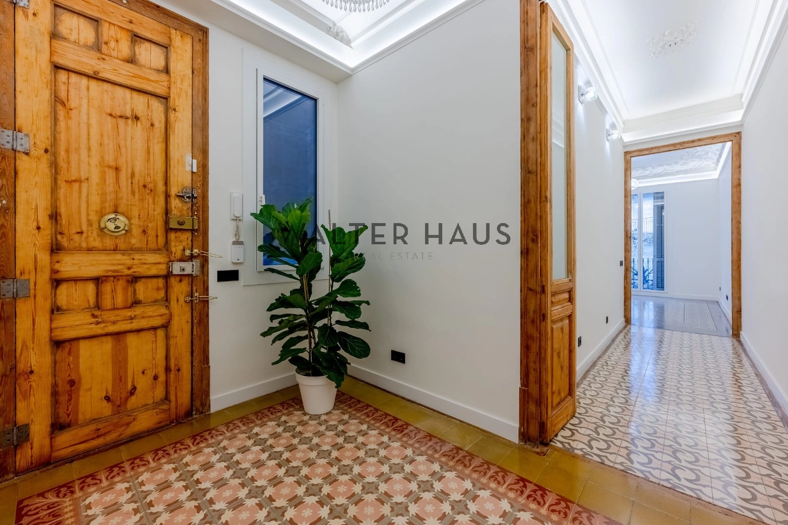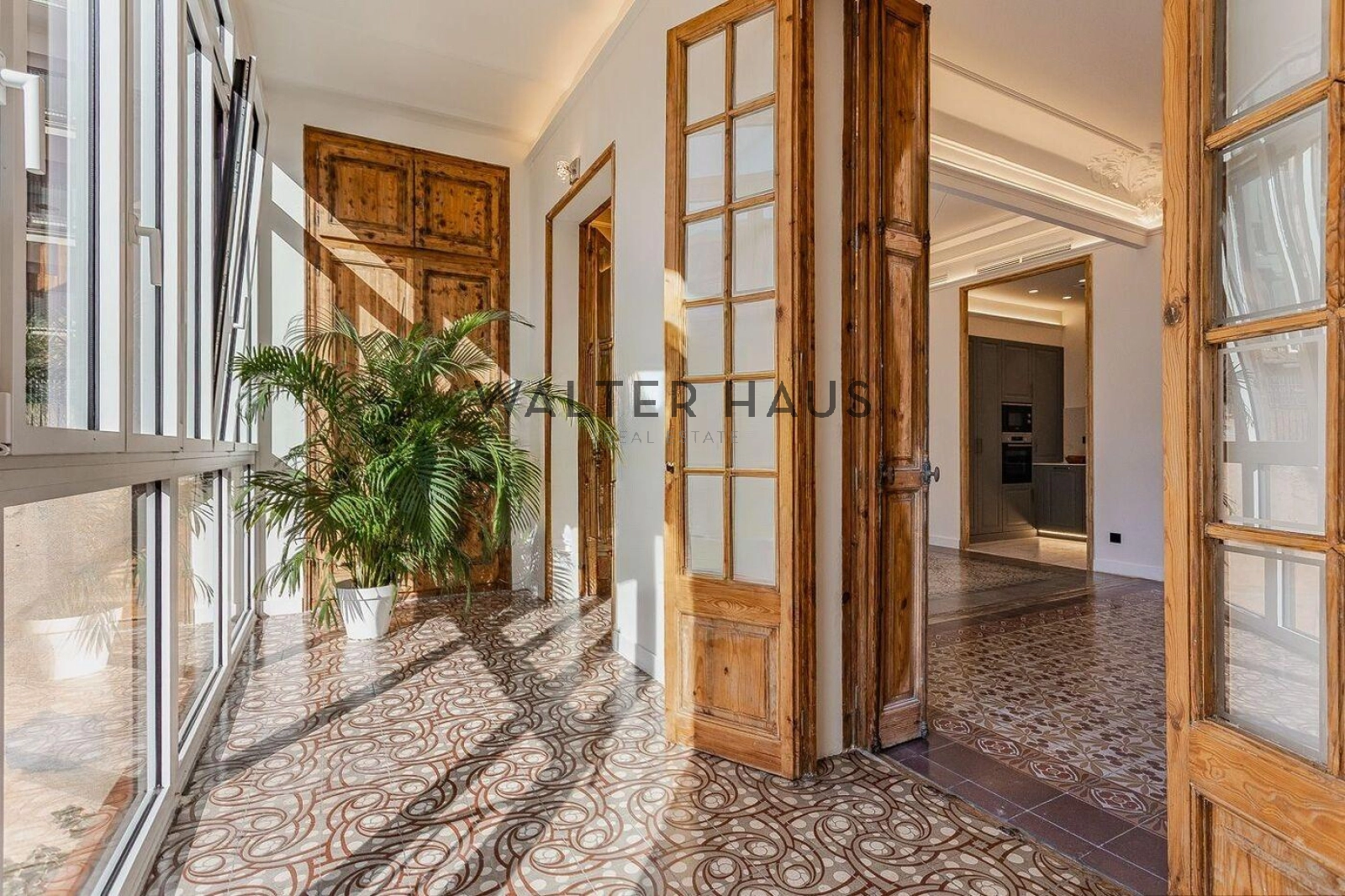 Exclusiu habitatge ubicat a la planta principal d’un edifici senyorial de 1910, on s’han preservat amb cura elements originals tan característics com els paviments hidràulics i els sostres treballats a mà i s’ha reformat íntegrament amb un gust excepcional.
