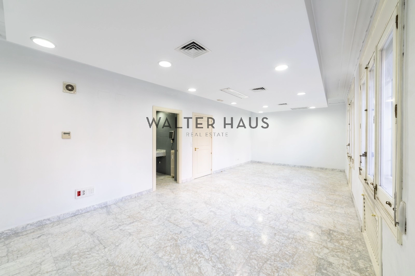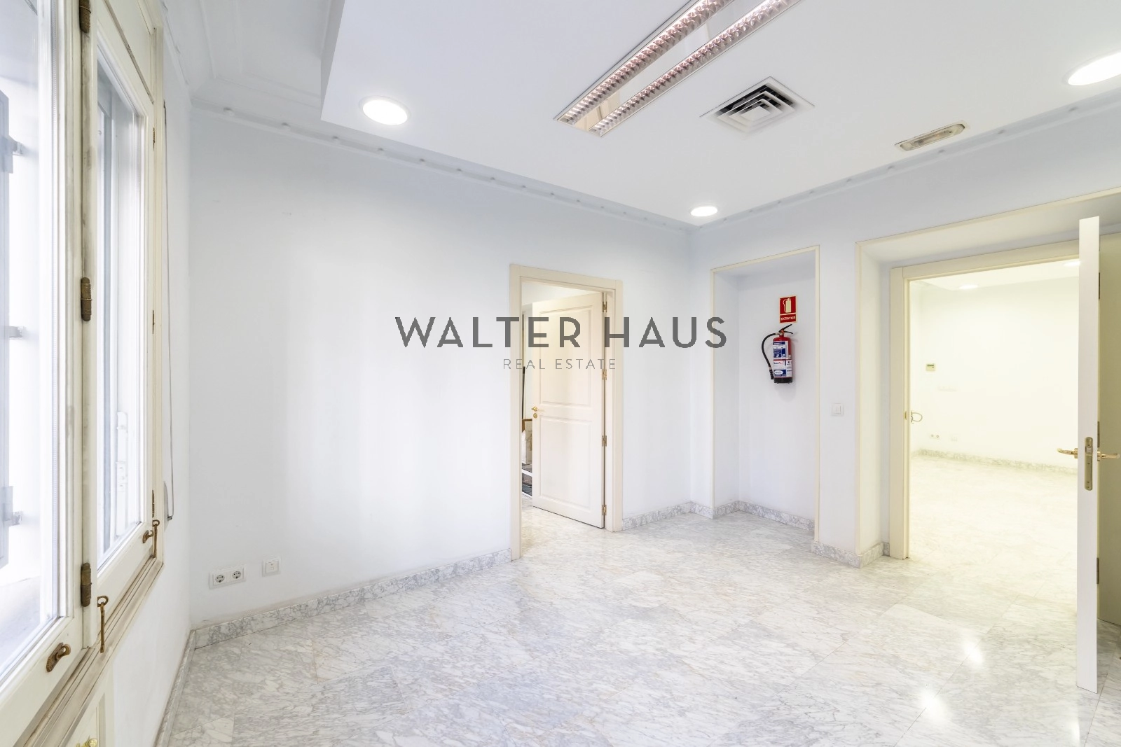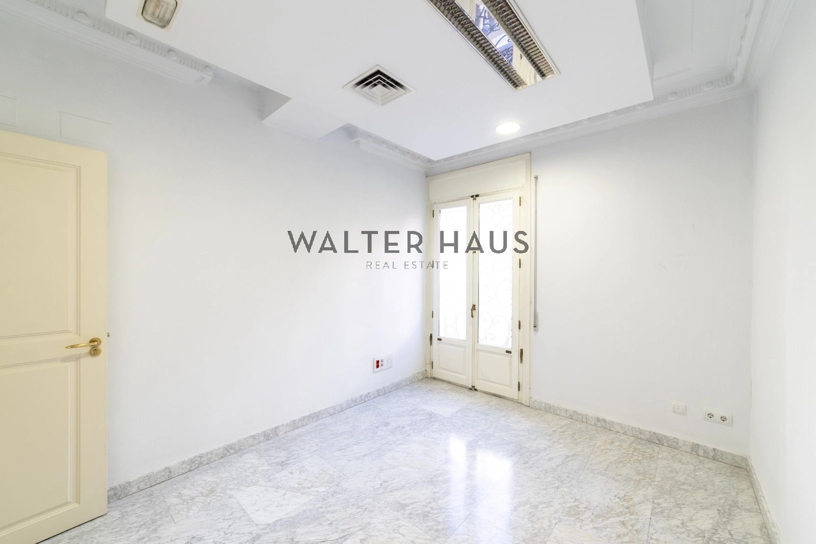 Tot i que les imatges mostren una oficina, la propietat té un ús exclusivament residencial. Destaca pels sostres alts que potencien la sensació d’amplitud i lluminositat a cada estança. La distribució permet una reforma flexible, ja que les baixants estan estratègicament ubicades al llarg de l’immoble, optimitzant les possibilitats de disseny. A més, compta amb quatre accessos independents, dos principals i dos de servei, cosa que afegeix funcionalitat i privadesa. La seva orientació cap a un edifici protegit de baixa altura permet que la llum natural flueixi a tots els espais.