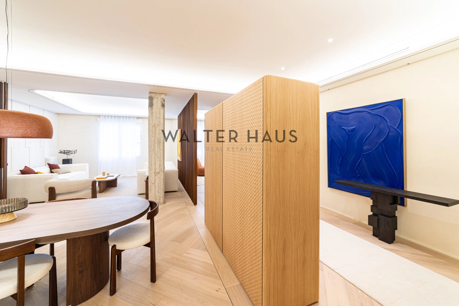 La immobiliària Walter Haus els presenta a EXCLUSIVA aquest habitatge de 286 m², totalment reformat, a estrenar, situat en un edifici representatiu del 1953, combina elegància clàssica i modernitat. La propietat destaca pels seus sostres alts, terres de fusta originals i àmplies finestres que ofereixen abundant llum natural.