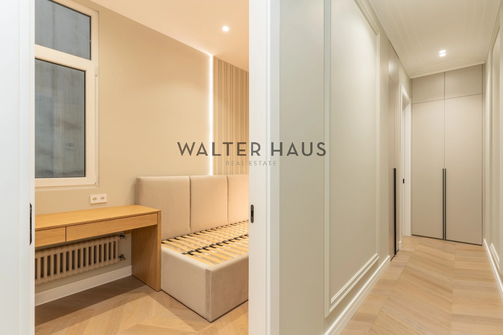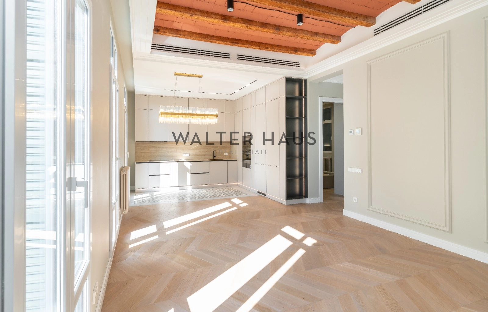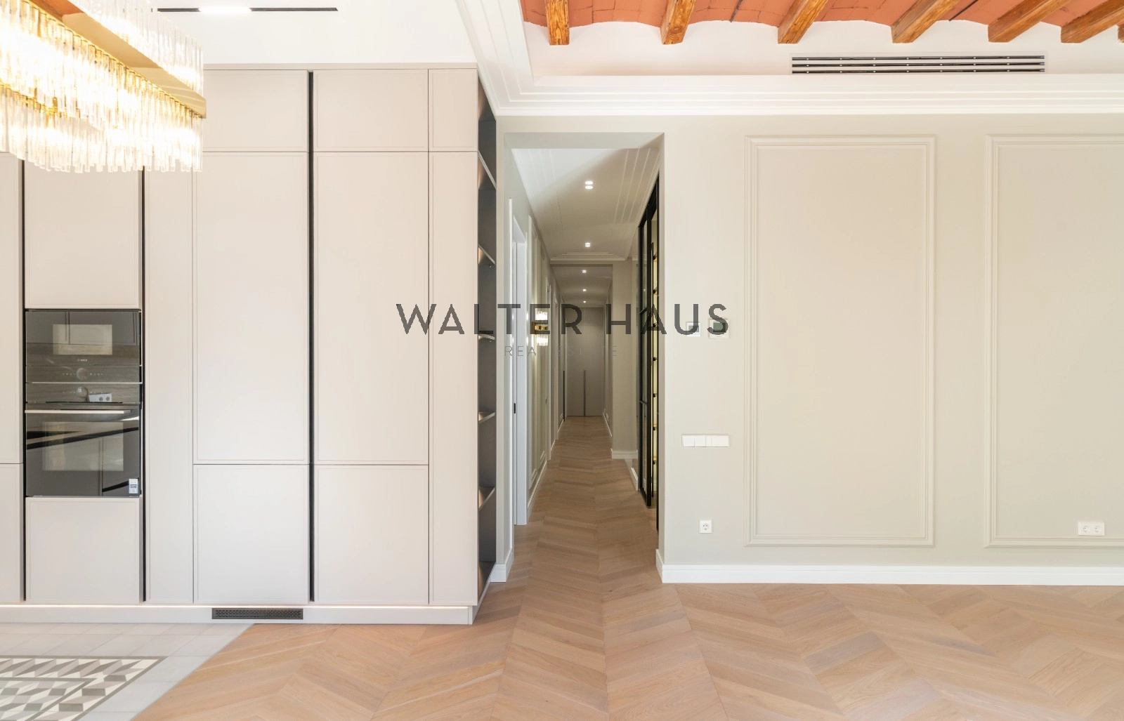 Exclusiu habitatge en una finca règia de 1910 ubicada al cor de la Dreta de l’Eixample. El pis, de 124m² construïts, es troba actualment en procés de reforma, amb lliurament previst per al segon trimestre del 2025. El projecte de renovació ha estat dissenyat per a combinar luxe i funcionalitat, respectant elements originals de l’edifici i adaptant-los a les necessitats de la vida contemporània.