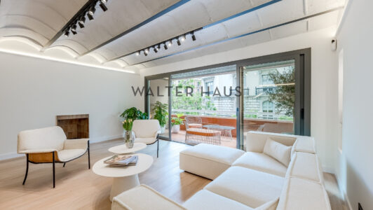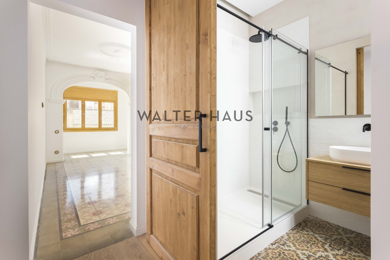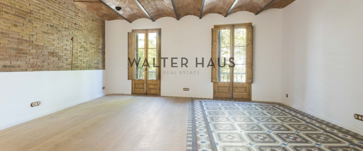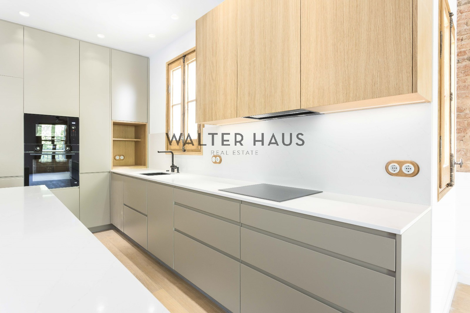 El disseny de la propietat destaca per la seva amplitud i la qualitat dels materials utilitzats a la reforma. La cuina de concepte obert està equipada amb electrodomèstics de gamma alta, integrant-se a la perfecció amb el saló-menjador. Els terres hidràulics preserven el caràcter clàssic de l’habitatge, mentre que els sostres enteixinats i la volta catalana realcen la sensació d’amplitud i elegància.
