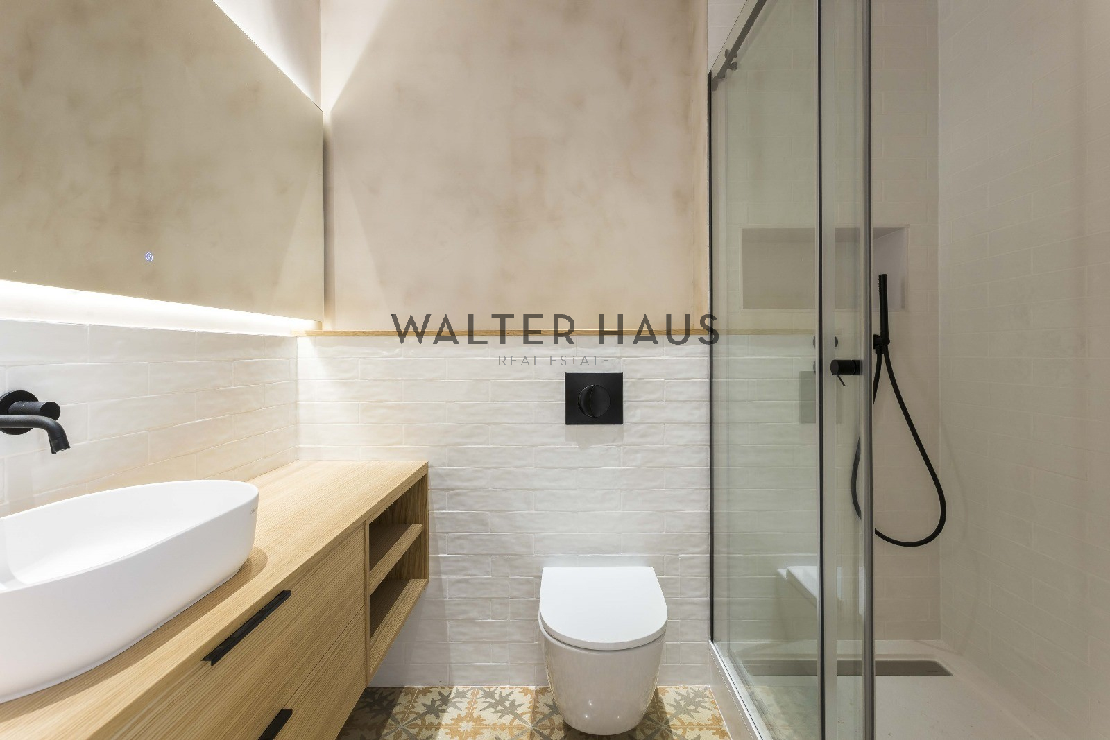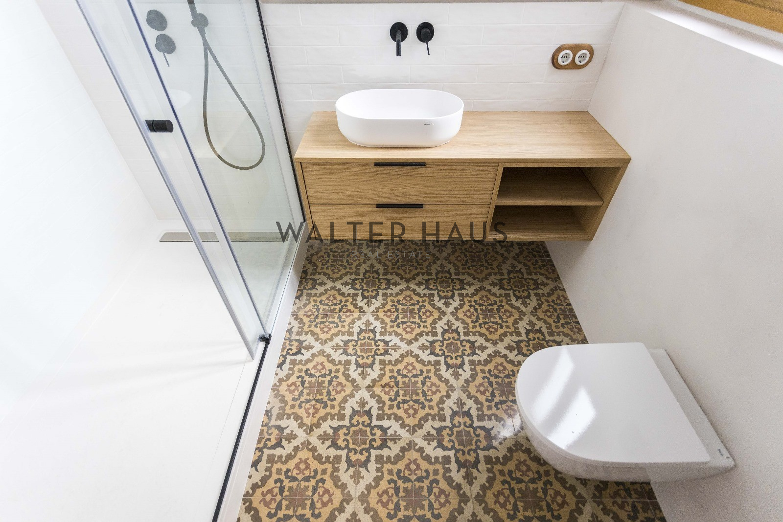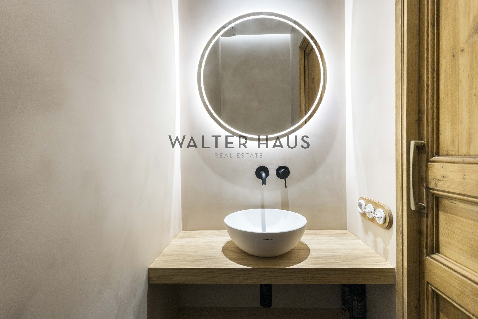 El disseny de la propietat destaca per la seva amplitud i la qualitat dels materials utilitzats a la reforma. La cuina de concepte obert està equipada amb electrodomèstics de gamma alta, integrant-se a la perfecció amb el saló-menjador. Els terres hidràulics preserven el caràcter clàssic de l’habitatge, mentre que els sostres enteixinats i la volta catalana realcen la sensació d’amplitud i elegància.