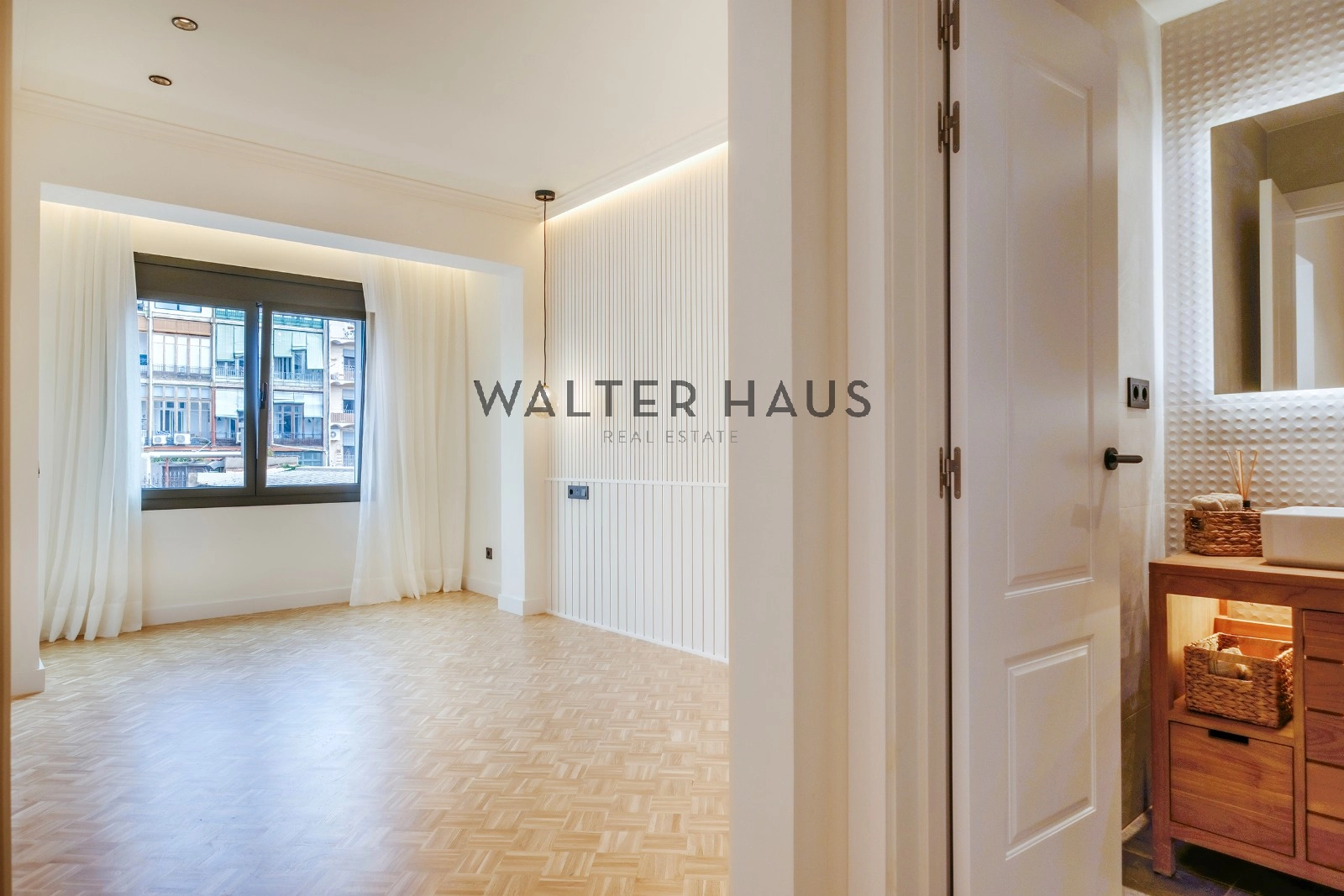 L’àrea principal destaca per un saló ampli amb terres de fusta natural que connecta directament amb una terrassa assolellada de 9 m² orientada cap al tranquil carrer de vianants. La cuina, independent i totalment equipada, està dissenyada amb línies modernes i materials d´alta qualitat, i inclou una zona de menjador annexa que reforça el confort de l´habitatge. La propietat disposa a més de tres suites amb bany privat, una amb vestidor i sortida a un balcó íntim. Els banys, reformats amb un estil actual, ofereixen materials de gran nivell que aporten elegància i comoditat.