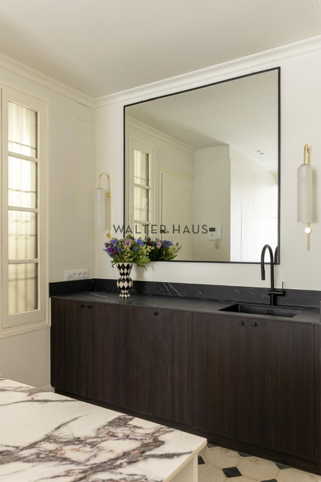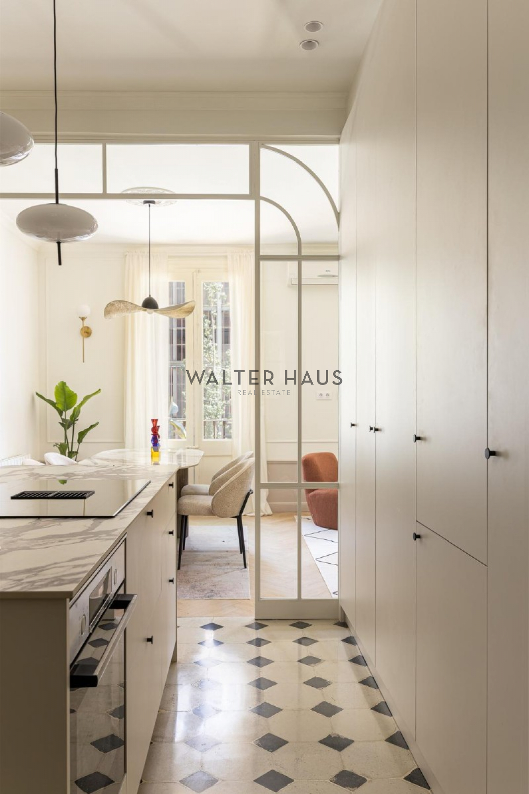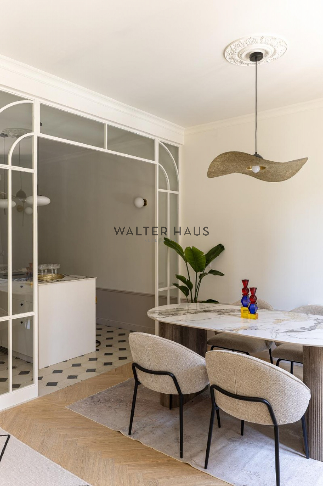 El caràcter original de la finca s’ha preservat mitjançant la restauració d’elements tradicionals com ara els sòls hidràulics, que aporten autenticitat i calidesa. Les motllures decoratives a parets i sostres, juntament amb un subtil aire afrancesat en l’elecció del mobiliari i la paleta de colors, eleven el disseny del pis a un nivell únic. La propietat es troba en una finca ben cuidada, en un carrer tranquil però a pocs metres d’alguns dels emblemes arquitectònics de la ciutat i envoltada de tots els serveis, comerços i connexions de transport.
