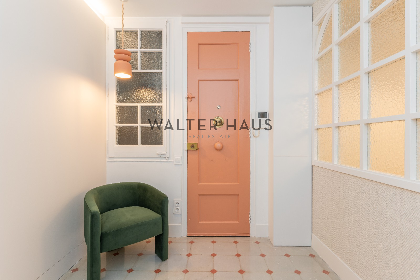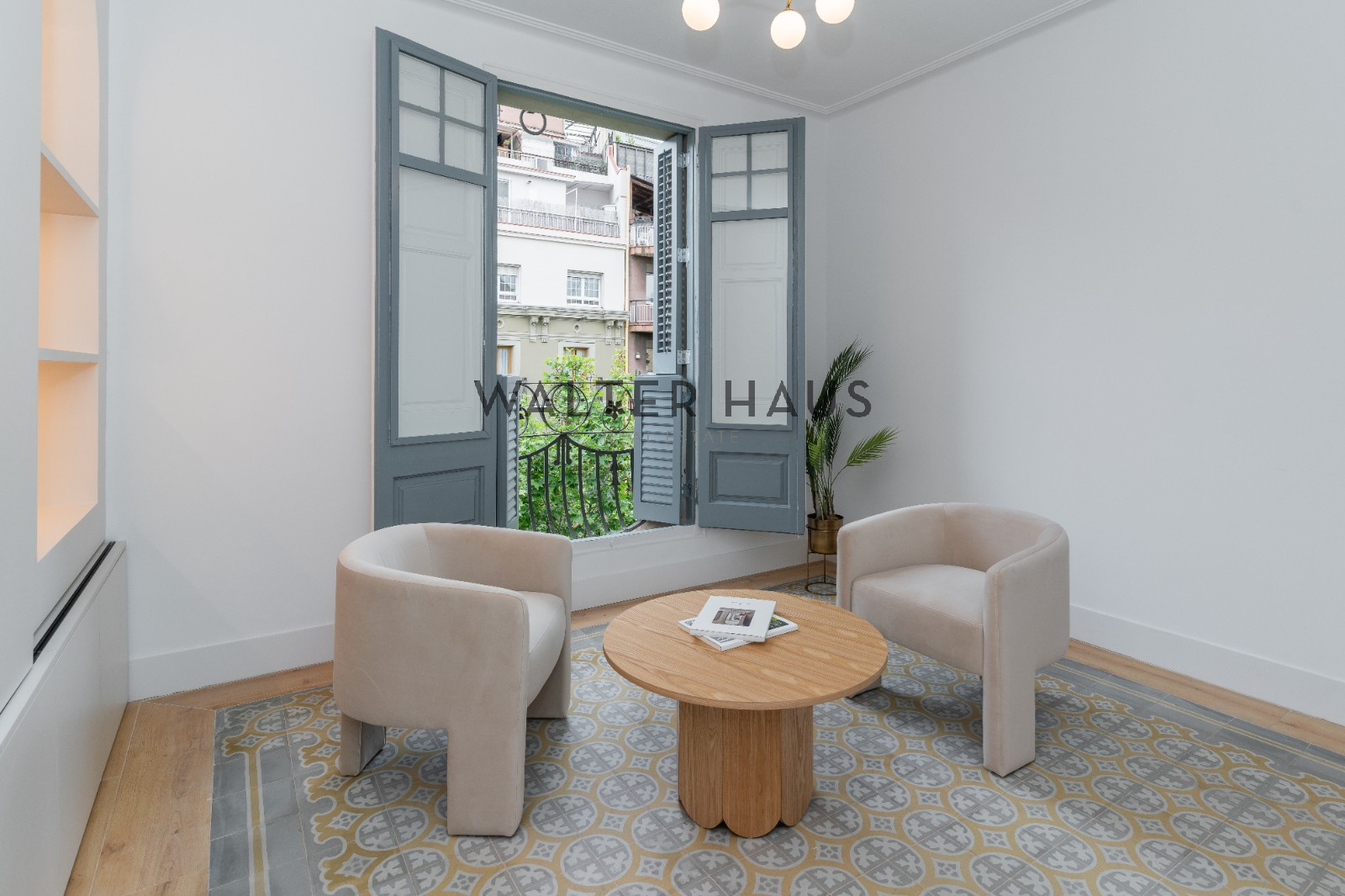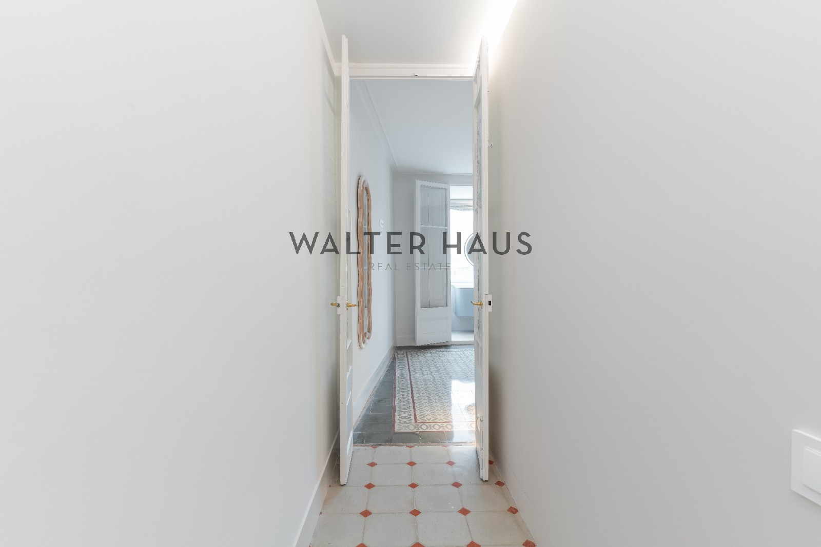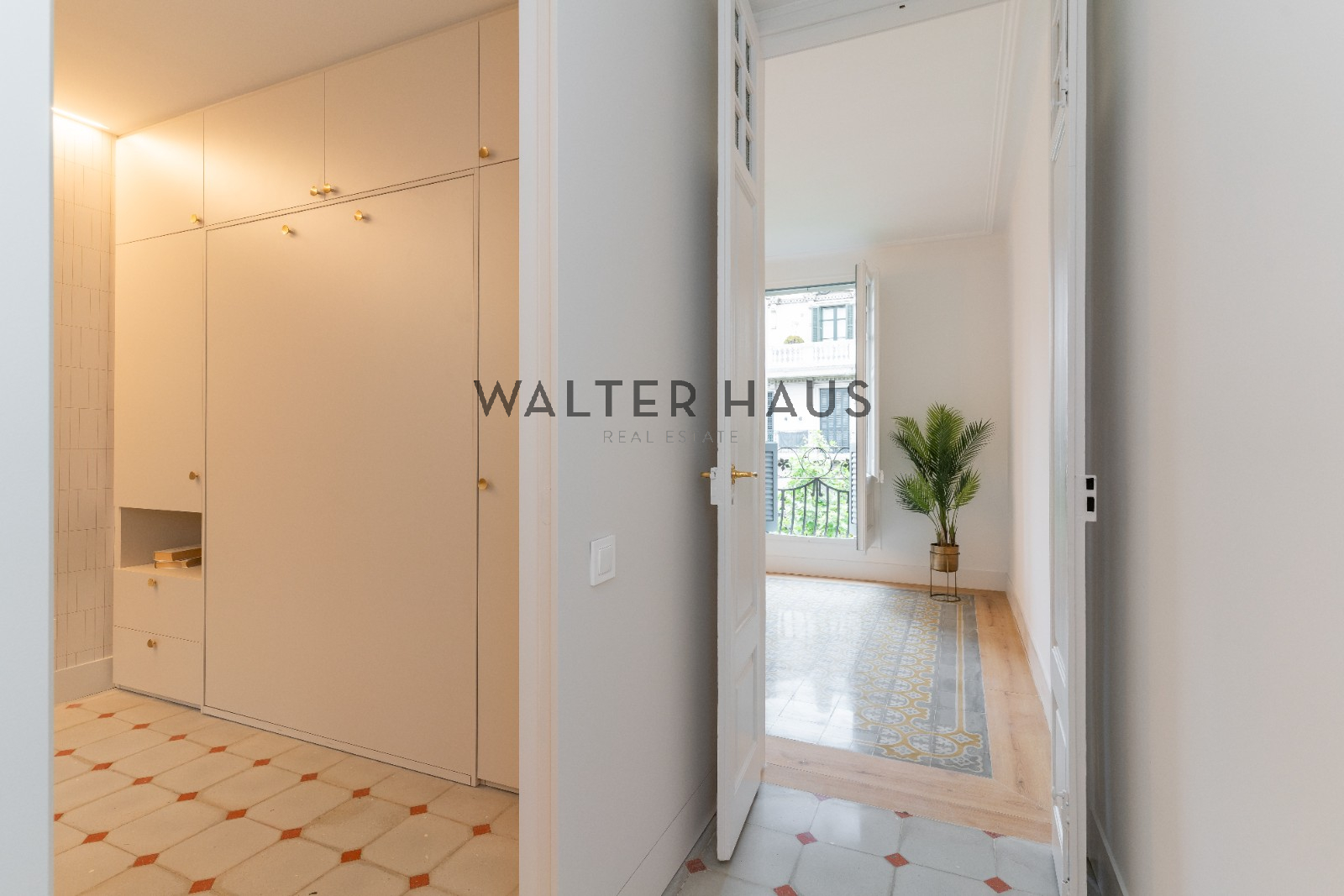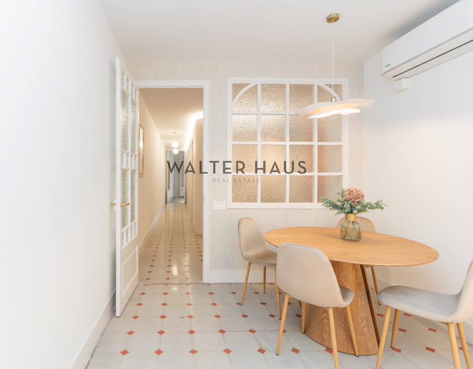 Exclusiu pis reformat de 115 m² construïts – dels quals 106 m² corresponen a l’habitatge i 9 m² a zones comunes – a la sisena planta real d’una finca règia de 1900 amb ascensor. La seva privilegiada orientació i alçada us permet gaudir d’una entrada de llum natural durant tot el dia a cada espai. La distribució de la propietat és funcional, ideal per als que busquen un lloc estètic, pràctic i privat. La reforma ha integrat els elements arquitectònics originals amb detalls moderns i materials de gran qualitat.