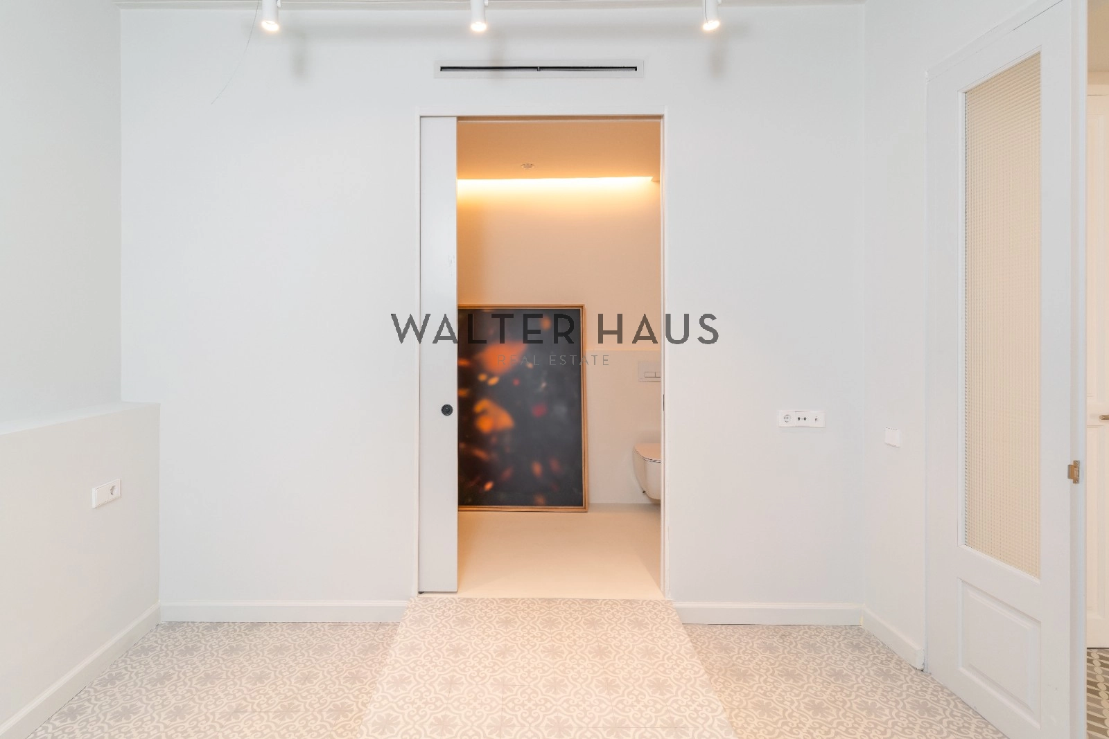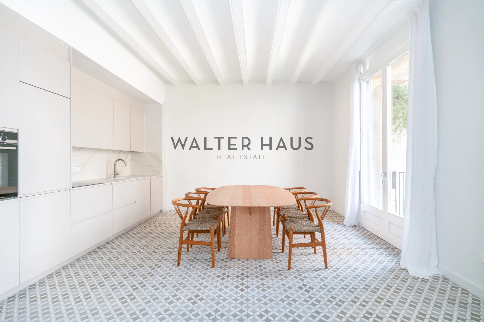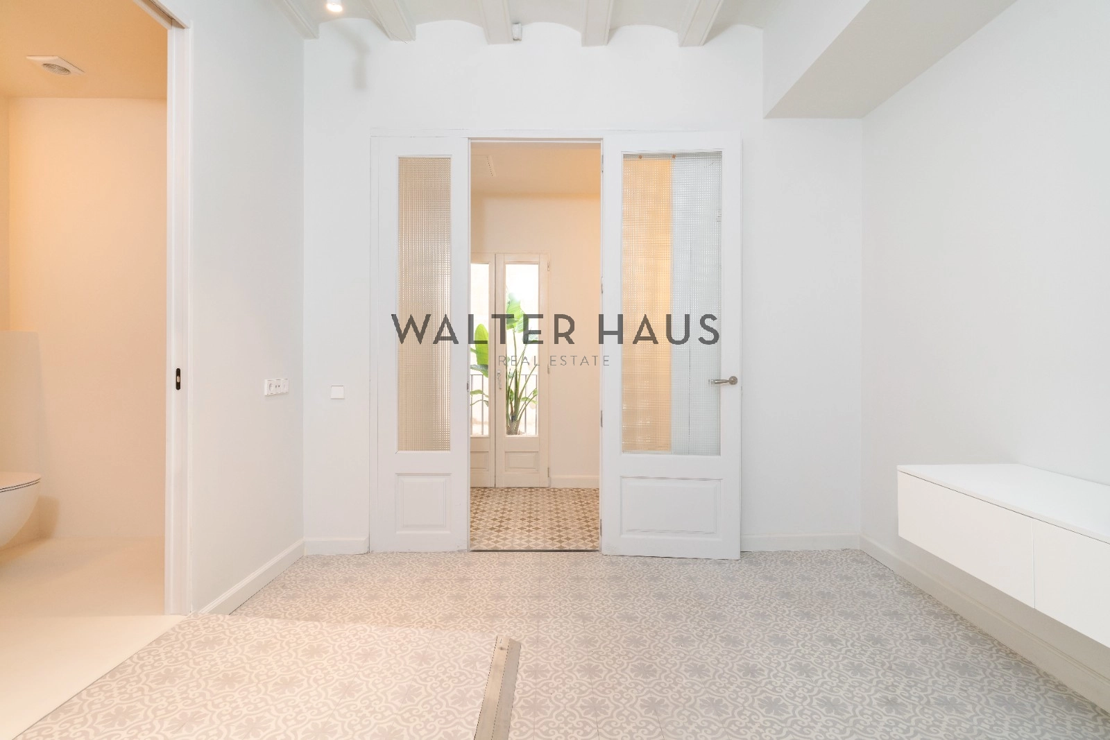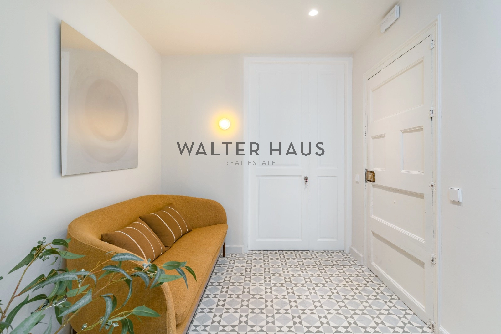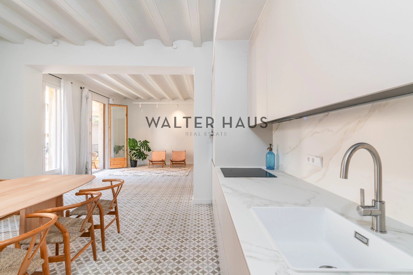 Exclusiu pis de 137 m² construïts completament reformat al cor de Barcelona. L’habitatge destaca per la seva acurada rehabilitació que respecta els elements originals com les bigues de fusta als sostres i els terres hidràulics, integrant alhora acabats moderns de gran qualitat. Orientat cap a un tranquil pati interior, garanteix una atmosfera silenciosa i agradable, una característica molt valorada en una zona tan cèntrica.