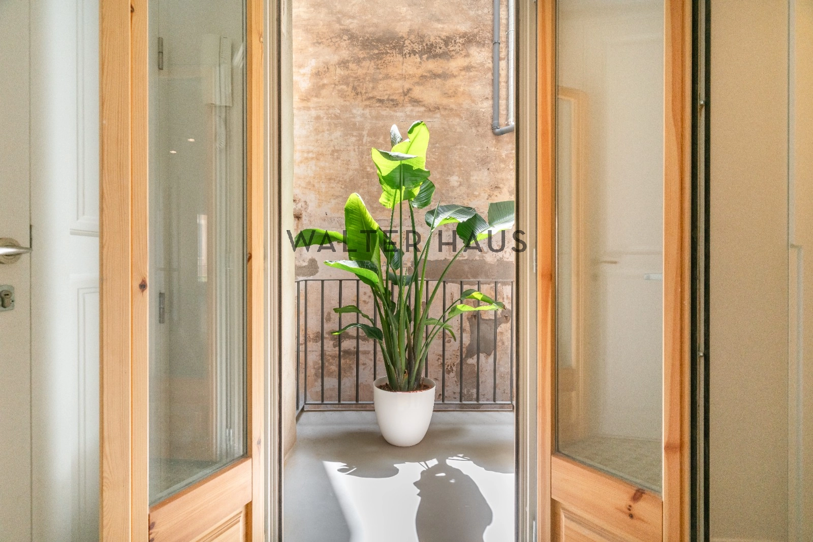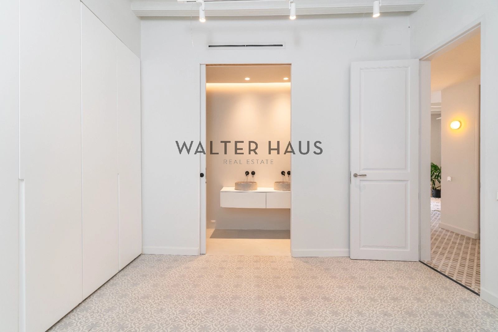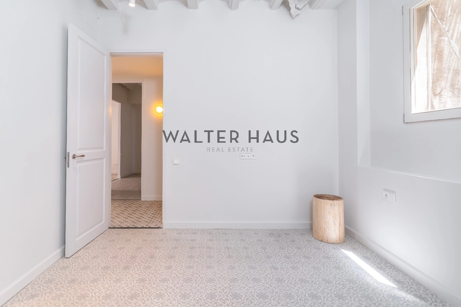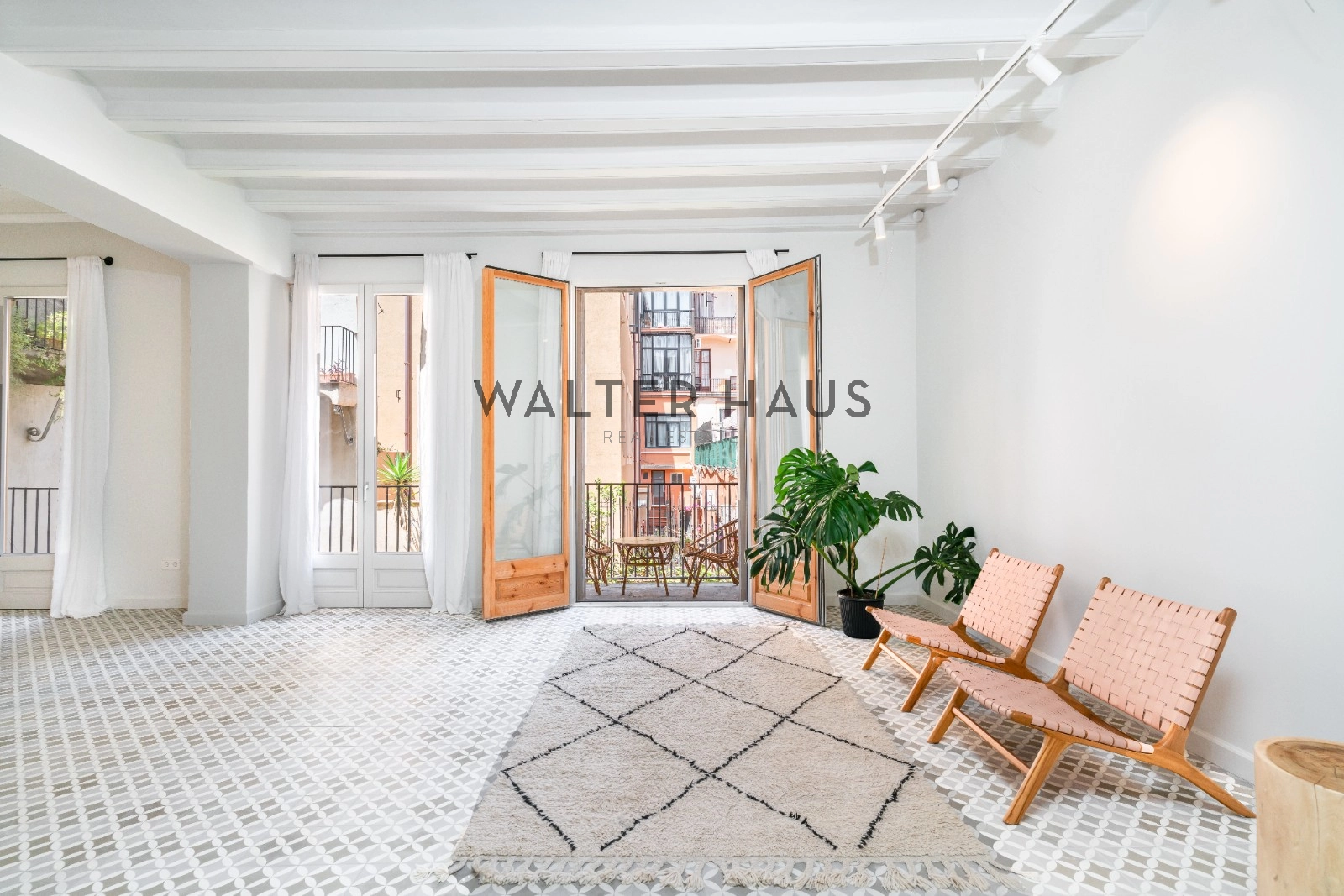Exclusiu pis de 137 m² construïts completament reformat al cor de Barcelona. L’habitatge destaca per la seva acurada rehabilitació que respecta els elements originals com les bigues de fusta als sostres i els terres hidràulics, integrant alhora acabats moderns de gran qualitat. Orientat cap a un tranquil pati interior, garanteix una atmosfera silenciosa i agradable, una característica molt valorada en una zona tan cèntrica.