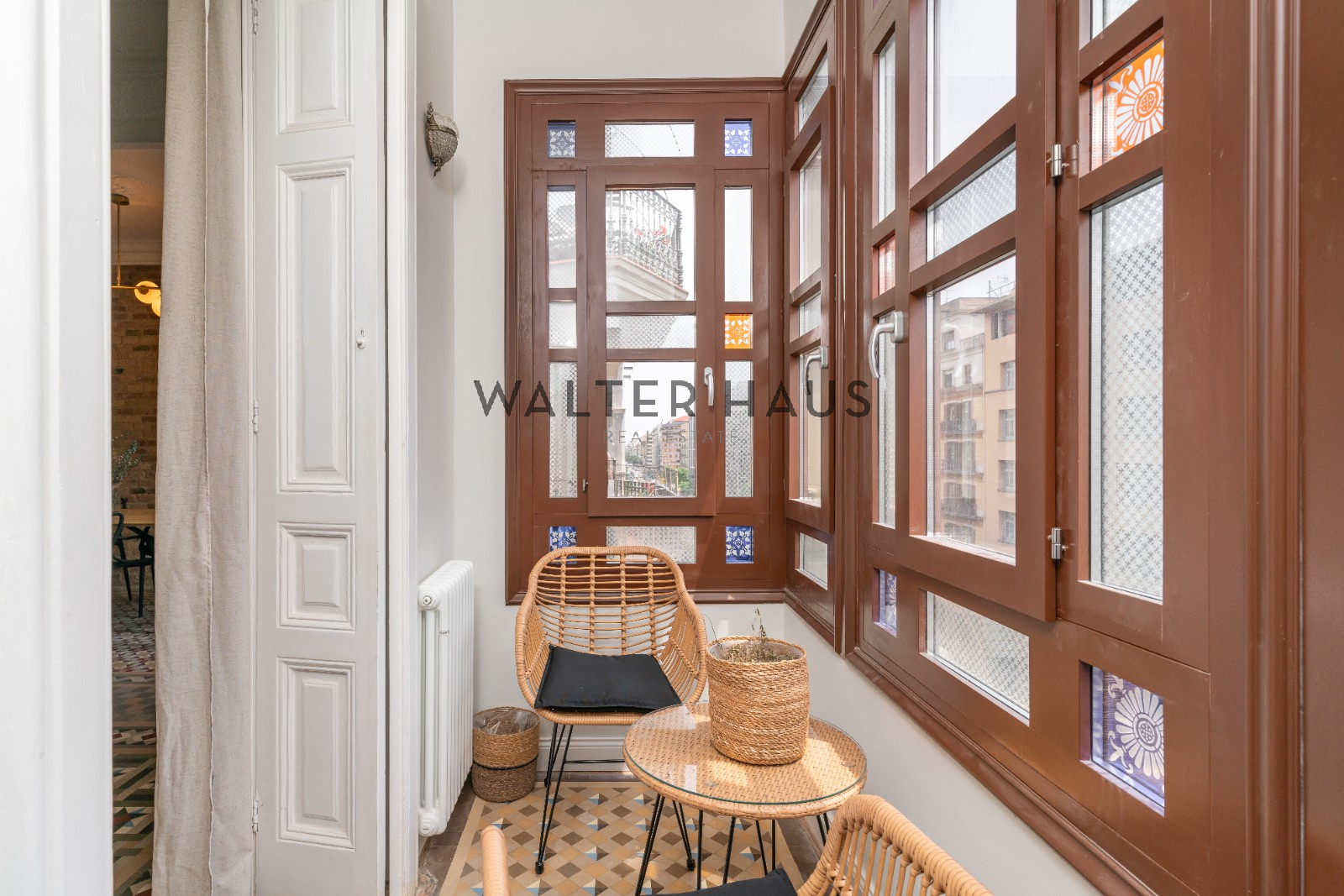 L´habitatge disposa d´un ampli i lluminós saló-menjador amb una galeria original amb vidrieres de colors i un balcó francès amb vistes clares. La cuina, oberta en tipus office, està equipada amb electrodomèstics de gamma alta i es connecta de manera harmoniosa amb els espais, generant una sensació d’amplitud i confort. A la zona de nit la propietat compta amb tres habitacions dobles, dues amb bany en tipus suite – totes amb armaris encastats. Una de les suites és exterior amb accés directe a una terrassa privada, mentre que l’altra s’orienta cap a un celobert amb excel·lent entrada de llum natural. La tercera habitació també és doble i gaudeix de sortida a la terrassa. A més, compta amb un bany de cortesia i una àmplia zona de rebost. S’entrega amb mobles de disseny inclosos al preu.