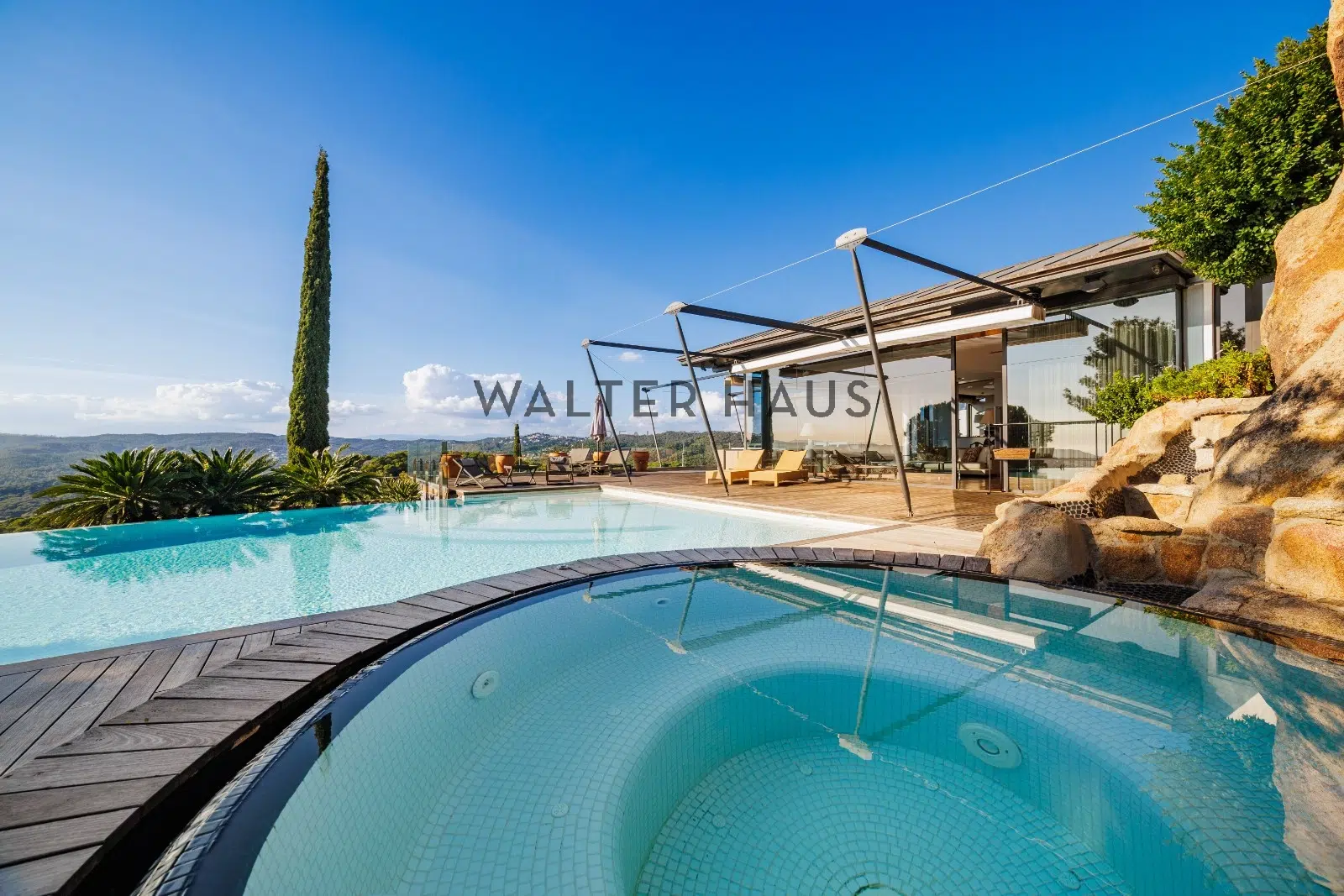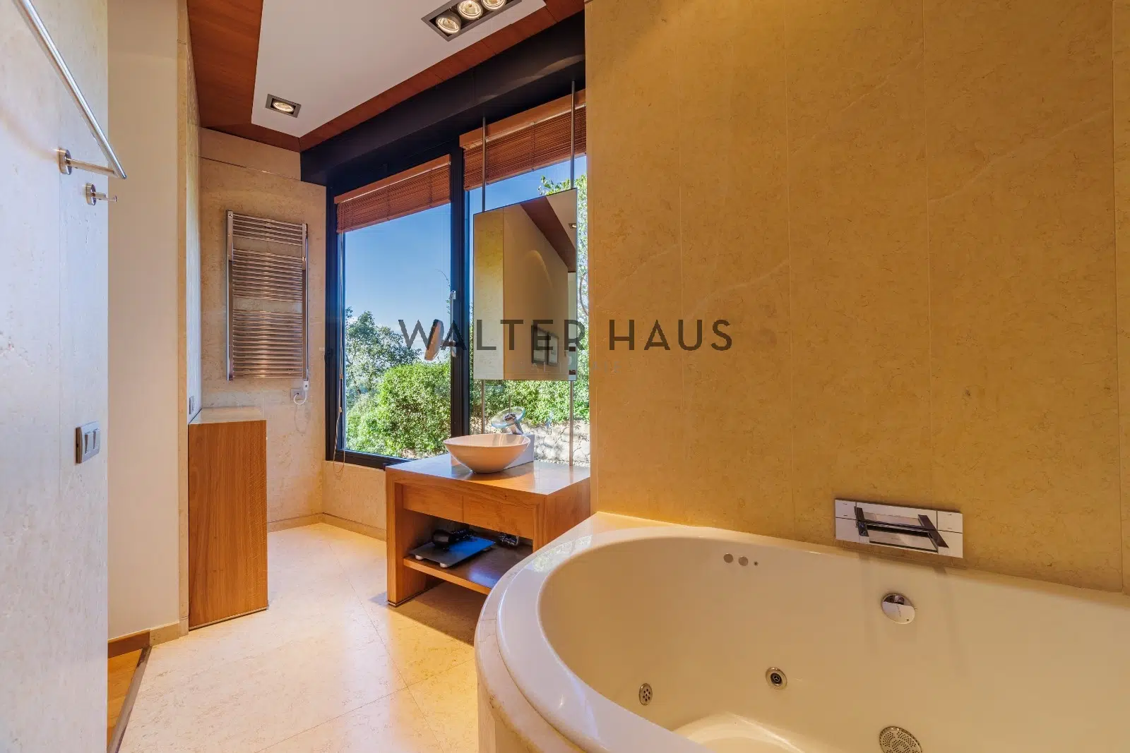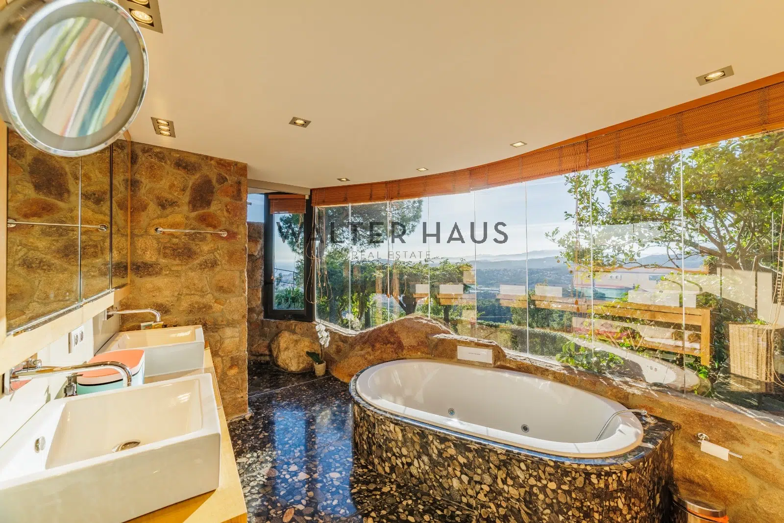 Propietat de 894m2 habitables, construïda i dissenyada per l’arquitecte Francès Erik Morvan. Aquesta residència consta de tres nivells, més un soterrani tècnic i un garatge sobre un terreny de 1950 m2 amb un pendent natural que permet tenir privadesa i les millors vistes de la zona. Gràcies a l’orientació sud garanteix abundant llum natural durant tot el dia, mentre que els acabats i equipaments ofereixen un nivell de confort inigualable a cada racó.