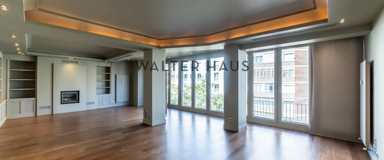 Walter Haus presents this magnificent renovated home for rent, a unique opportunity for those seeking a home in one of Madrid’s most exclusive areas. With a built area of 374 m² on a single floor, this property redefines the concept of urban living. The building, with only one apartment per floor, guarantees maximum privacy, offering a tranquil haven in the heart of the city. Furthermore, convenience is assured with an on-site parking space, a benefit that simplifies daily life in one of the capital’s most sought-after areas.