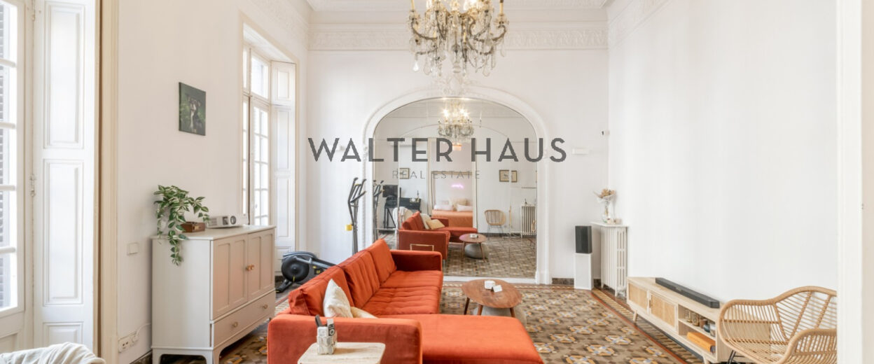 Exclusive 239 m² home in need of renovation, spread over 173.97 m² of living space and a 65.5 m² terrace for exclusive use, located in the Eixample Dreta area in a beautiful stately building.
