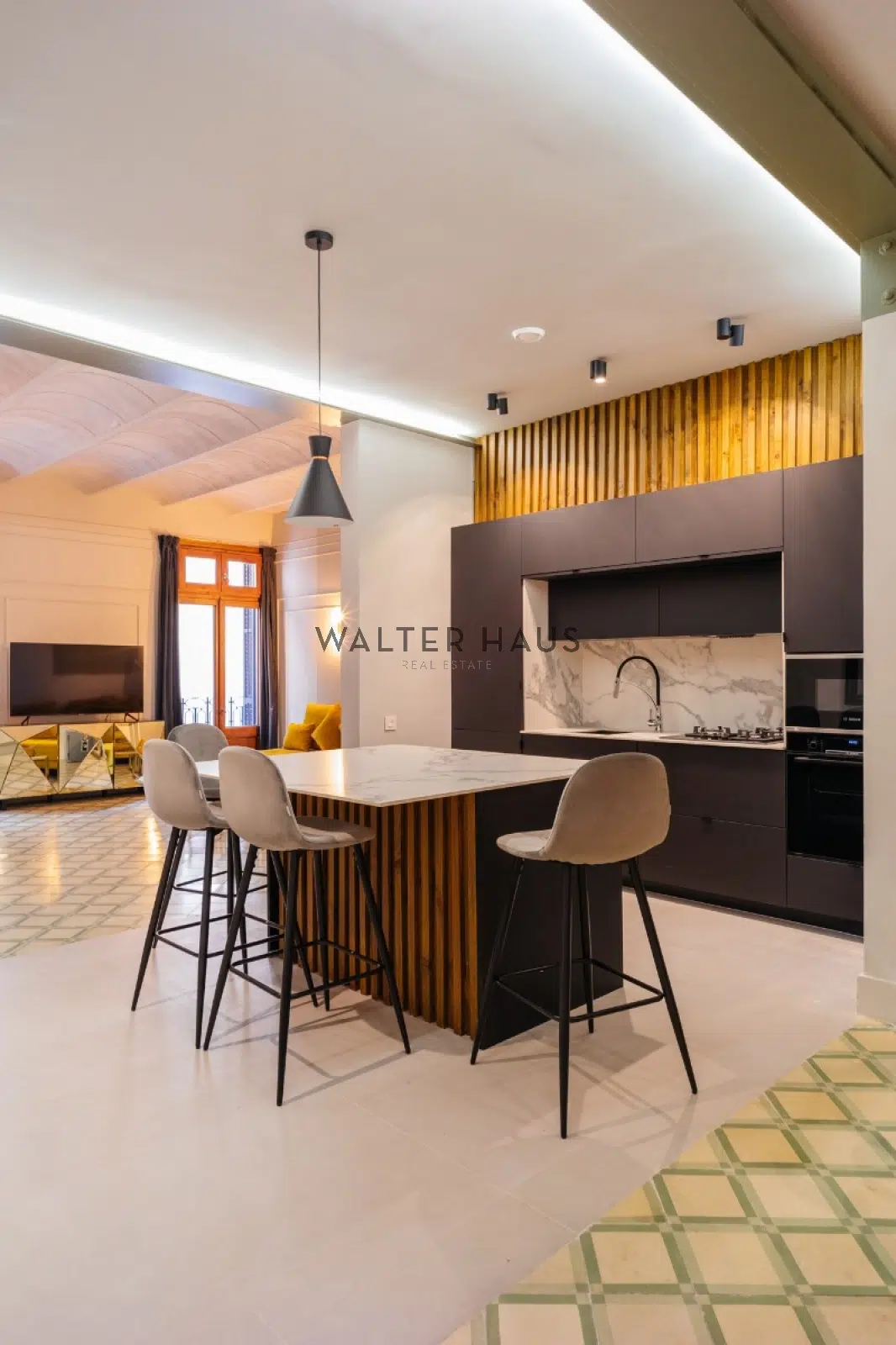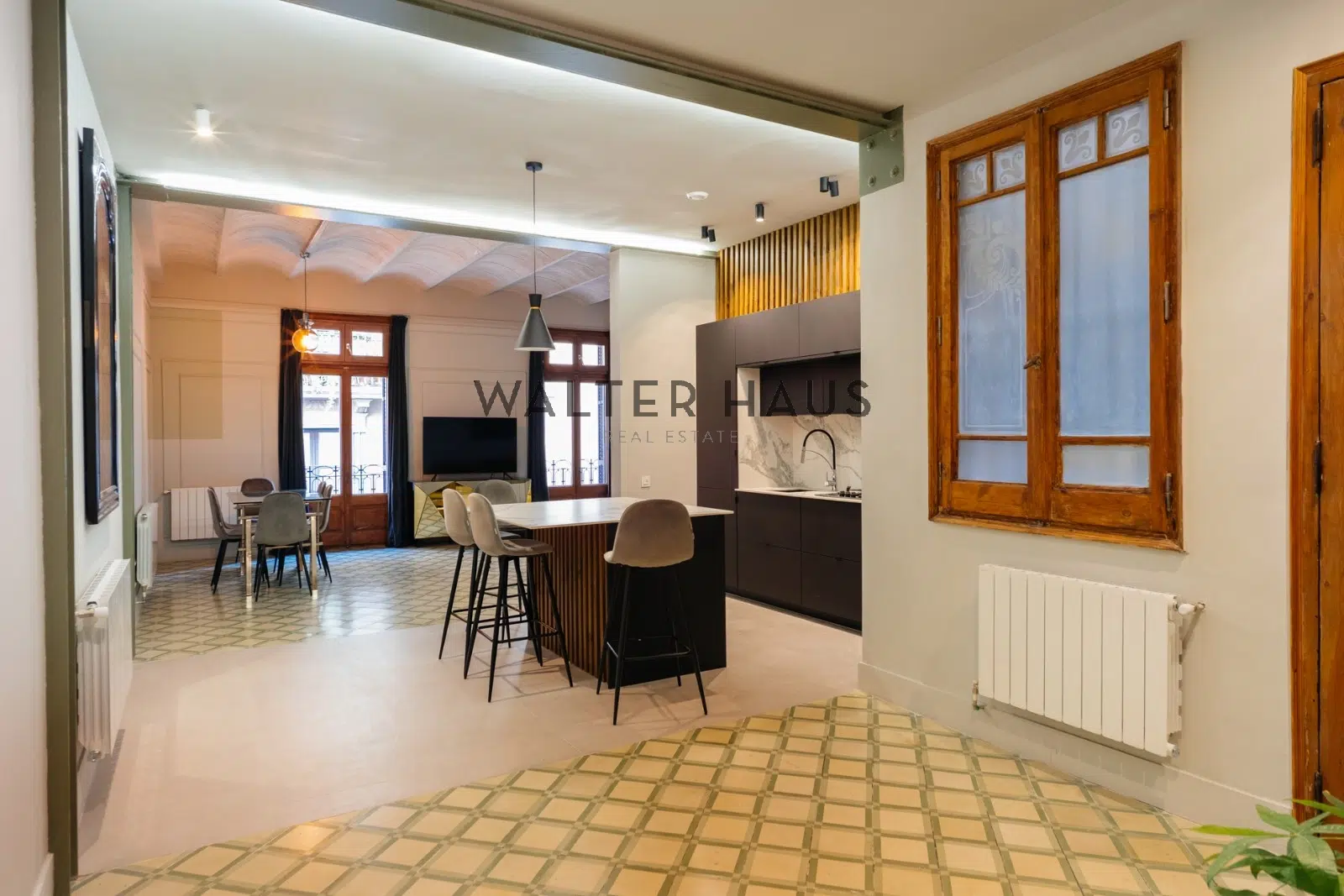 Located in one of the most exclusive streets in the heart of Barcelona, this impressive 123 m² apartment combines functionality and style in a unique environment. Located in a completely renovated 1930’s historic building, this second-floor home preserves the original architectural charm while offering all the conveniences of modern living.