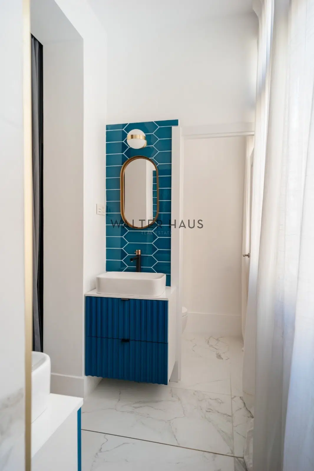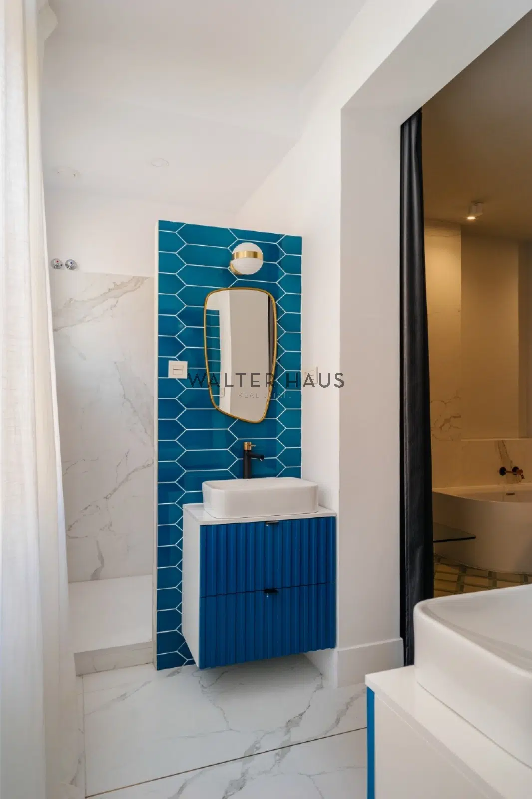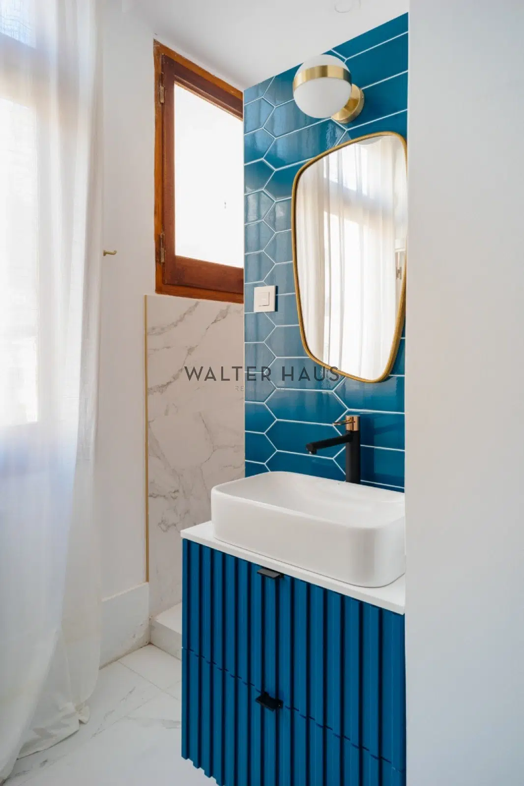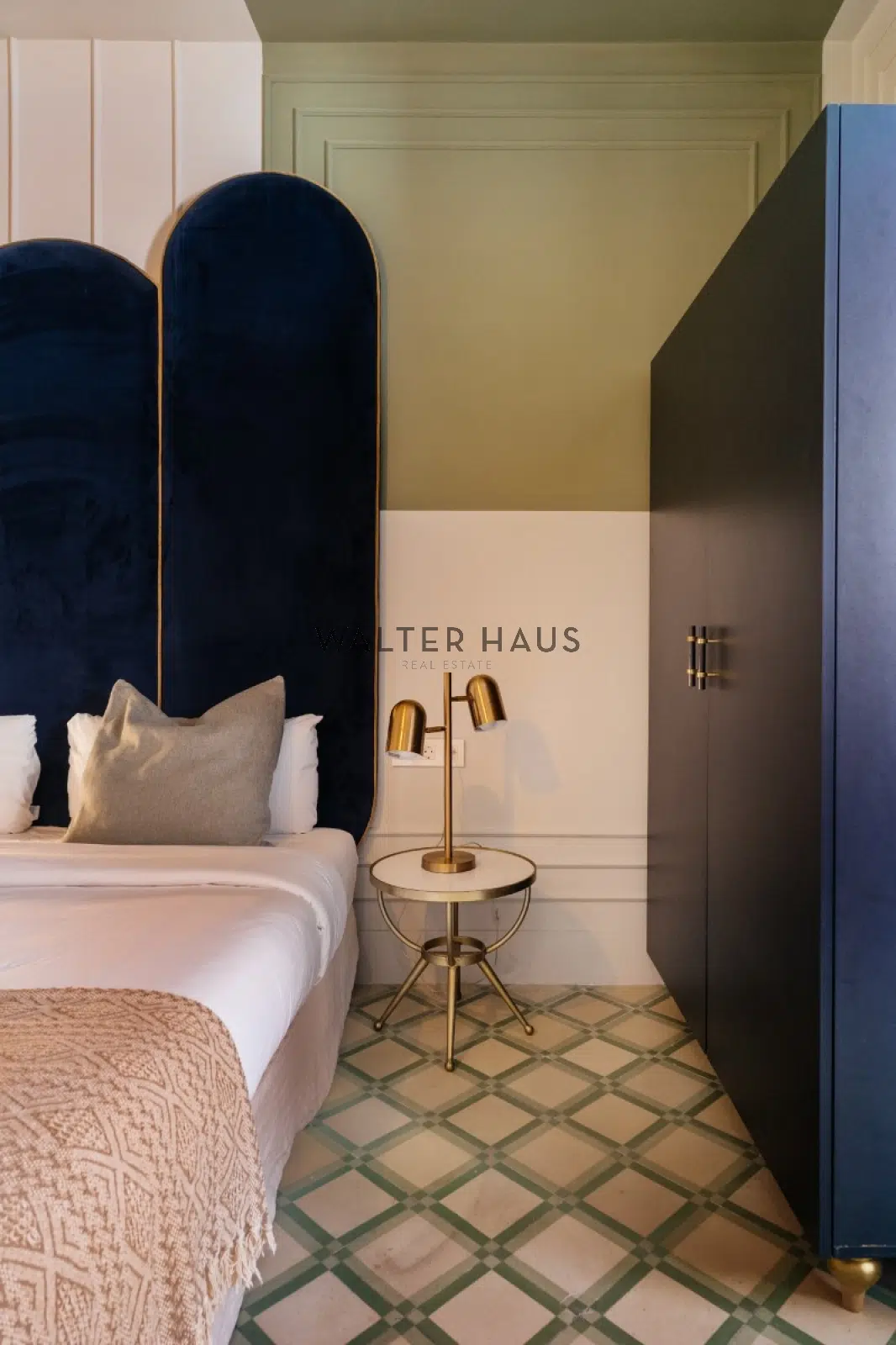 The interior design includes a 30 m² master suite with a private gallery that floods the space with natural light, accompanied by a modern bathroom with a high-quality shower. The distribution is completed with a spacious living room integrated with a contemporary kitchen, ideal for those looking for a comfortable and fluid environment. The large doors with windows provide light and connect with the charming balconies that offer views of the street.