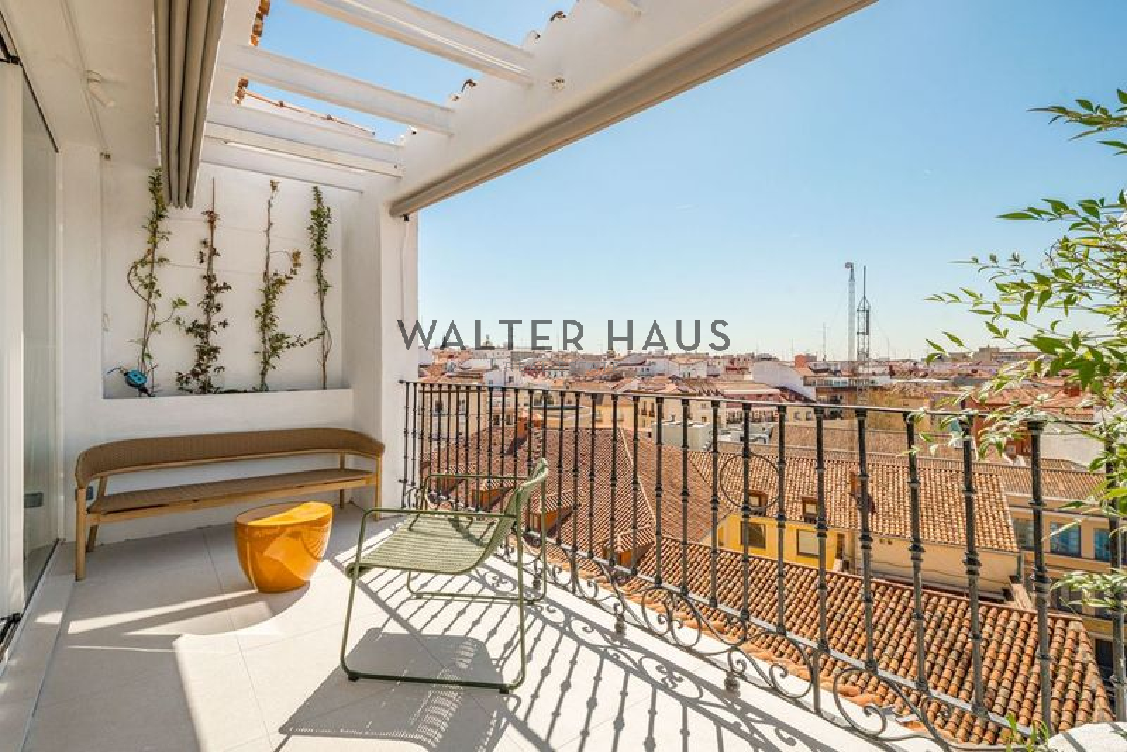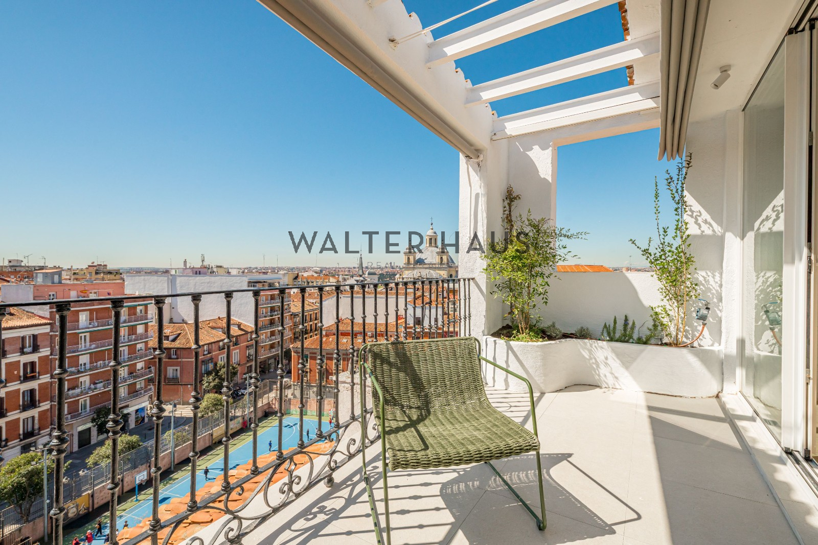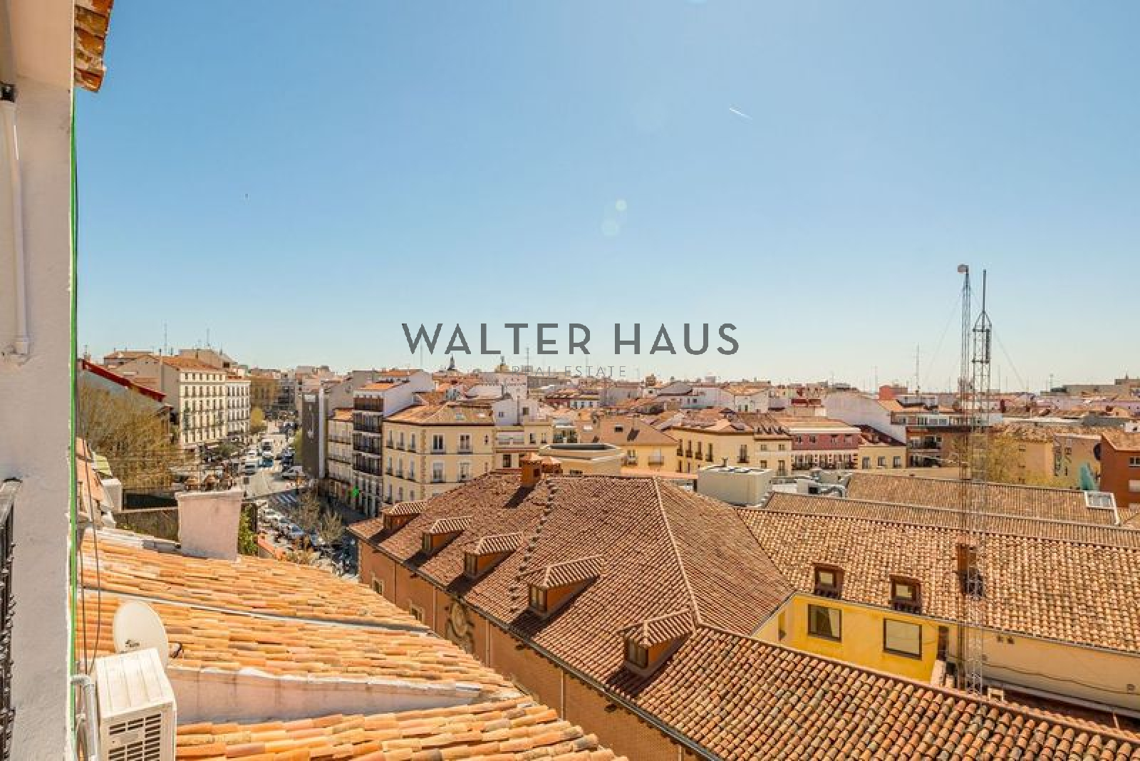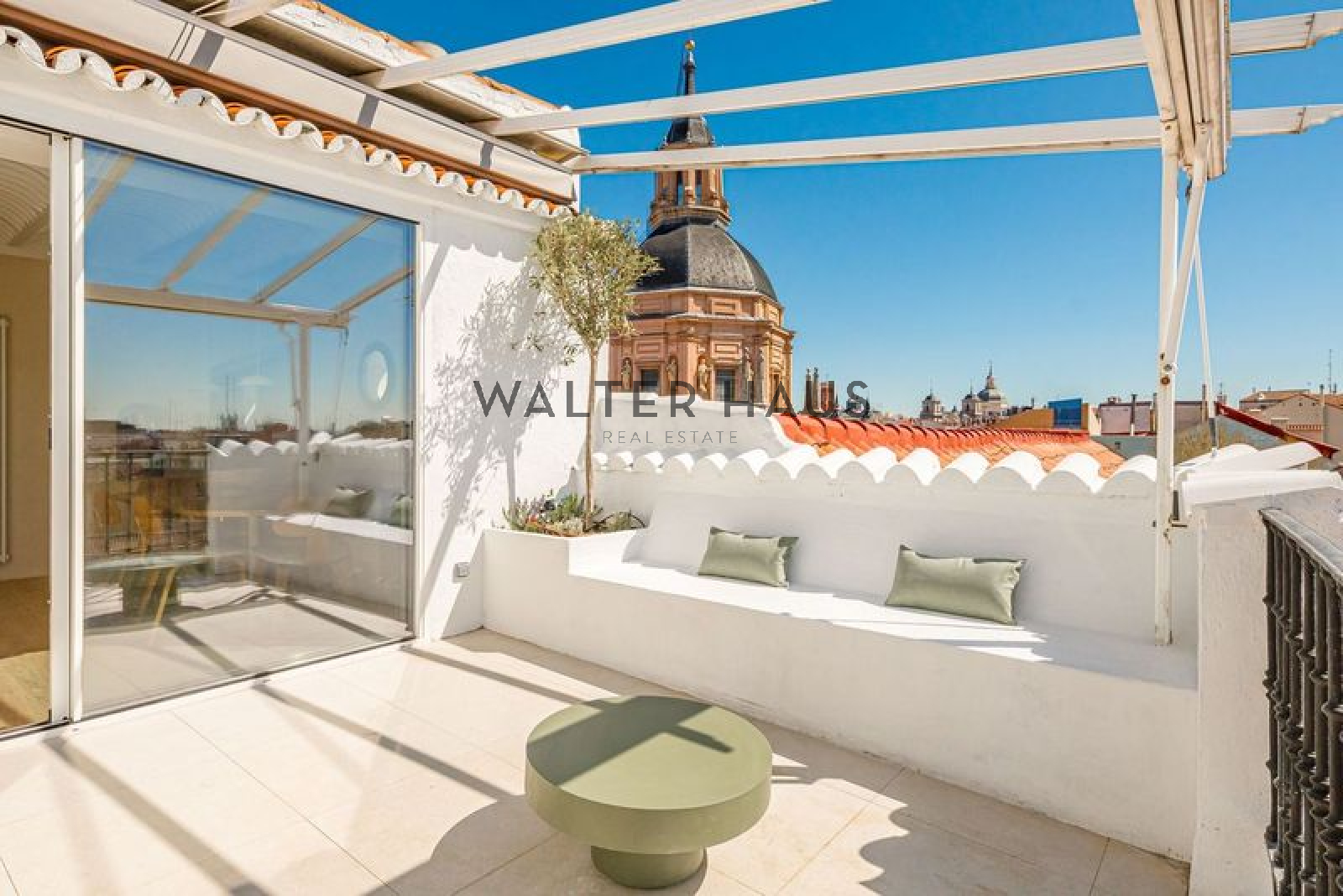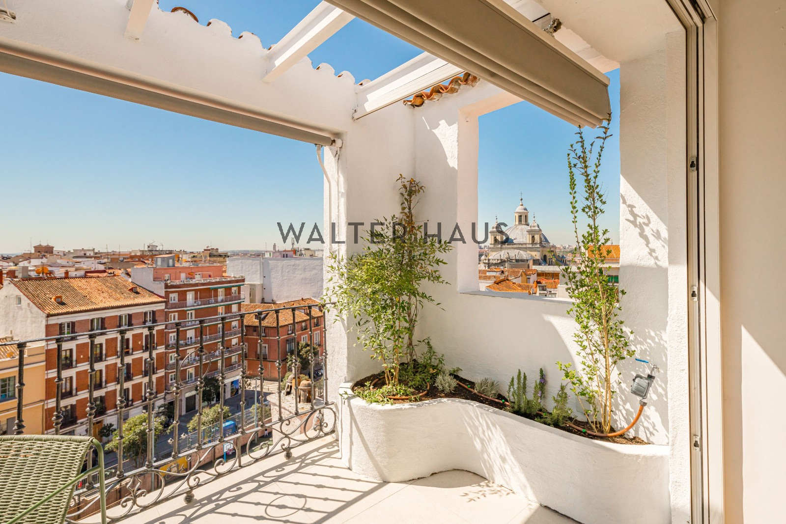 This impressive 305 m² attic is located on the sixth floor of a 1870 historic building, with an emblematic facade that reflects the elegance of classical architecture. The property offers large and bright spaces, with 280 m² of housing and two terraces (14 m² and 11 m²) oriented to the south, which guarantees spectacular views to the roofs of the churches of San Andrés and San Francisco el Grande.