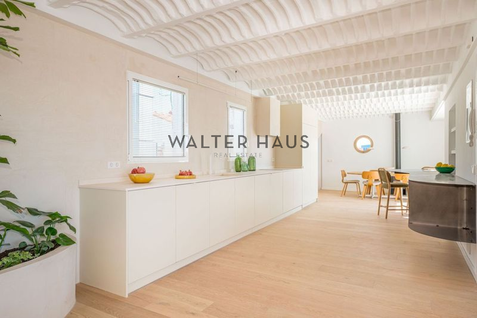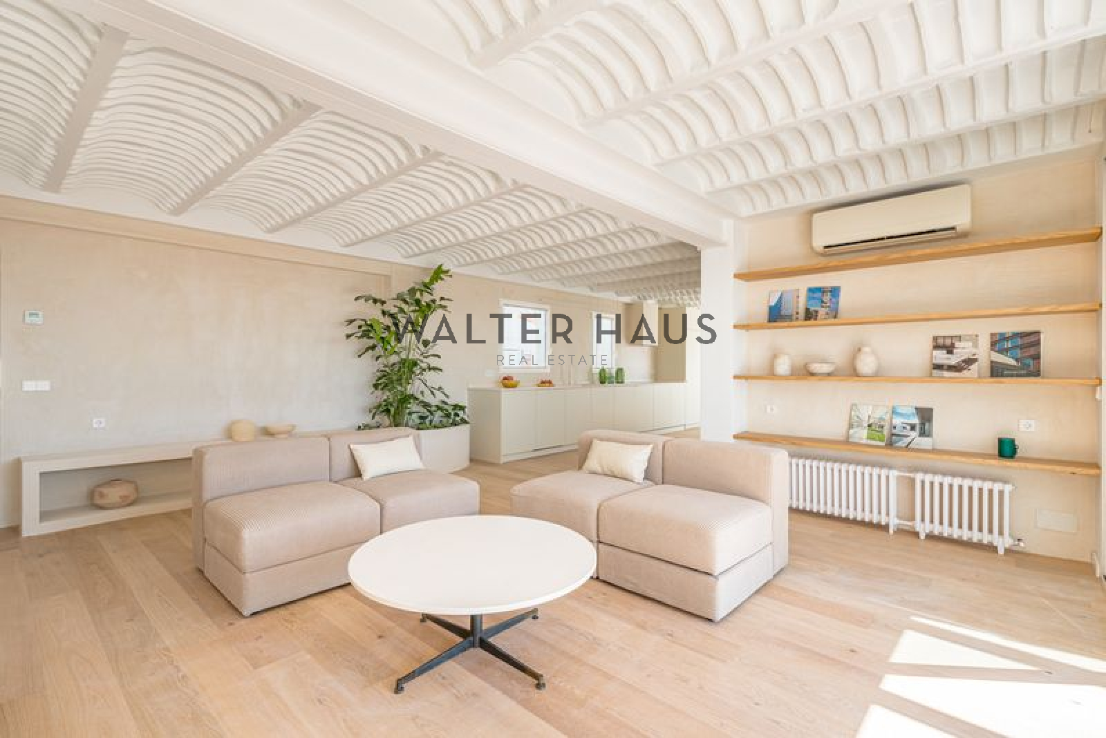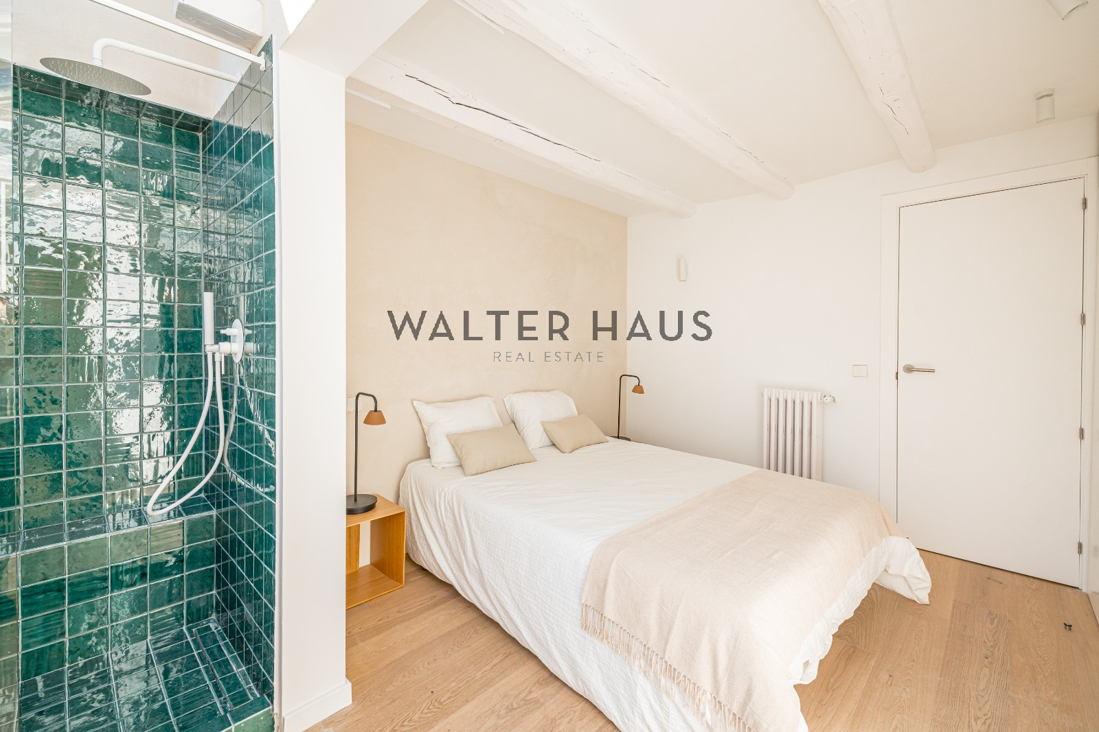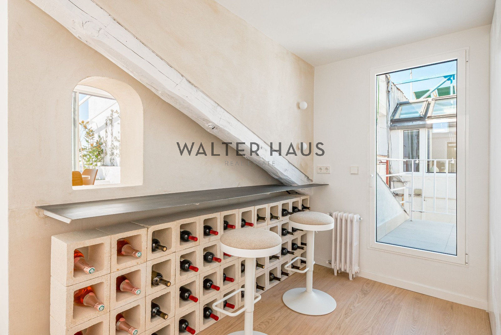 The distribution of this attic has been thought to offer comfort and functionality. The day zone, with vaulted ceilings in the style of the Catalan vault, is perfectly integrated with the night area, which has bedrooms of smooth and abuhardillated roofs. This styles contrast adds character and warmth to the spaces. The house consists of 4 bedrooms and 5 bathrooms, which makes it an ideal option for both families and for those looking for amplitude and privacy. In addition, it has an integrated greenhouse, creating a small oasis of peace in the heart of the city.