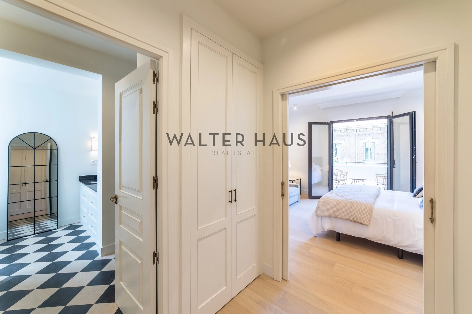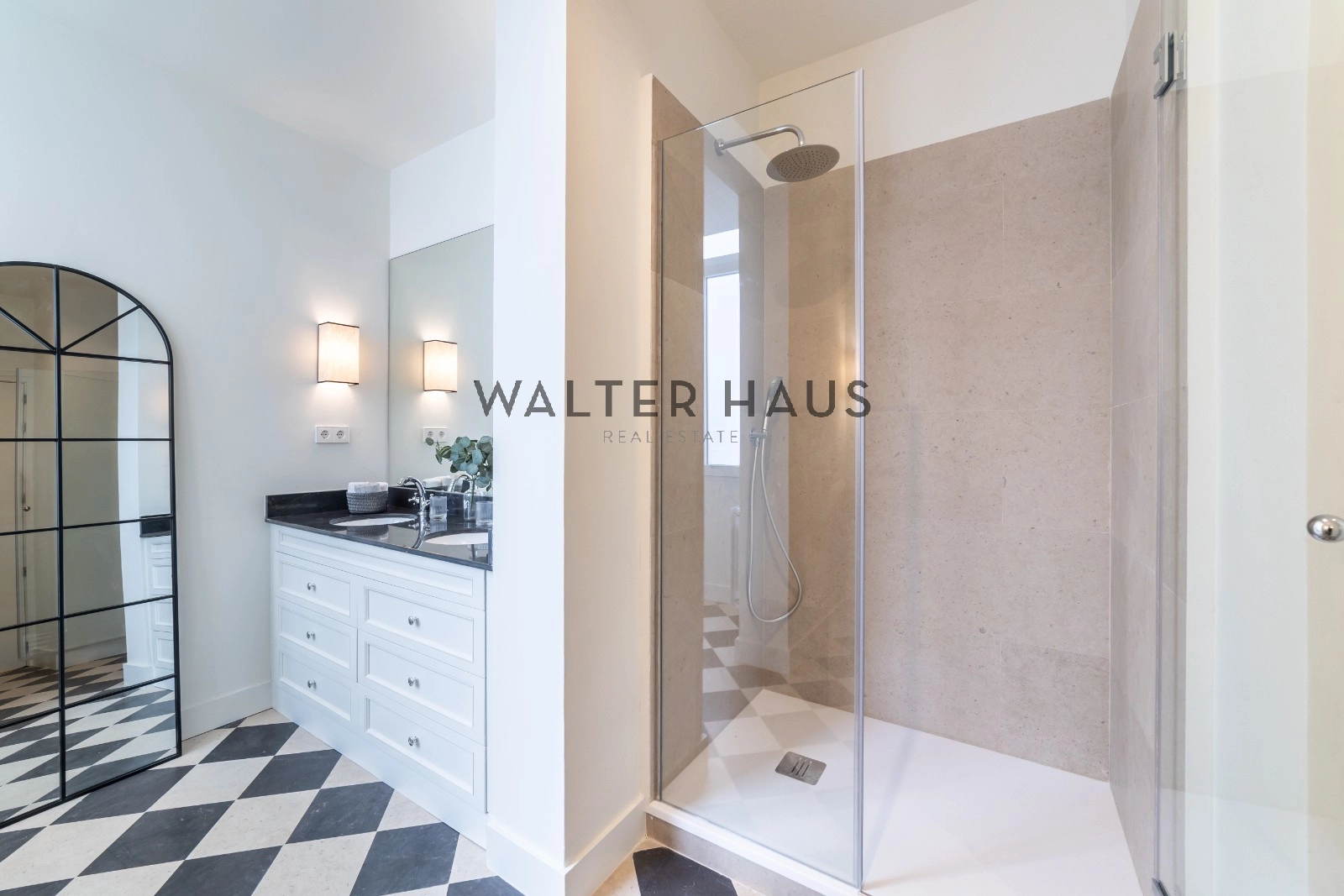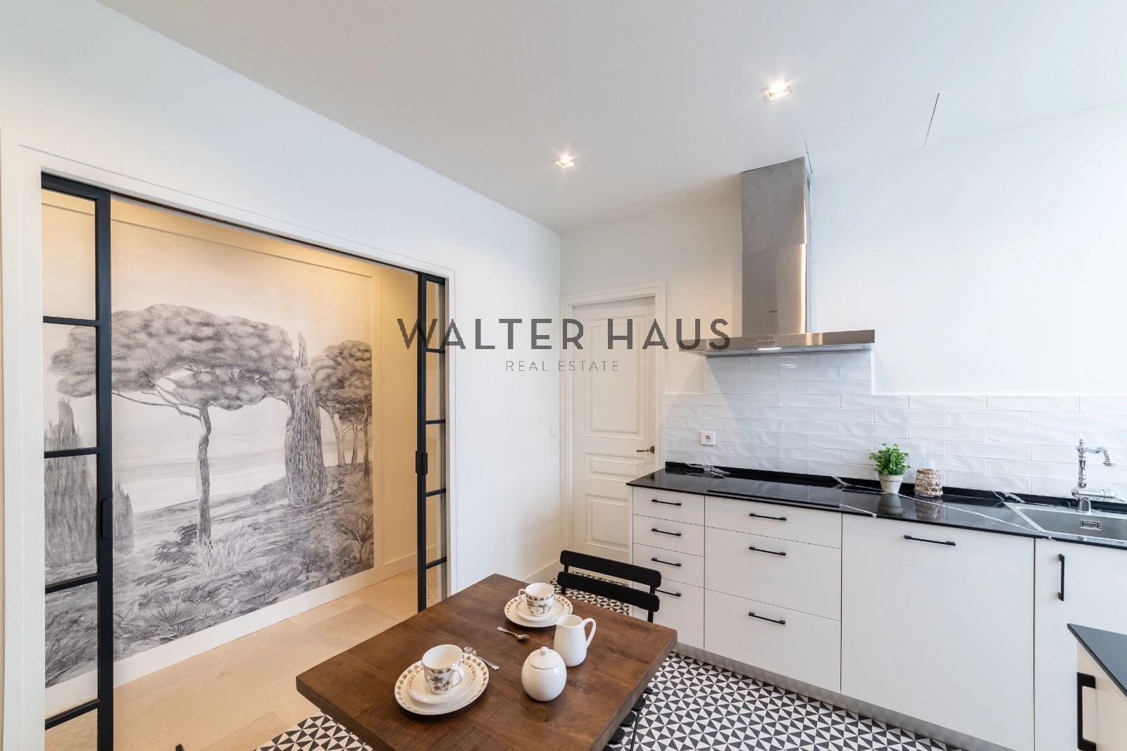 WALTER HAUS is pleased to present this spectacular, brand-new, fully renovated apartment located on the third floor of a protected 1948 stately building. An architectural gem that blends classic elegance with modernity, it retains original details in both the entrance hall and the apartment itself, enhancing its unique character.