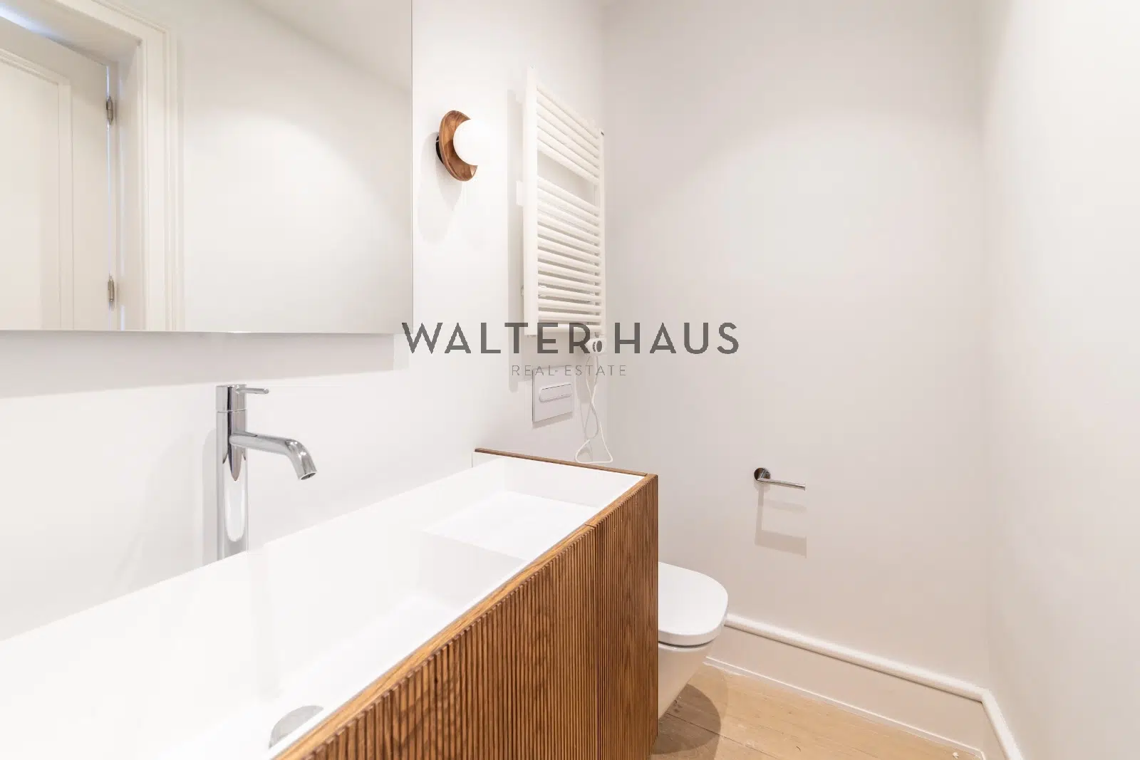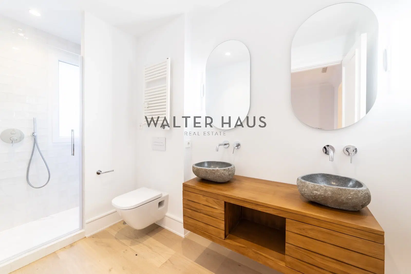 The apartment is currently presented with a planned layout of two bedrooms and three bathrooms, although there is also the possibility of configuring three bedrooms, three bathrooms, and a guest toilet. The flexible design allows it to be adapted to different family or investment needs. The property can be purchased in its current state of renovation or fully renovated, according to the buyer’s preferences.