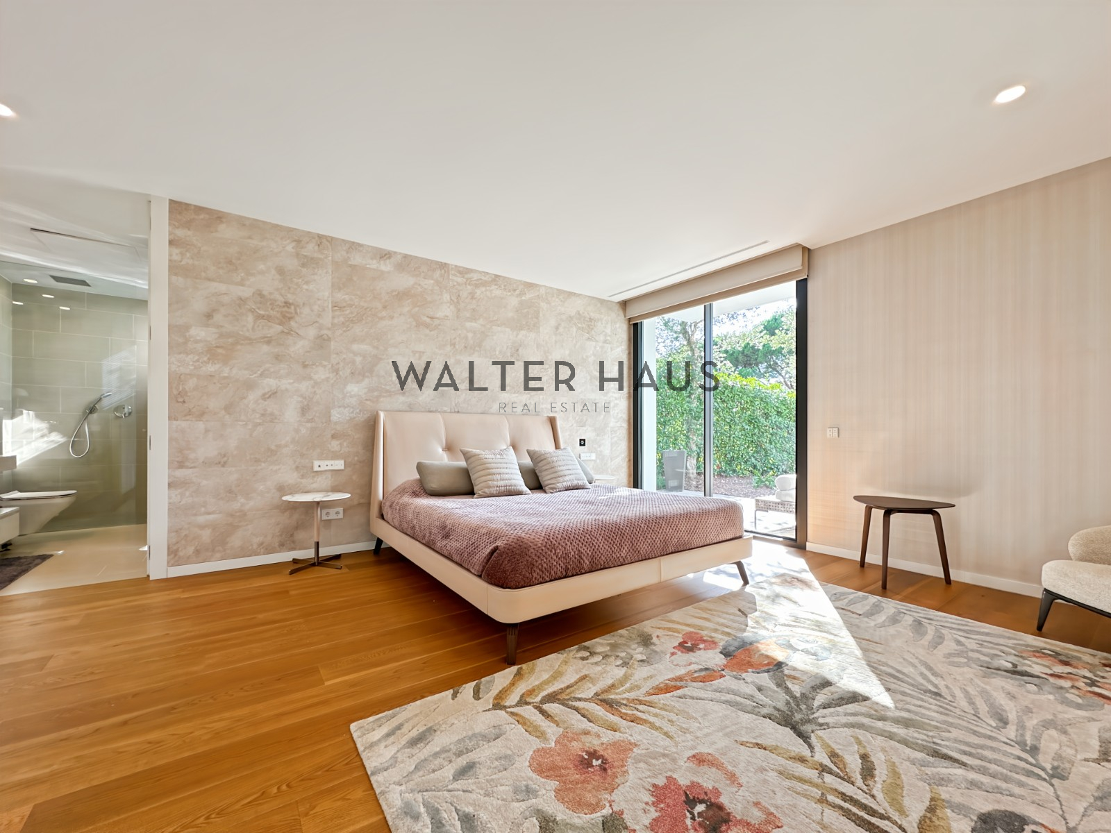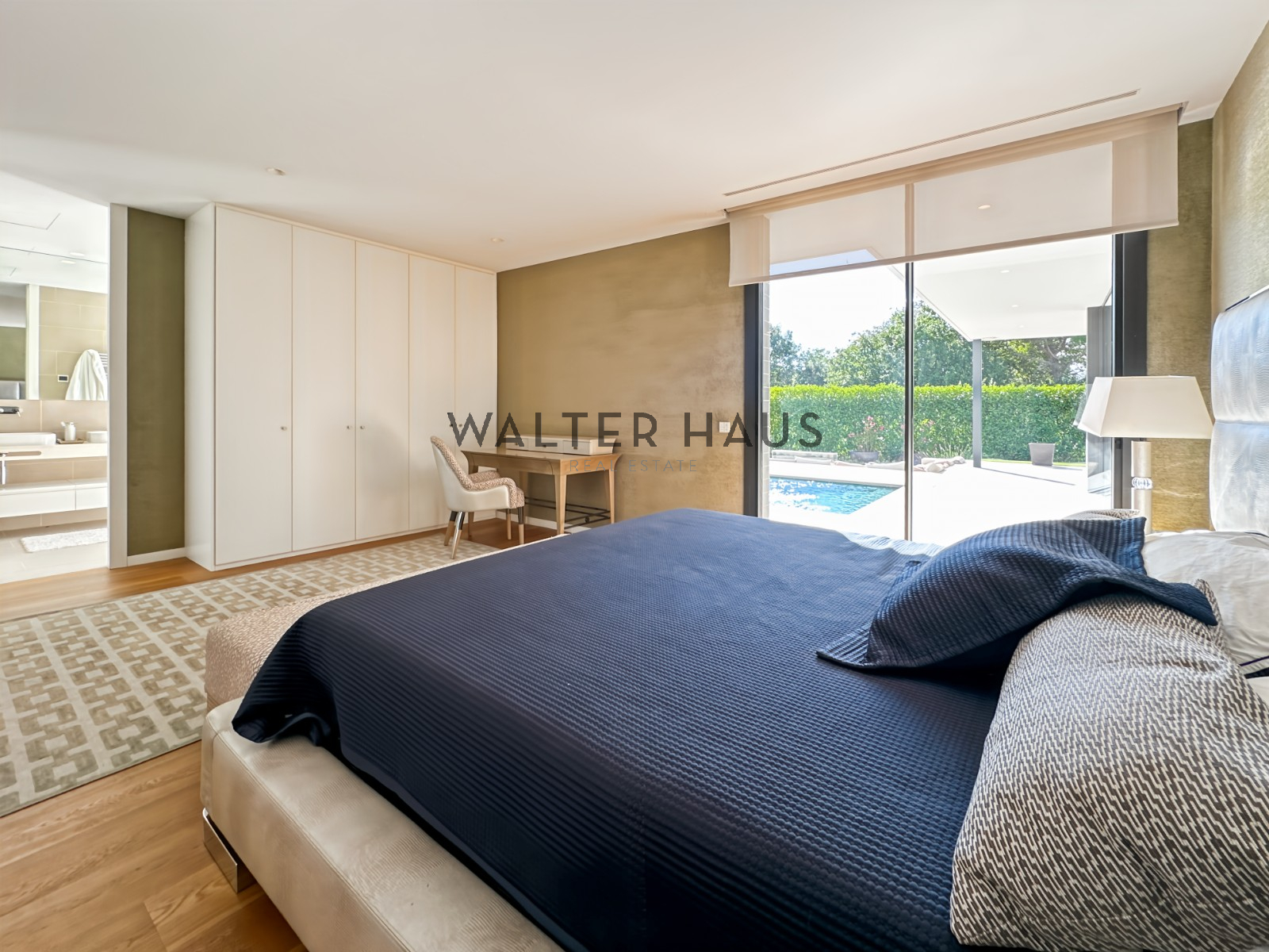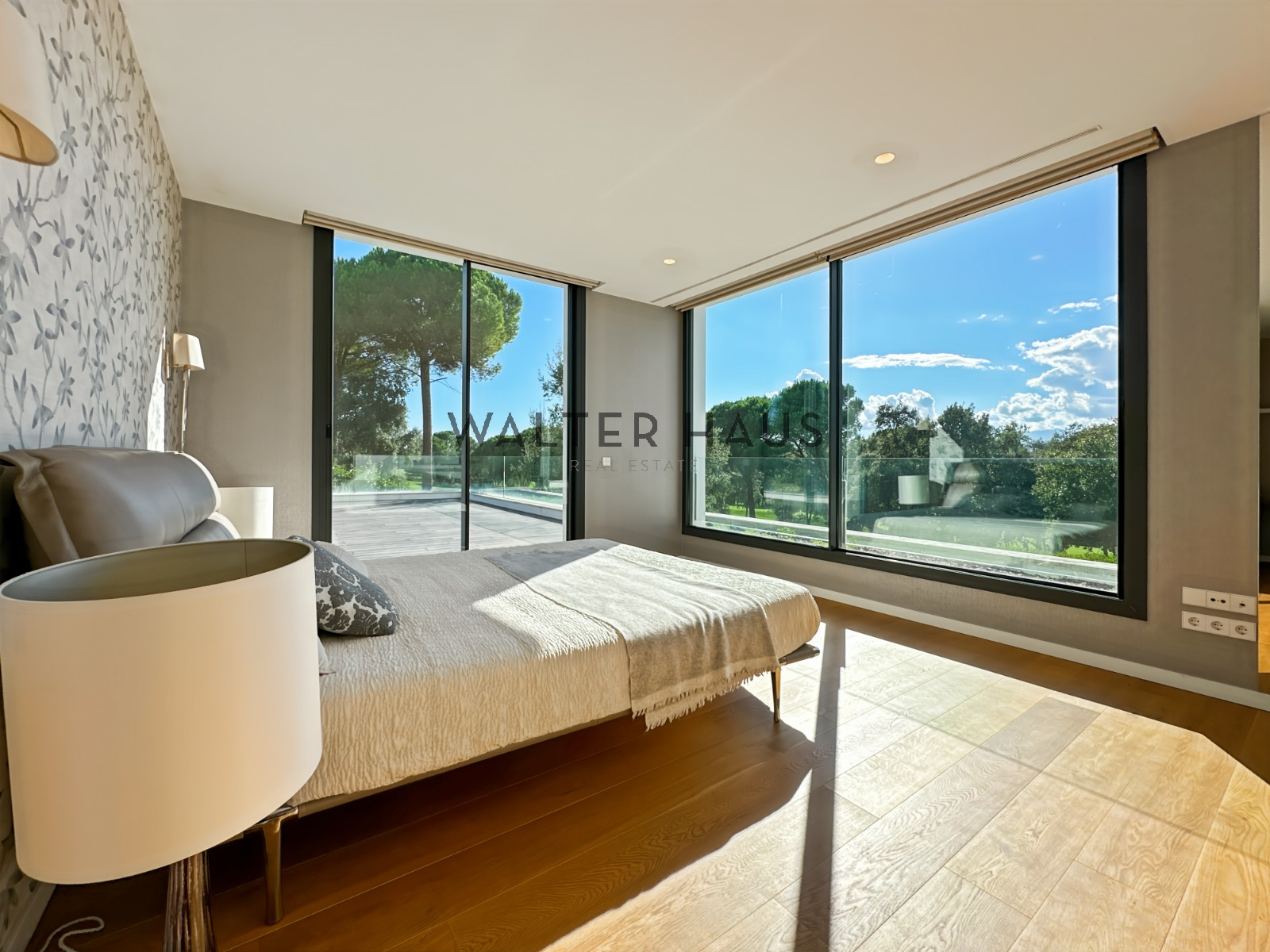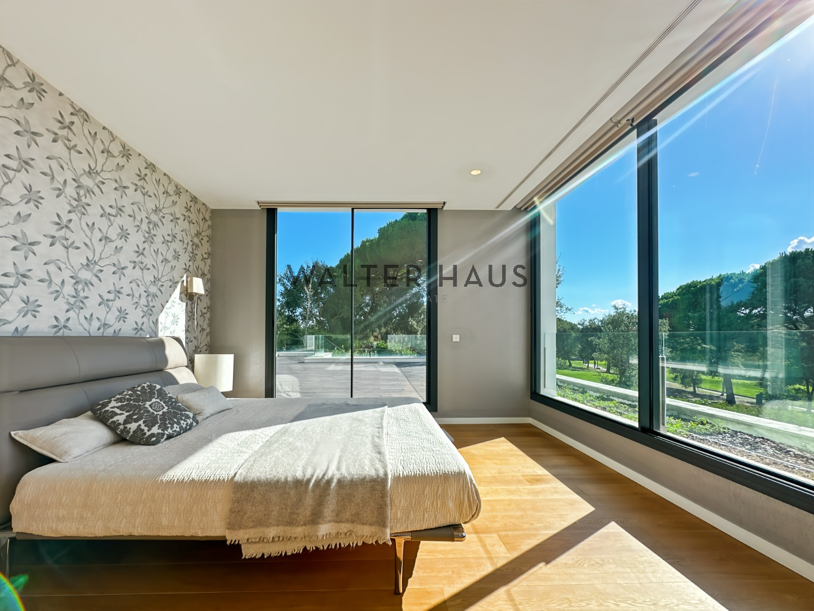 From the main entrance, located on the first floor, you access the master bedroom with direct access to the garden and views of the golf course.
