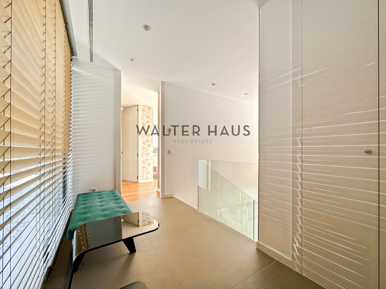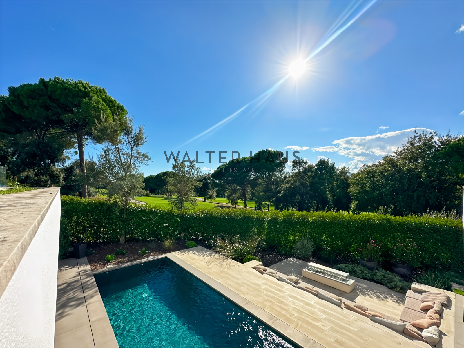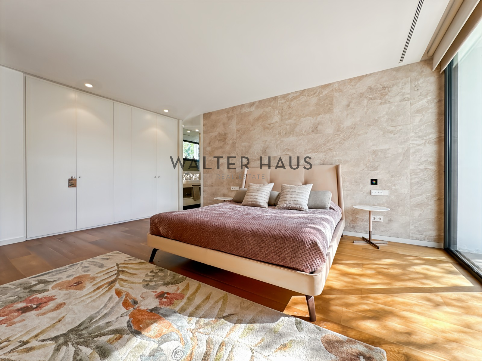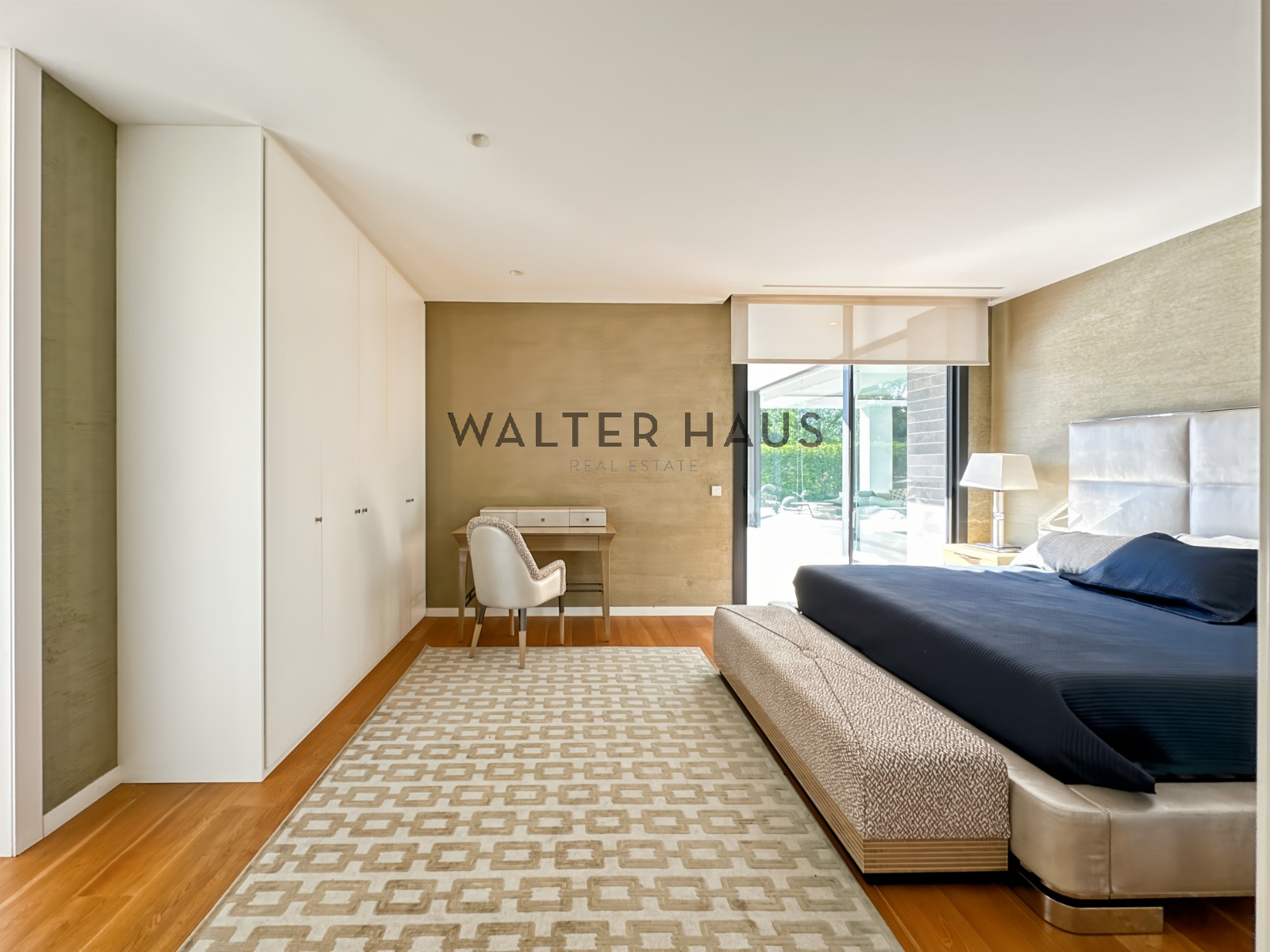 From the main entrance, located on the first floor, you access the master bedroom with direct access to the garden and views of the golf course.