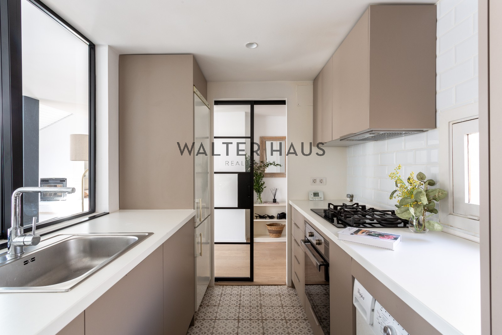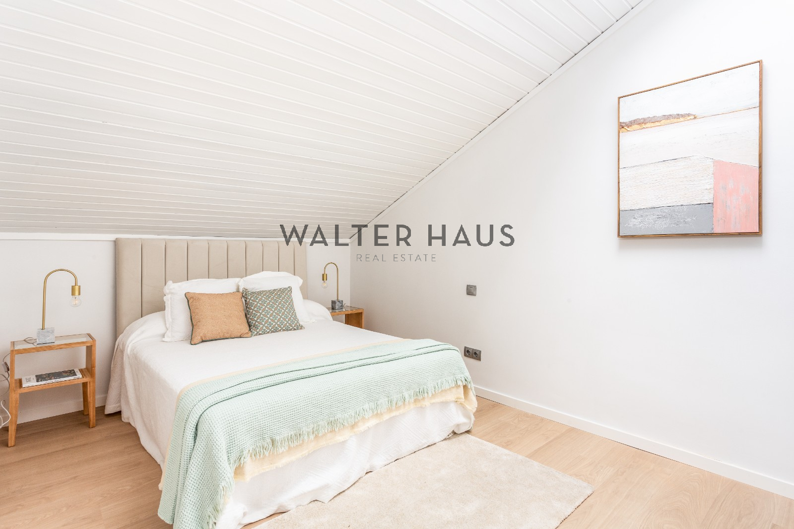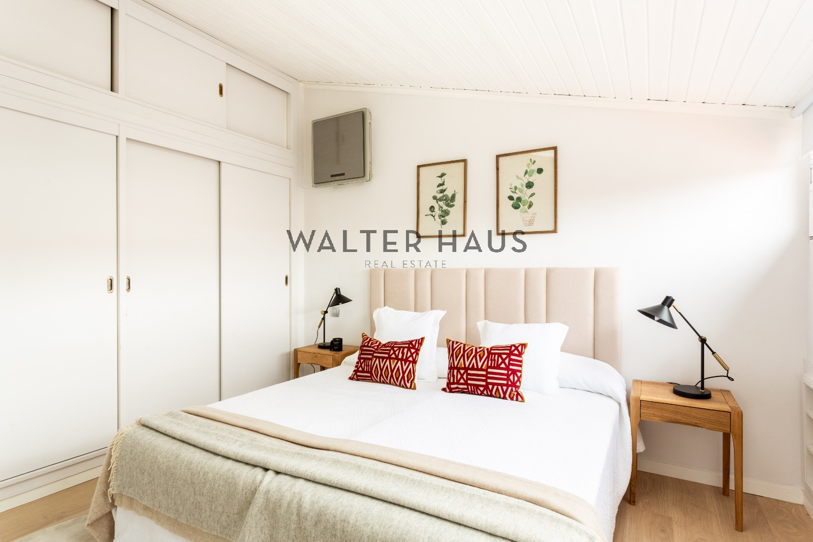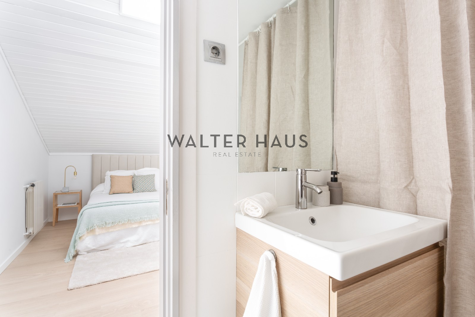 The home has two bedrooms, both with en suite bathrooms, ensuring privacy and comfort. It also has a separate kitchen fully equipped with top-brand appliances: refrigerator, oven, dishwasher, washing machine, dryer, and natural gas stove. An additional space on the upper floor is perfectly suited as an office or relaxation area. It includes air conditioning in all rooms and individual natural gas heating with its own boiler.