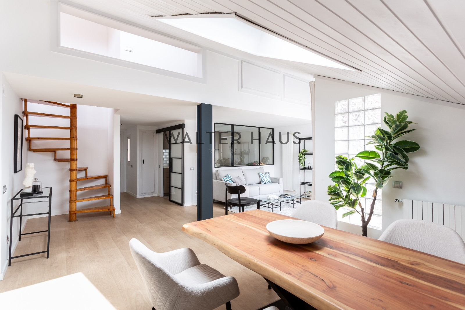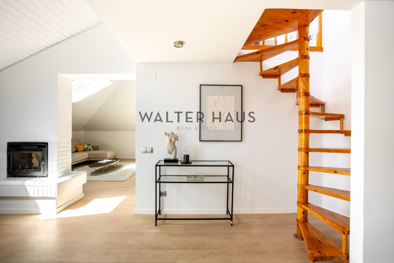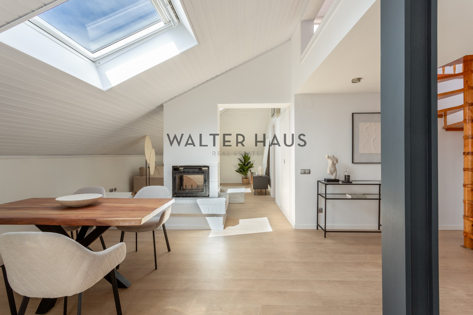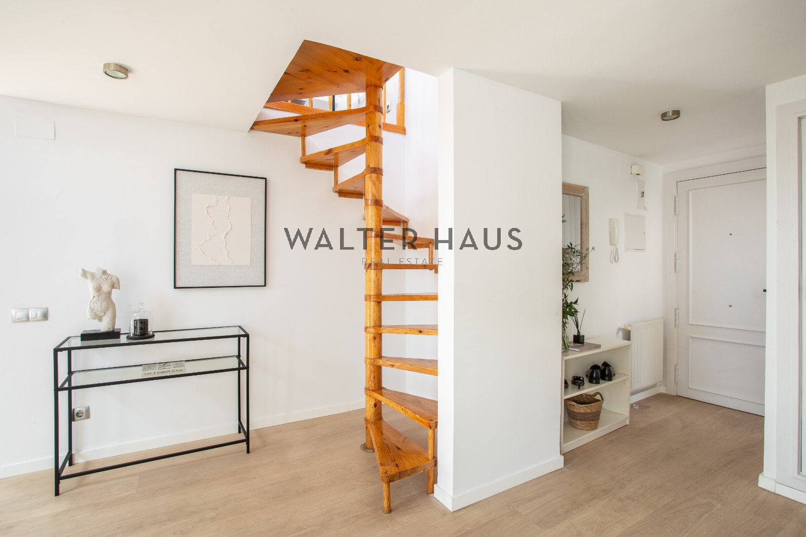 Unique duplex penthouse for sale in the heart of the Justicia neighborhood, Madrid, with a constructed area of 116 m². Distributed over two floors, this home offers a warm and functional atmosphere, ideal for both living and investing. The property stands out for its sloping ceilings and charming wood-burning fireplace, which adds character to the main living room with direct access to an outdoor terrace, perfect for taking advantage of sunny days in the capital.