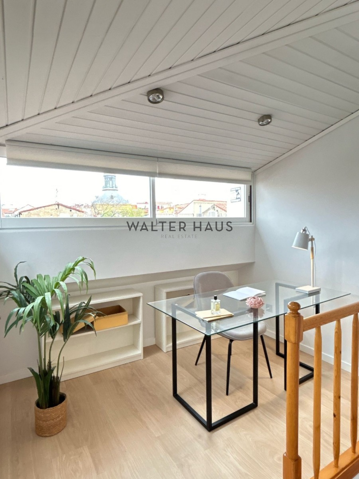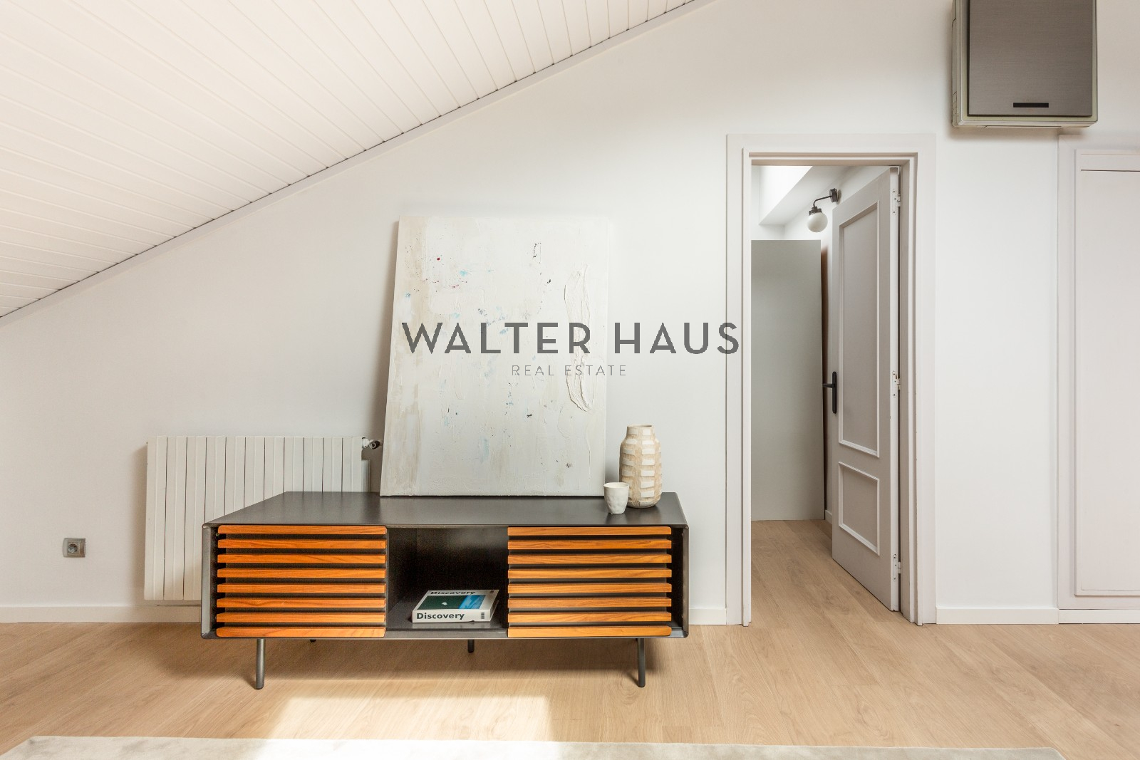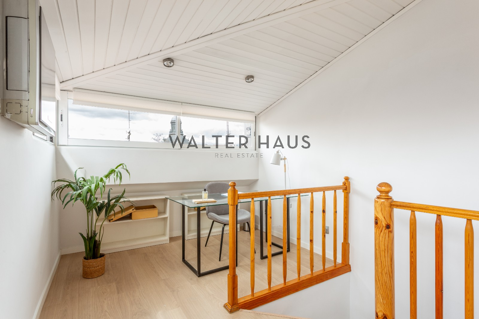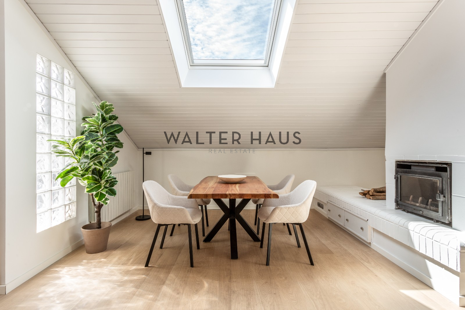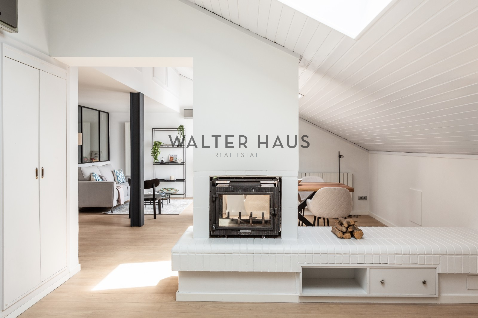 Unique duplex penthouse for sale in the heart of the Justicia neighborhood, Madrid, with a constructed area of 116 m². Distributed over two floors, this home offers a warm and functional atmosphere, ideal for both living and investing. The property stands out for its sloping ceilings and charming wood-burning fireplace, which adds character to the main living room with direct access to an outdoor terrace, perfect for taking advantage of sunny days in the capital.