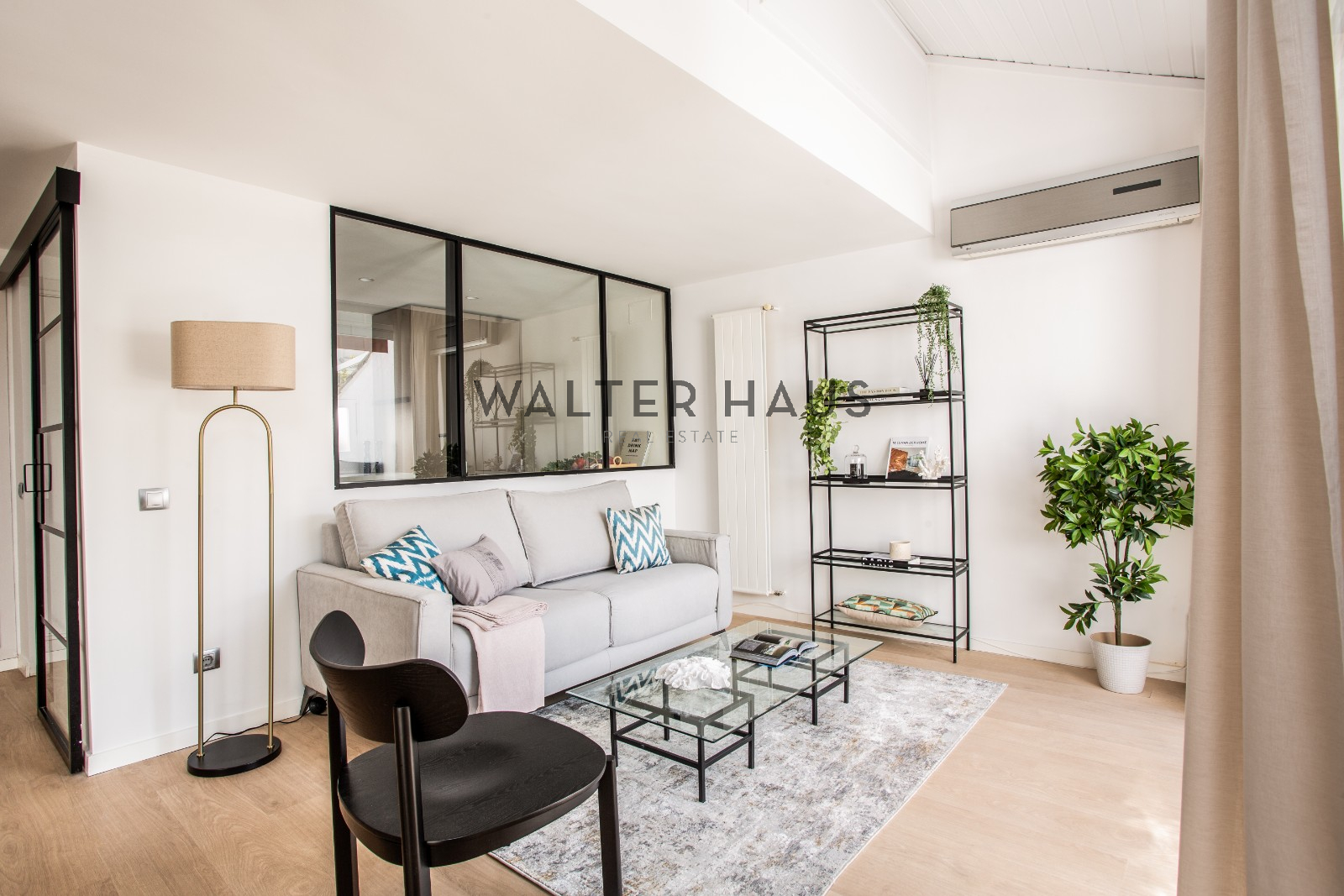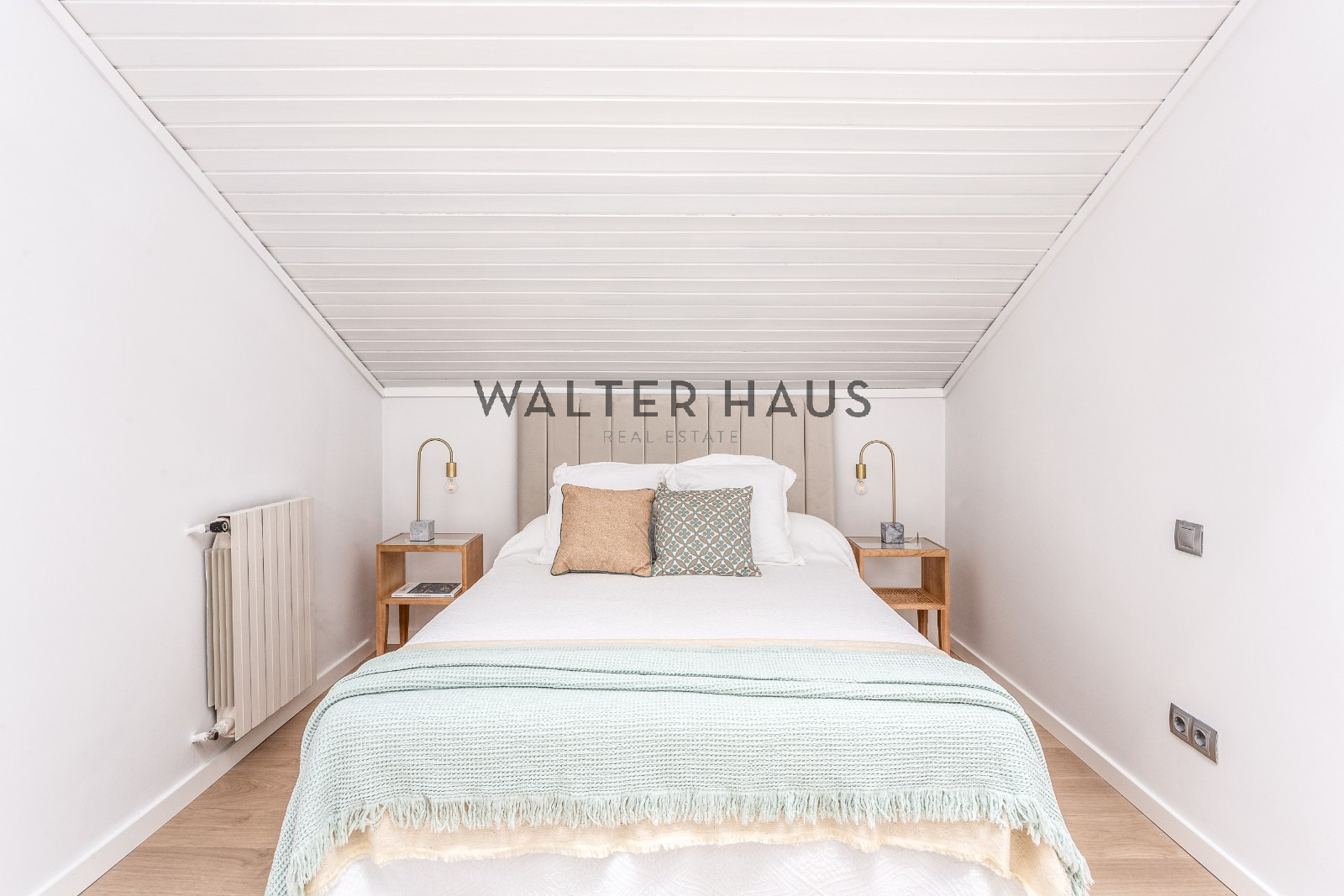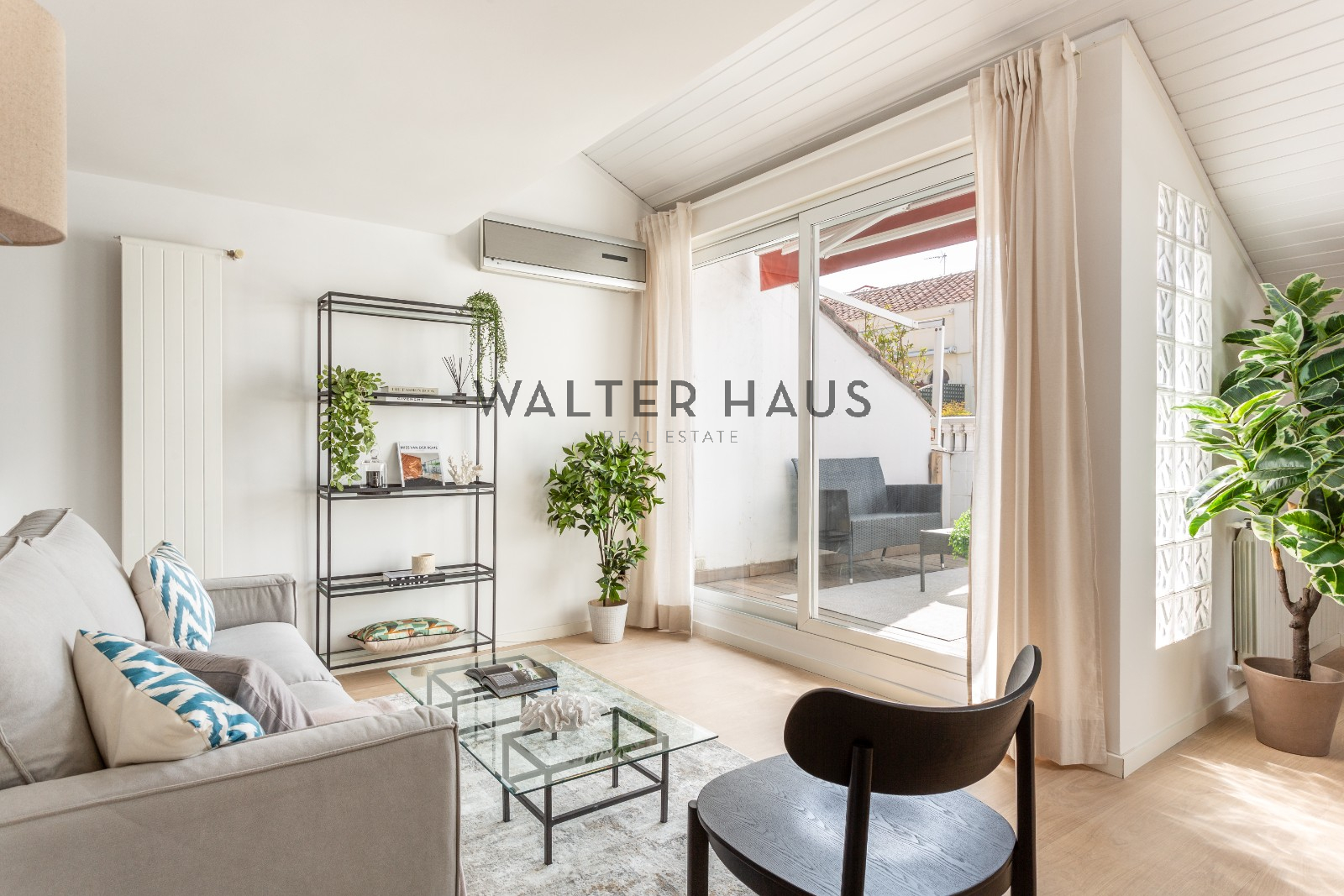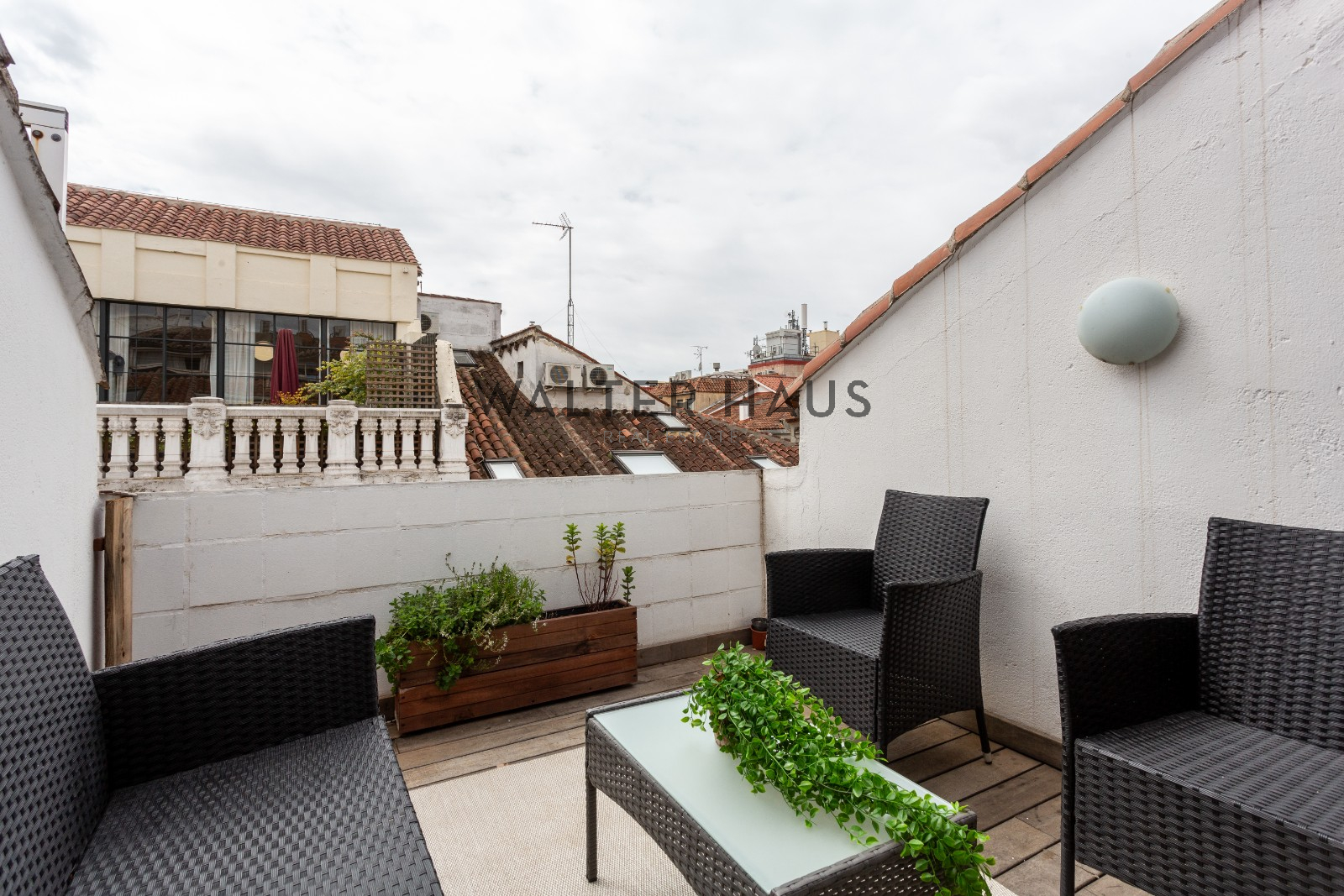 Unique duplex penthouse for sale in the heart of the Justicia neighborhood, Madrid, with a constructed area of 116 m². Distributed over two floors, this home offers a warm and functional atmosphere, ideal for both living and investing. The property stands out for its sloping ceilings and charming wood-burning fireplace, which adds character to the main living room with direct access to an outdoor terrace, perfect for taking advantage of sunny days in the capital.