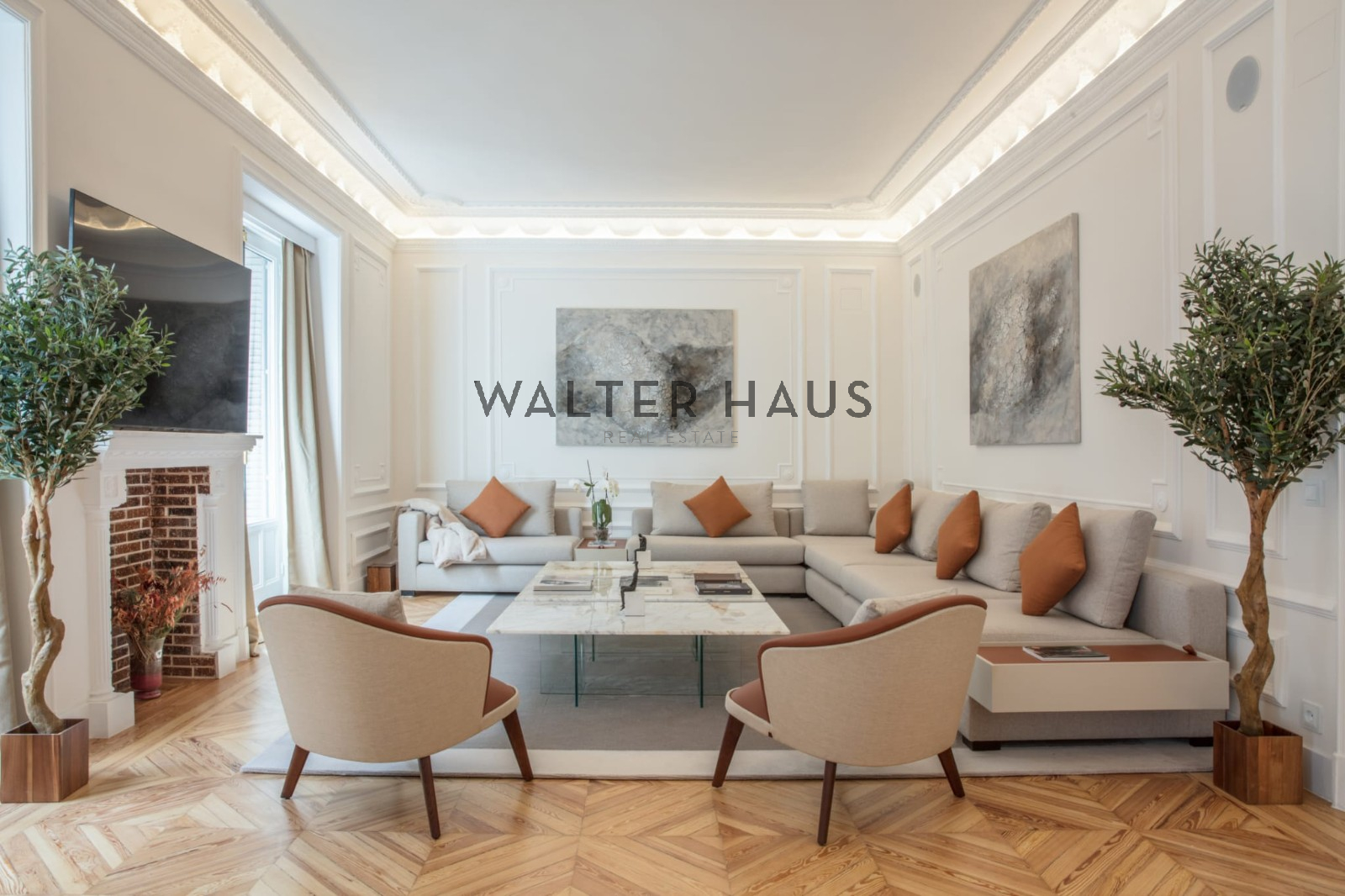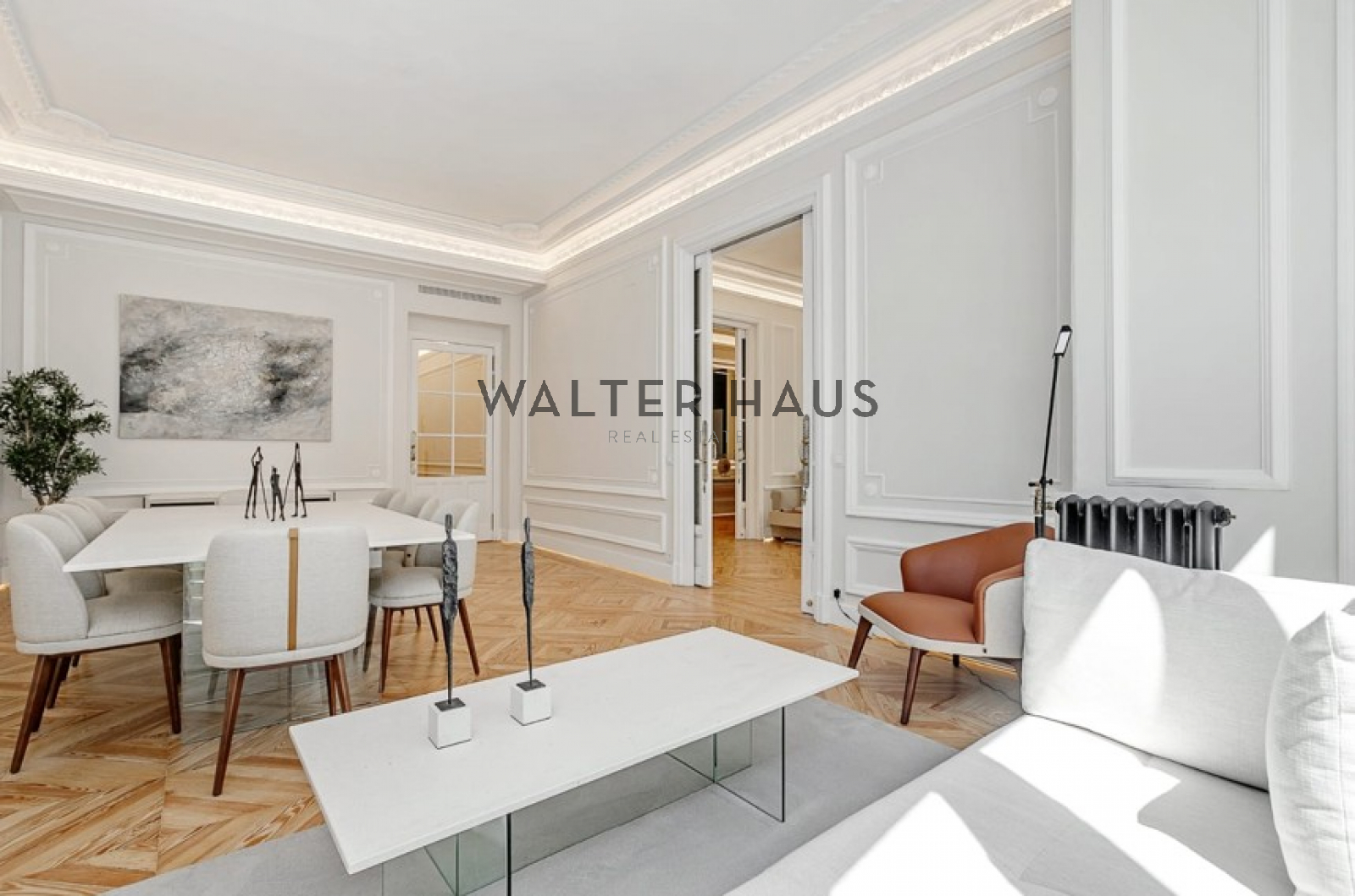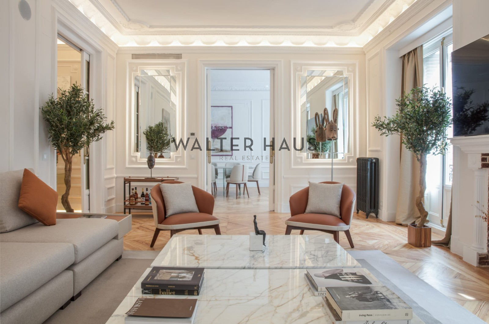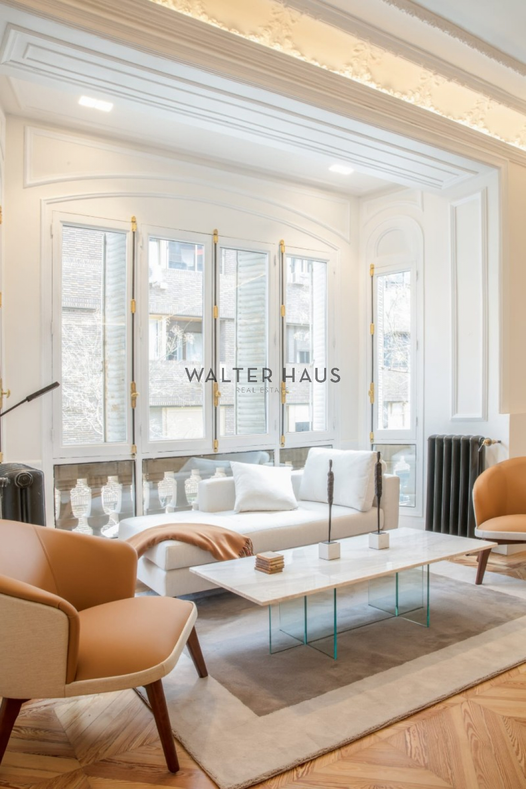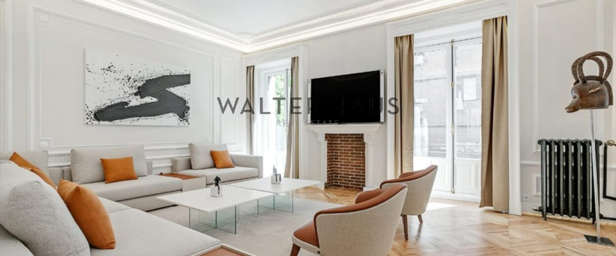 Elegant furnished apartment with excellent quality, in a representative classic building in Almagro, Madrid.