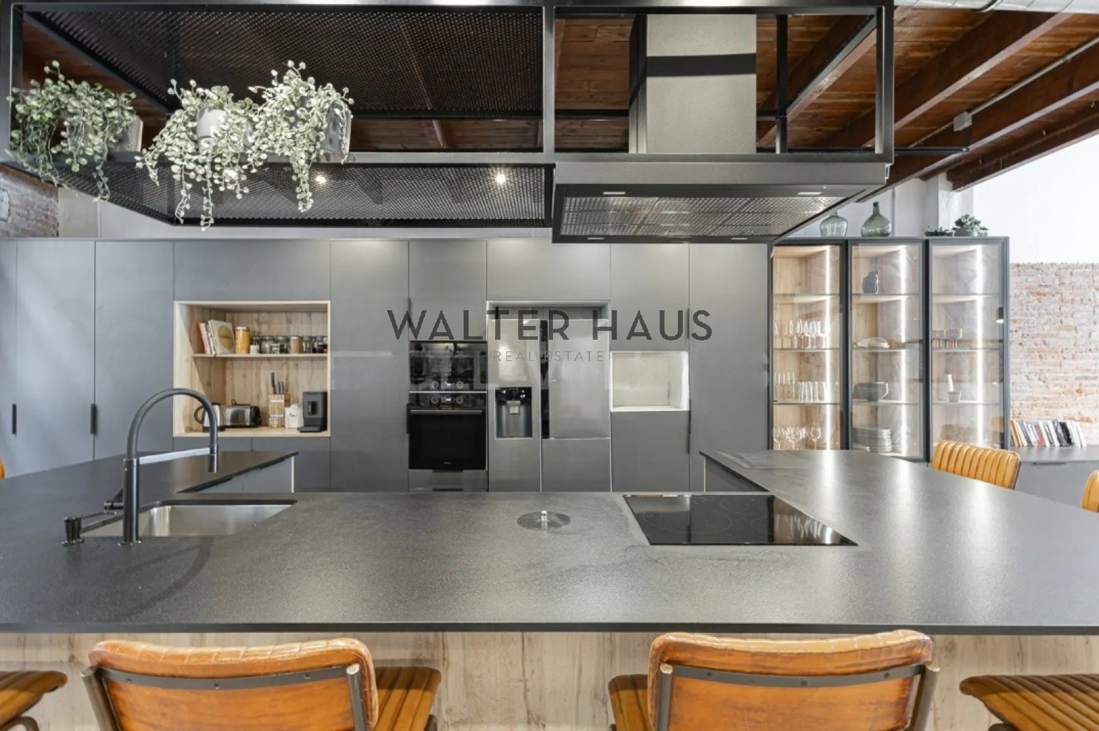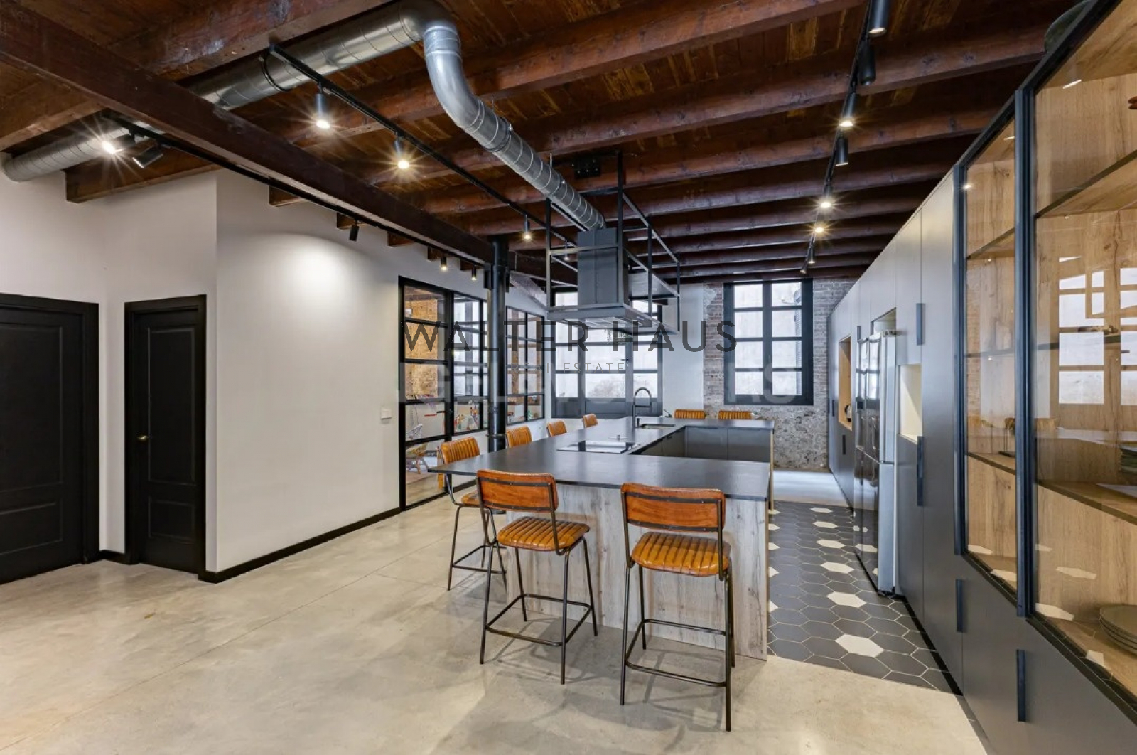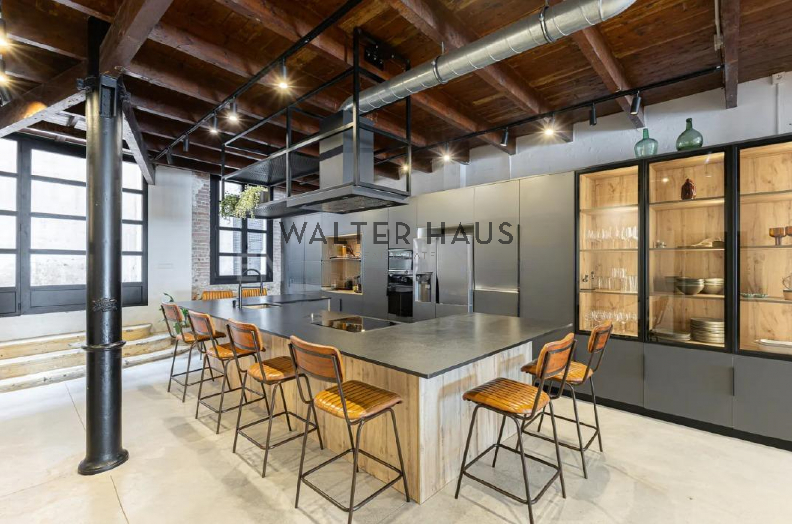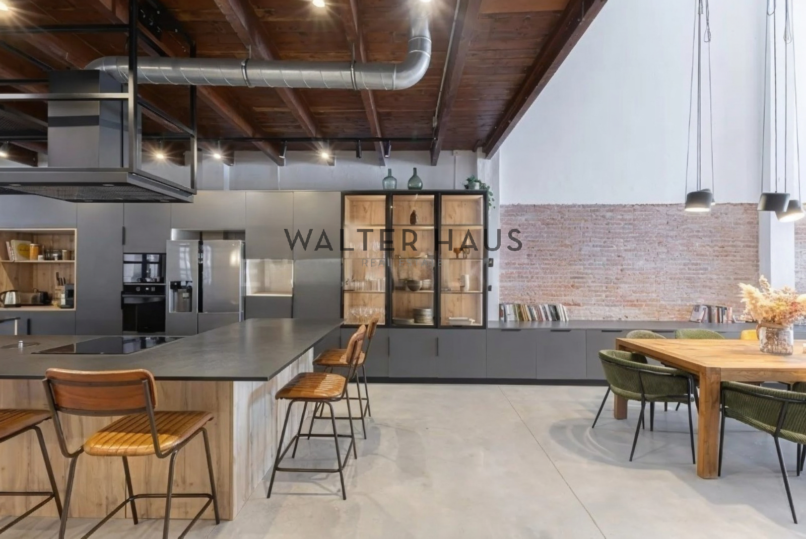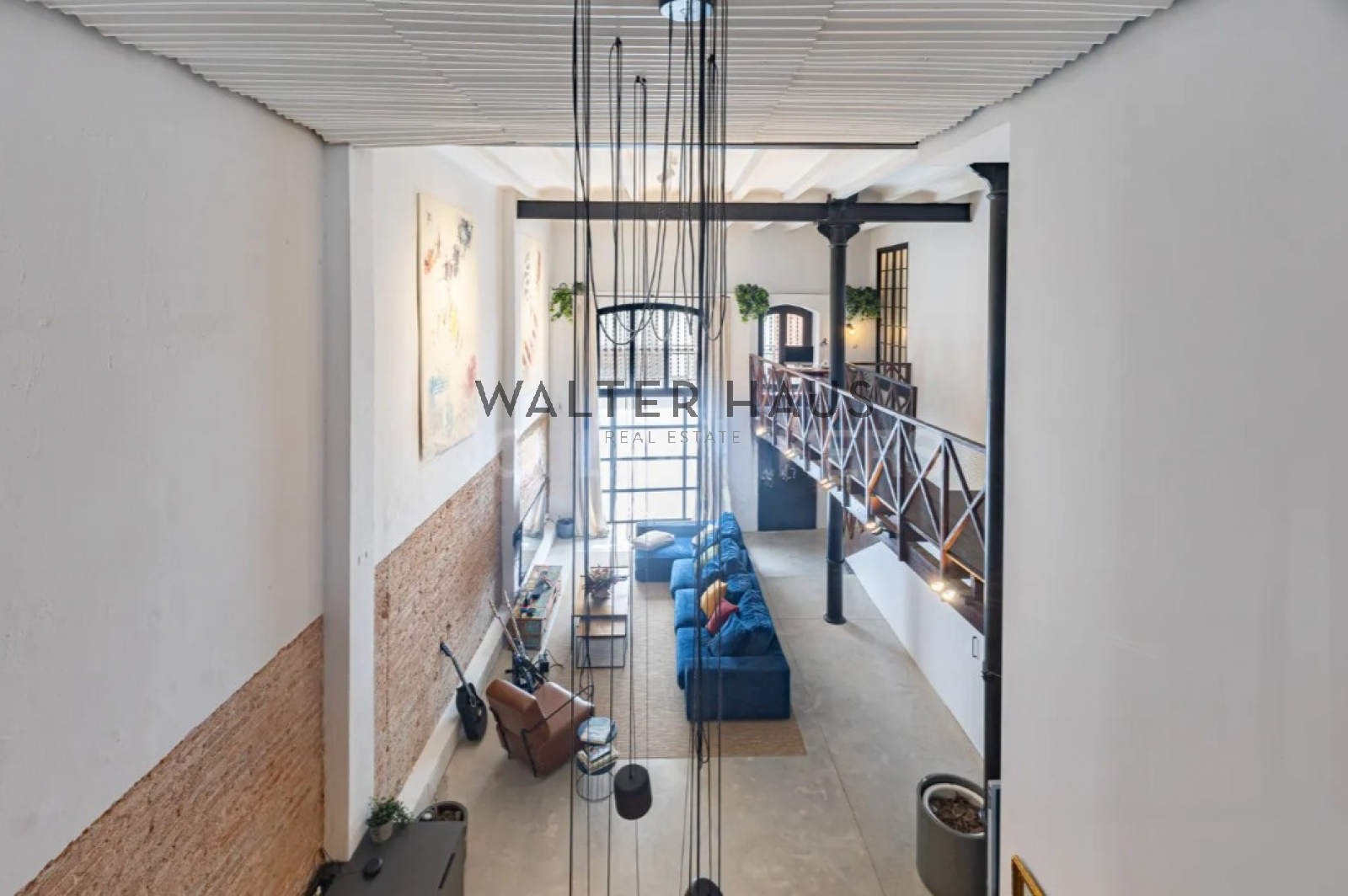 This exclusive 290 m² home is located in what was once a 1910 factory. Its industrial essence is respected and adapted to contemporary comfort with a design that is carefully designed down to the smallest detail. Its ceilings of over five meters, exposed iron beams, and wooden staircase transform every corner into a space full of personality. The spaciousness is reminiscent of New York style, while the functional layout guarantees comfort in everyday life.