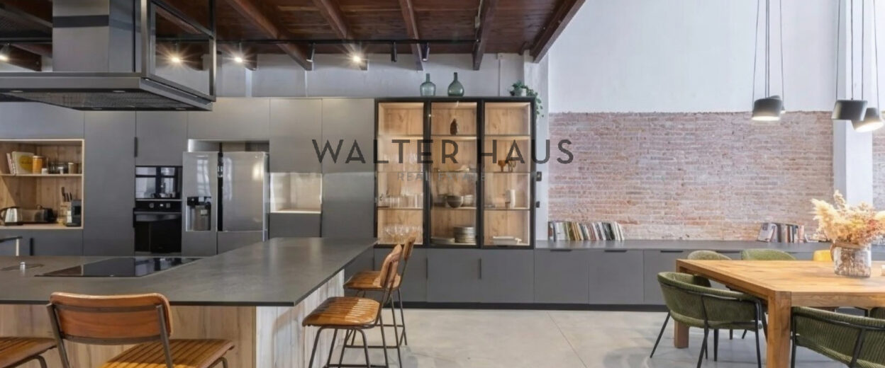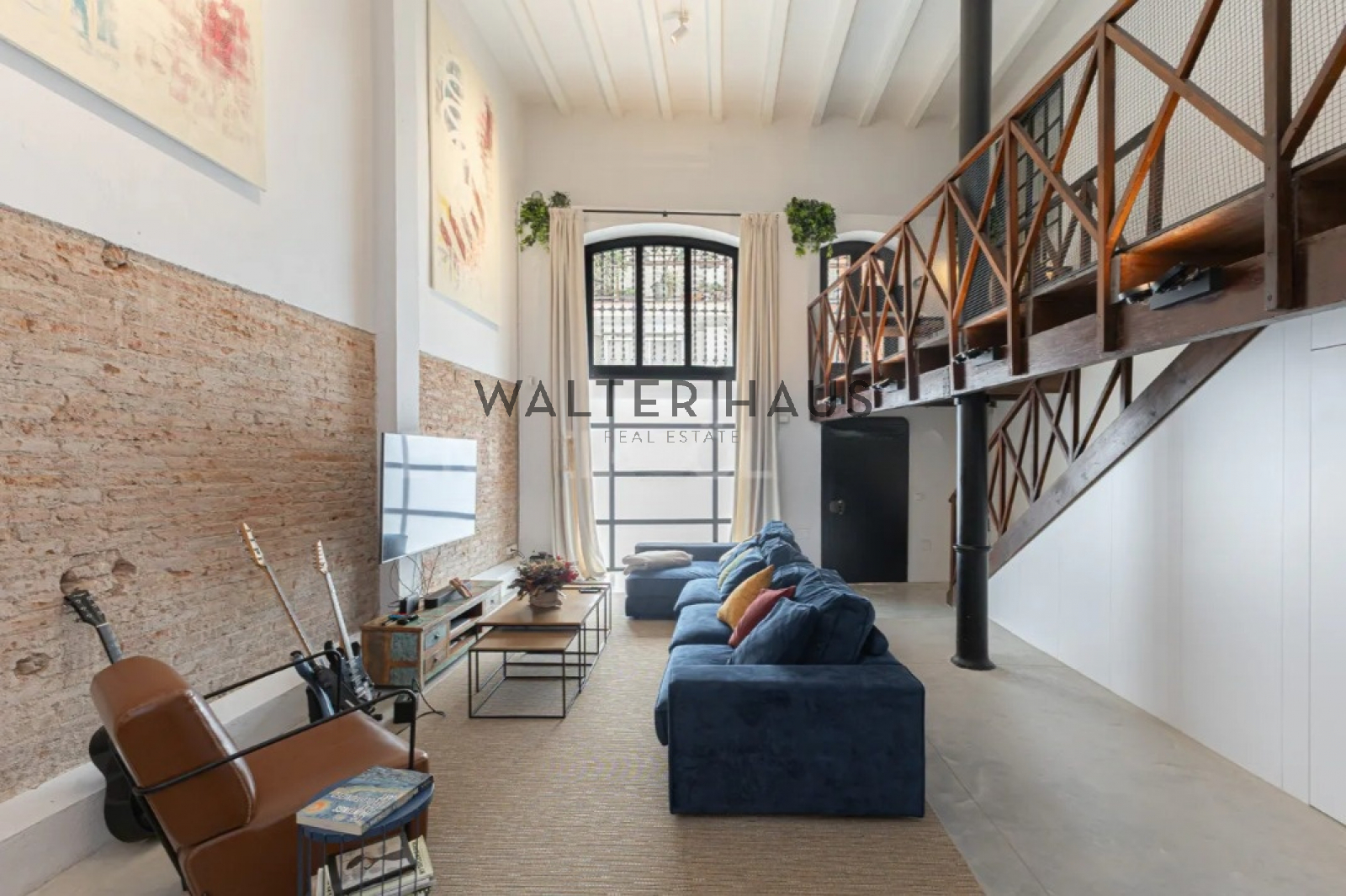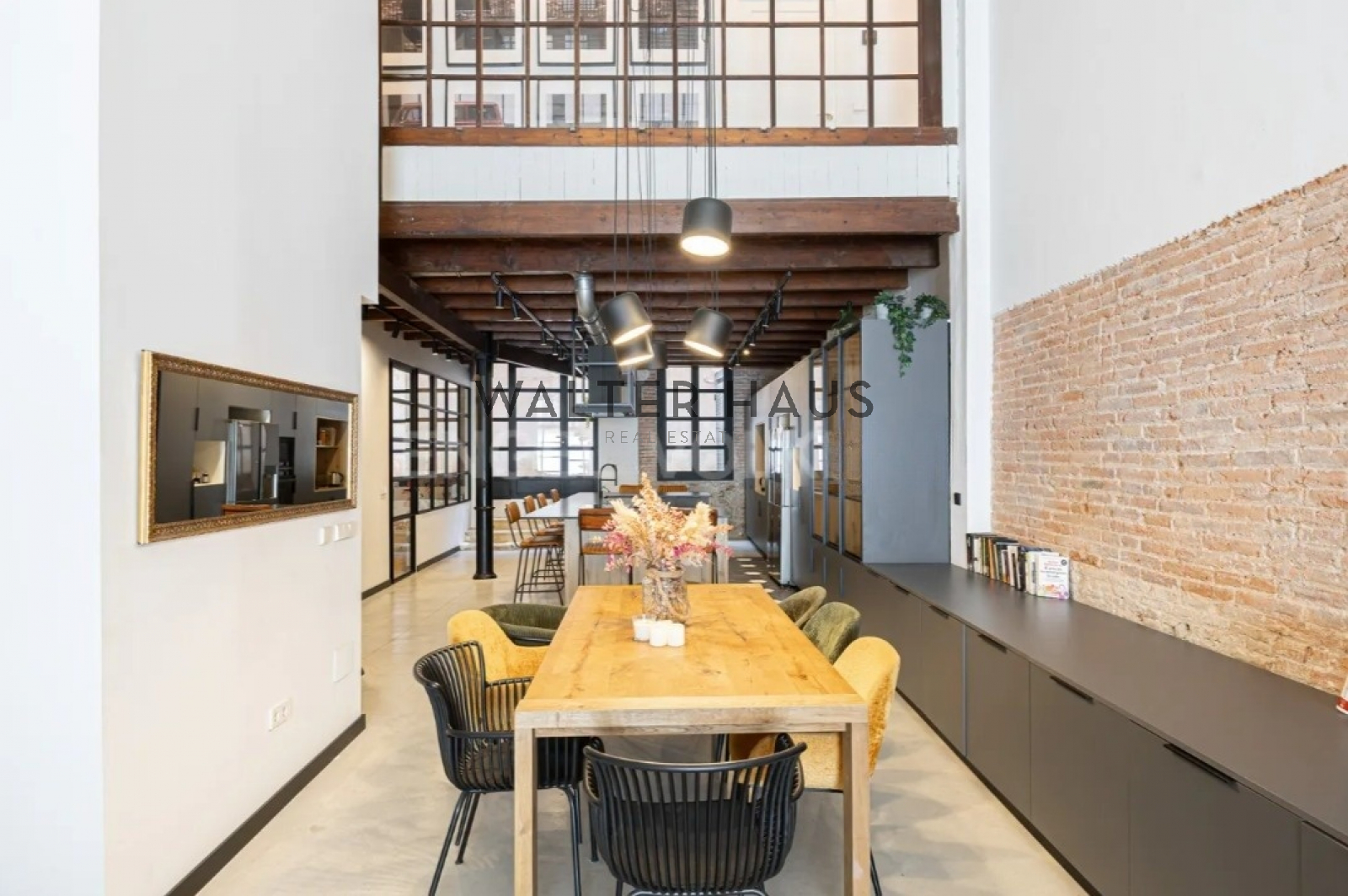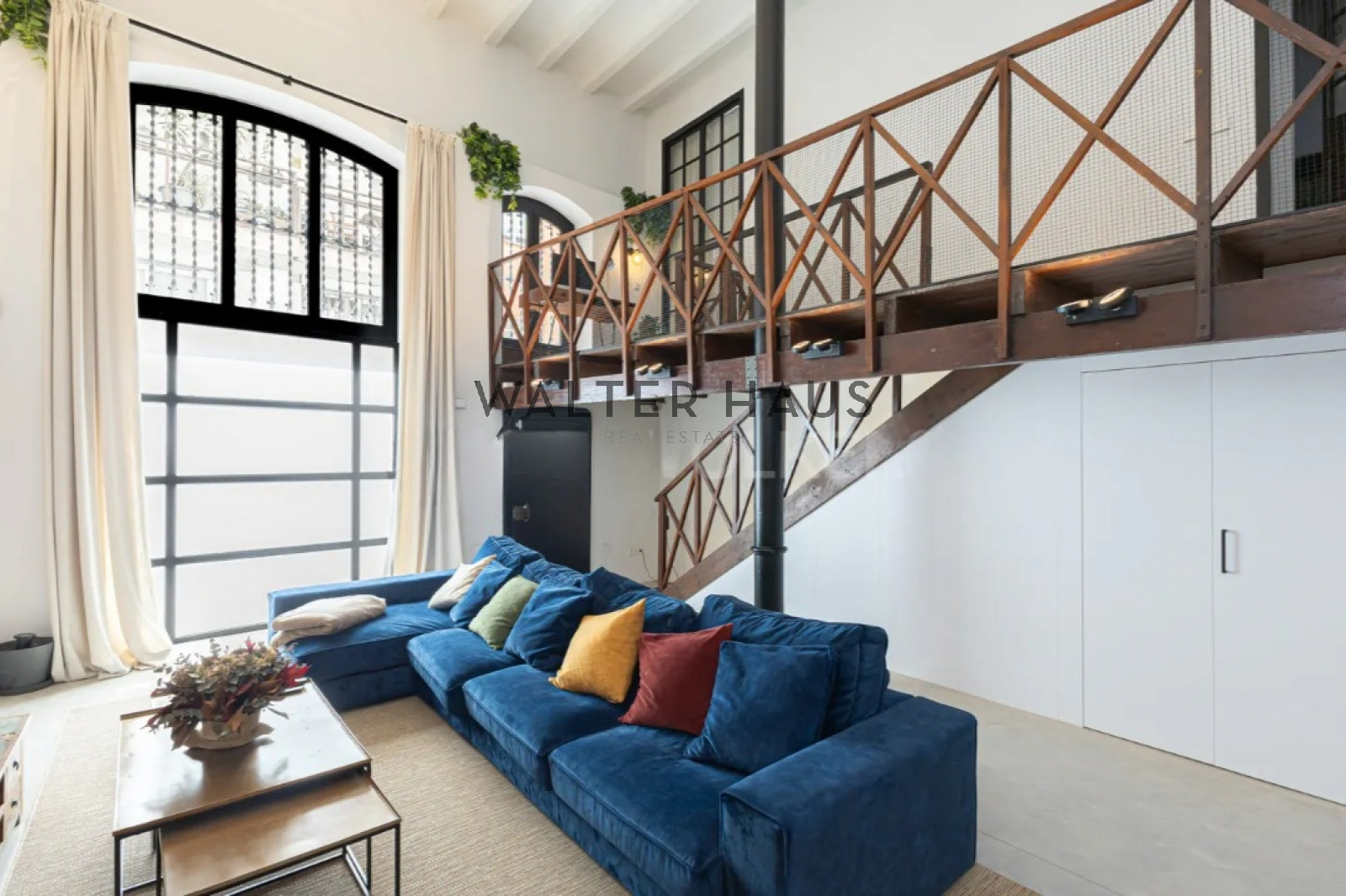 This exclusive 290 m² home is located in what was once a 1910 factory. Its industrial essence is respected and adapted to contemporary comfort with a design that is carefully designed down to the smallest detail. Its ceilings of over five meters, exposed iron beams, and wooden staircase transform every corner into a space full of personality. The spaciousness is reminiscent of New York style, while the functional layout guarantees comfort in everyday life.