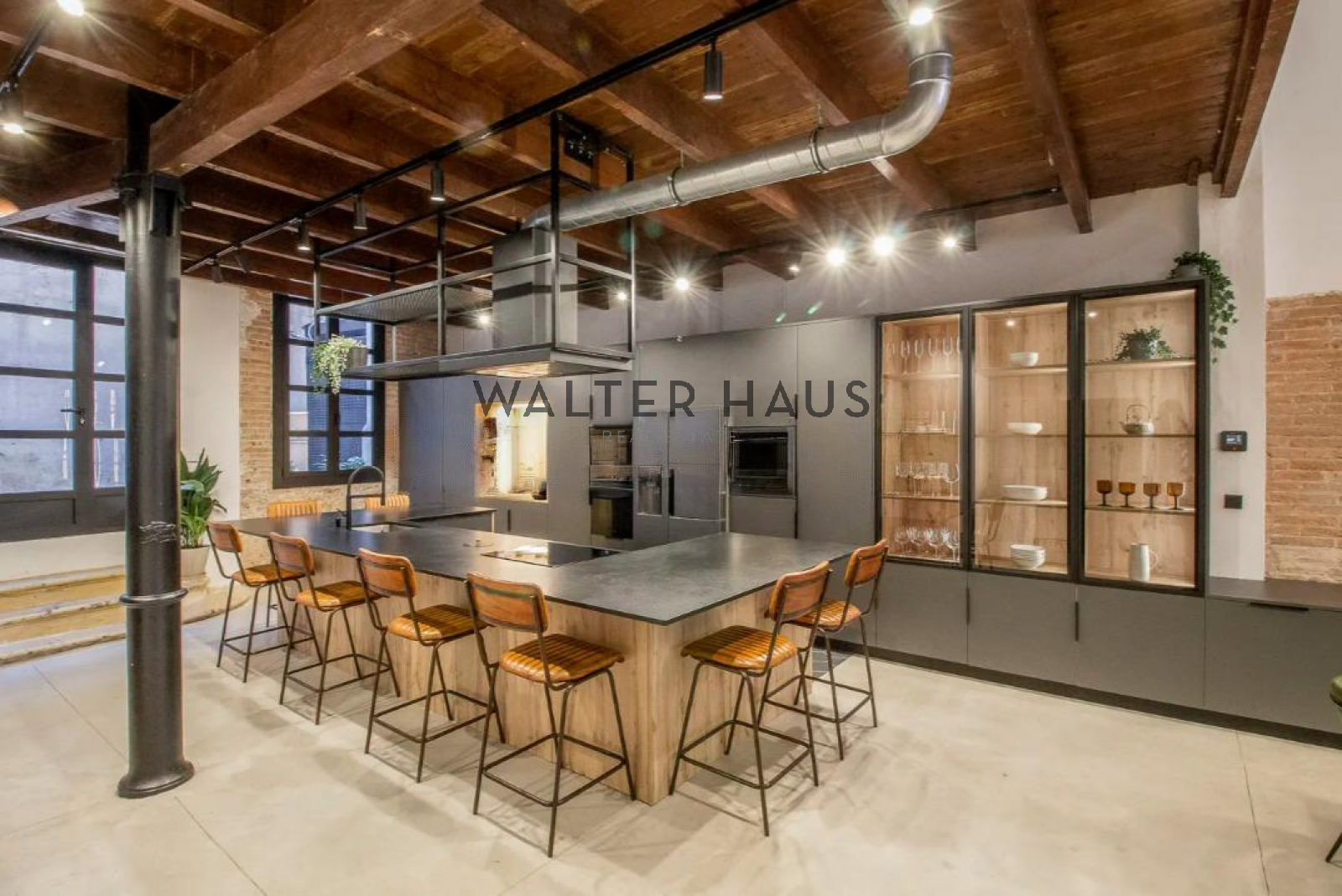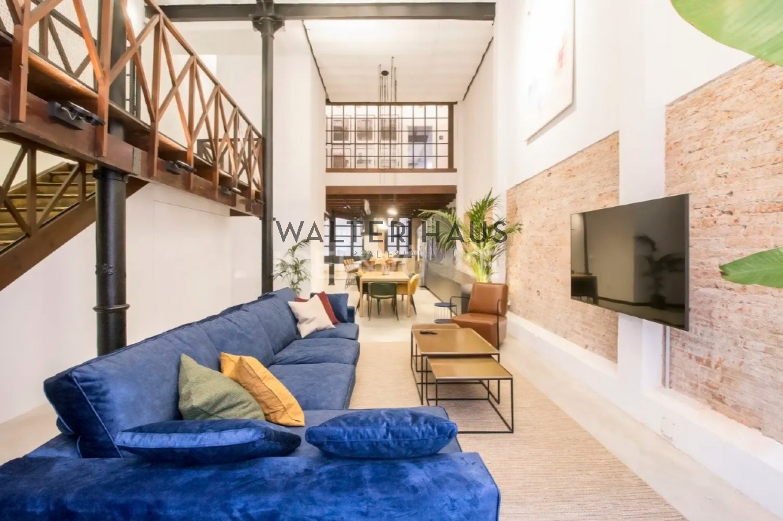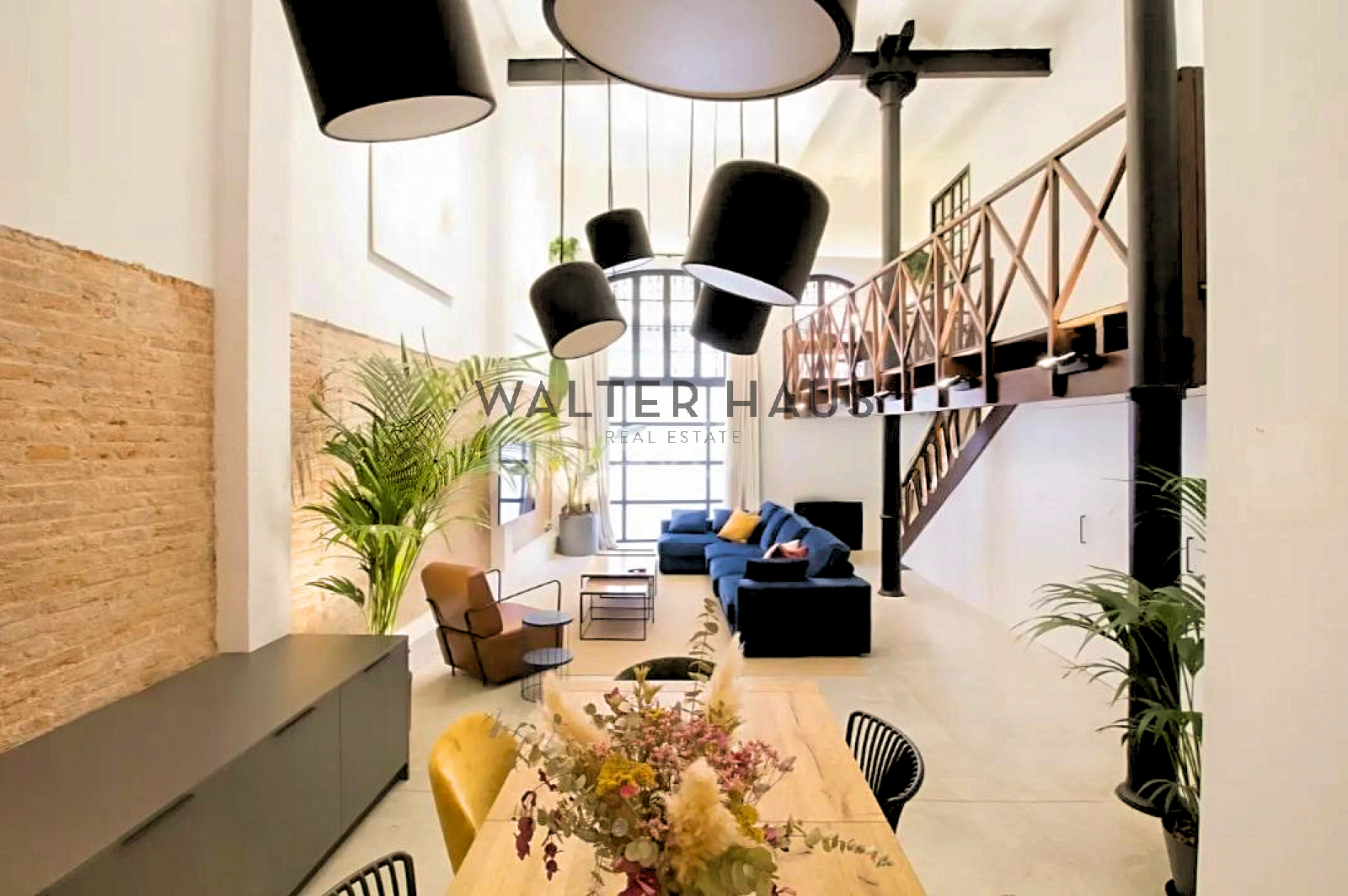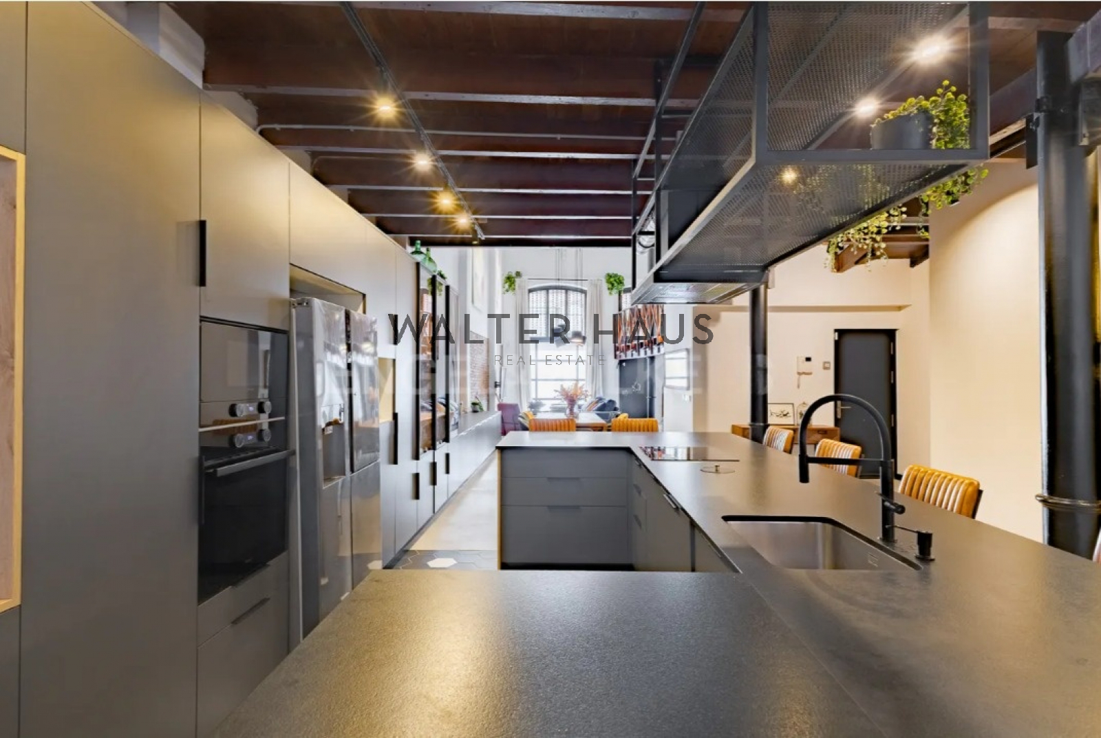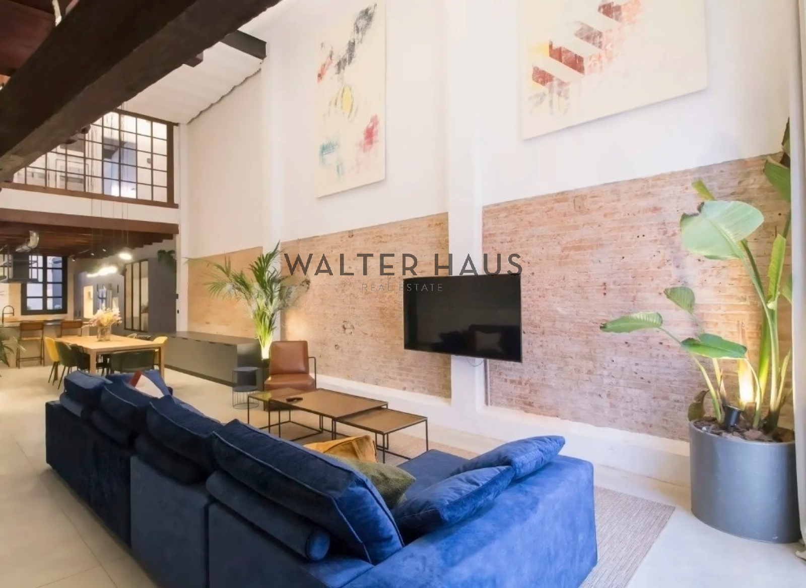 This exclusive 290 m² home is located in what was once a 1910 factory. Its industrial essence is respected and adapted to contemporary comfort with a design that is carefully designed down to the smallest detail. Its ceilings of over five meters, exposed iron beams, and wooden staircase transform every corner into a space full of personality. The spaciousness is reminiscent of New York style, while the functional layout guarantees comfort in everyday life.