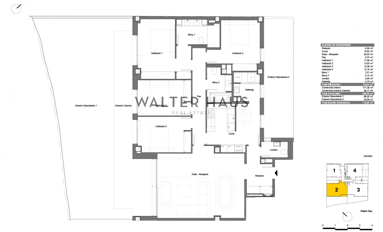 The property features a spacious living-dining room with direct access to the spectacular terrace, flooding the spaces with natural light throughout the day thanks to its privileged orientation. The independent, breakfast-dining kitchen is fully equipped with high-end appliances and has a separate utility area. This area also has a guest toilet. The sleeping area consists of four bedrooms, one of which is en suite with a bathroom, dressing room, and access to the terrace. Two double bedrooms with access to the terrace and one twin bedroom with access to the balcony. An additional full bathroom is part of this area. All bedrooms have built-in wardrobes and are spacious and bright thanks to the large windows surrounding them.