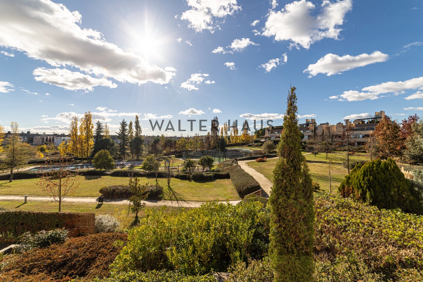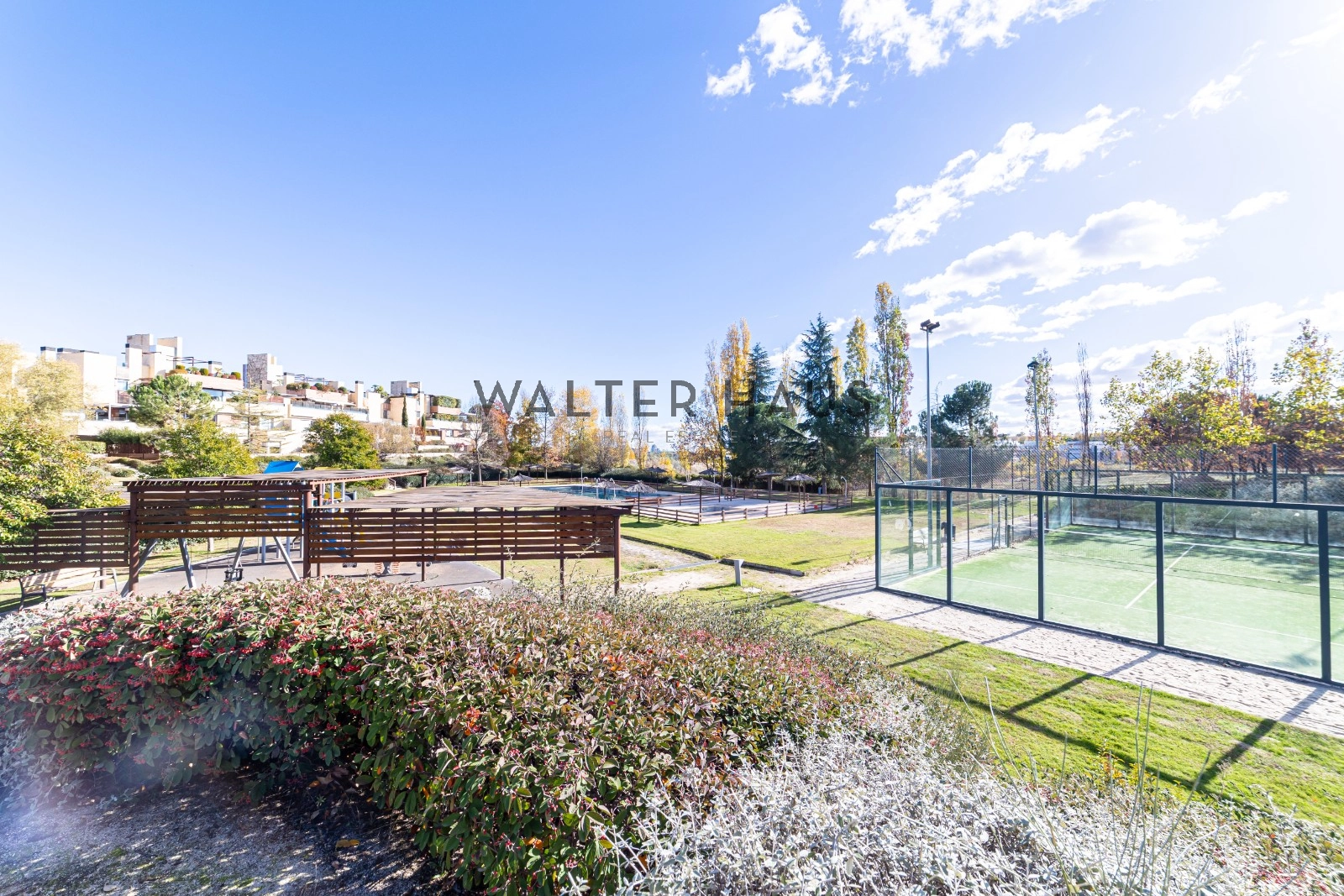 The location is unbeatable within a gated community with 24-hour security, ensuring absolute peace of mind. Residents enjoy extensive green areas, a swimming pool, a children’s play area, and comprehensive sports facilities including paddle tennis courts and a basketball court. Its strategic location allows for quick access by car to the center of Madrid and offers immediate proximity to prestigious international schools, medical centers, and a wide variety of restaurants and shops.