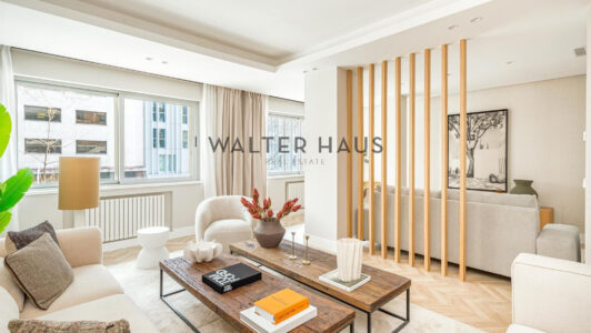 This elegant 241 square meter home is located in a classic building with a double elevator, located in one of the most prestigious areas of Madrid. The property has four large bedrooms and four full bathrooms, as well as central heating and 3-meter ceilings, which provide a feeling of spaciousness and sophistication.