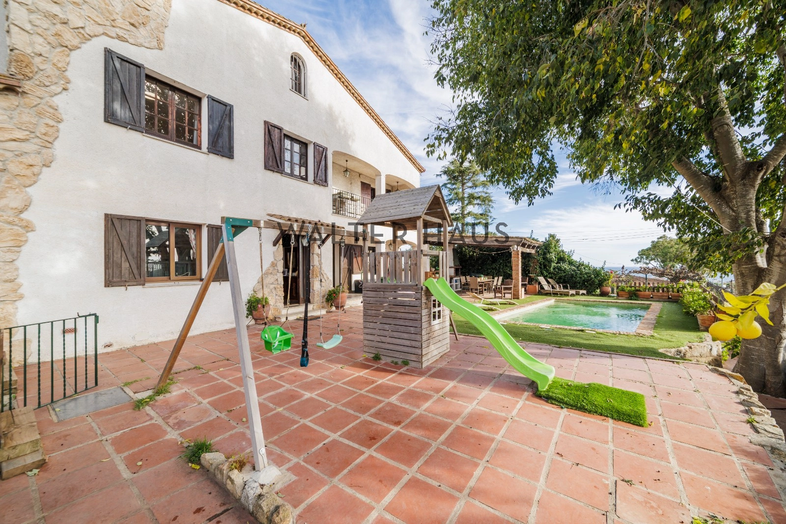 The second floor is entirely occupied by the master suite, an attic-style space with a bathroom, dressing room, and a private solarium terrace with sea views. Outside, the house features a welcoming garden, swimming pool, barbecue area, children’s play area, and a dedicated gym space.