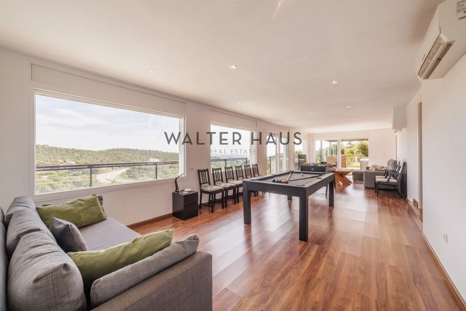 The ground floor features a private parking area for convenience and easy access. The first floor comprises three bedrooms, two with en-suite bathrooms, and a playroom perfect for family entertainment. Outside, spacious terraces—one with a jacuzzi—a swimming pool, and a large garden surrounded by lush vegetation create an ideal setting for leisure and relaxation. The second floor houses the living area, including a living-dining room with a terrace, a fully equipped kitchen with a central island, and two terraces with panoramic views. The top floor features the master suite, complete with a dressing room, balcony, and a private space ideal for relaxation.